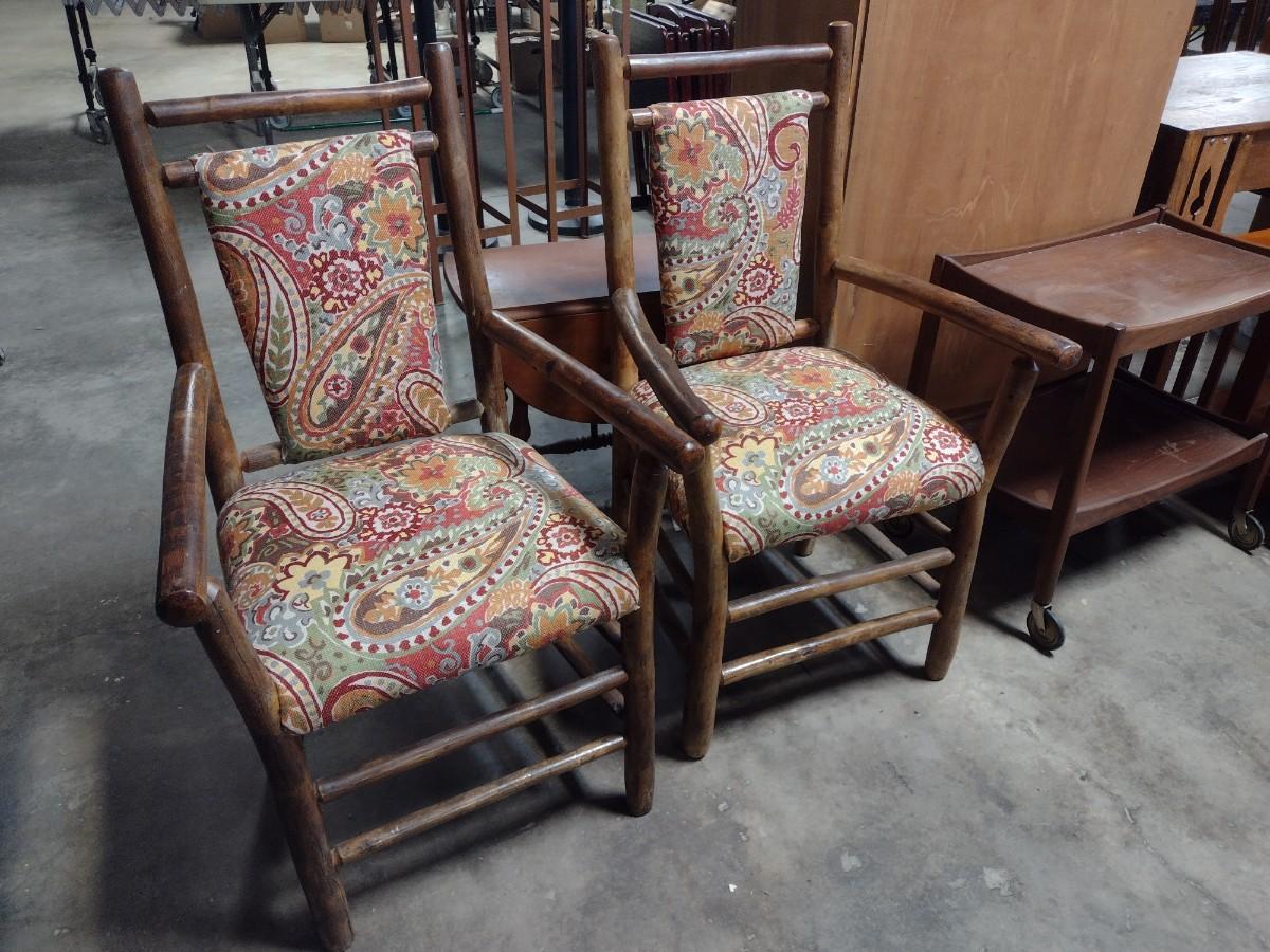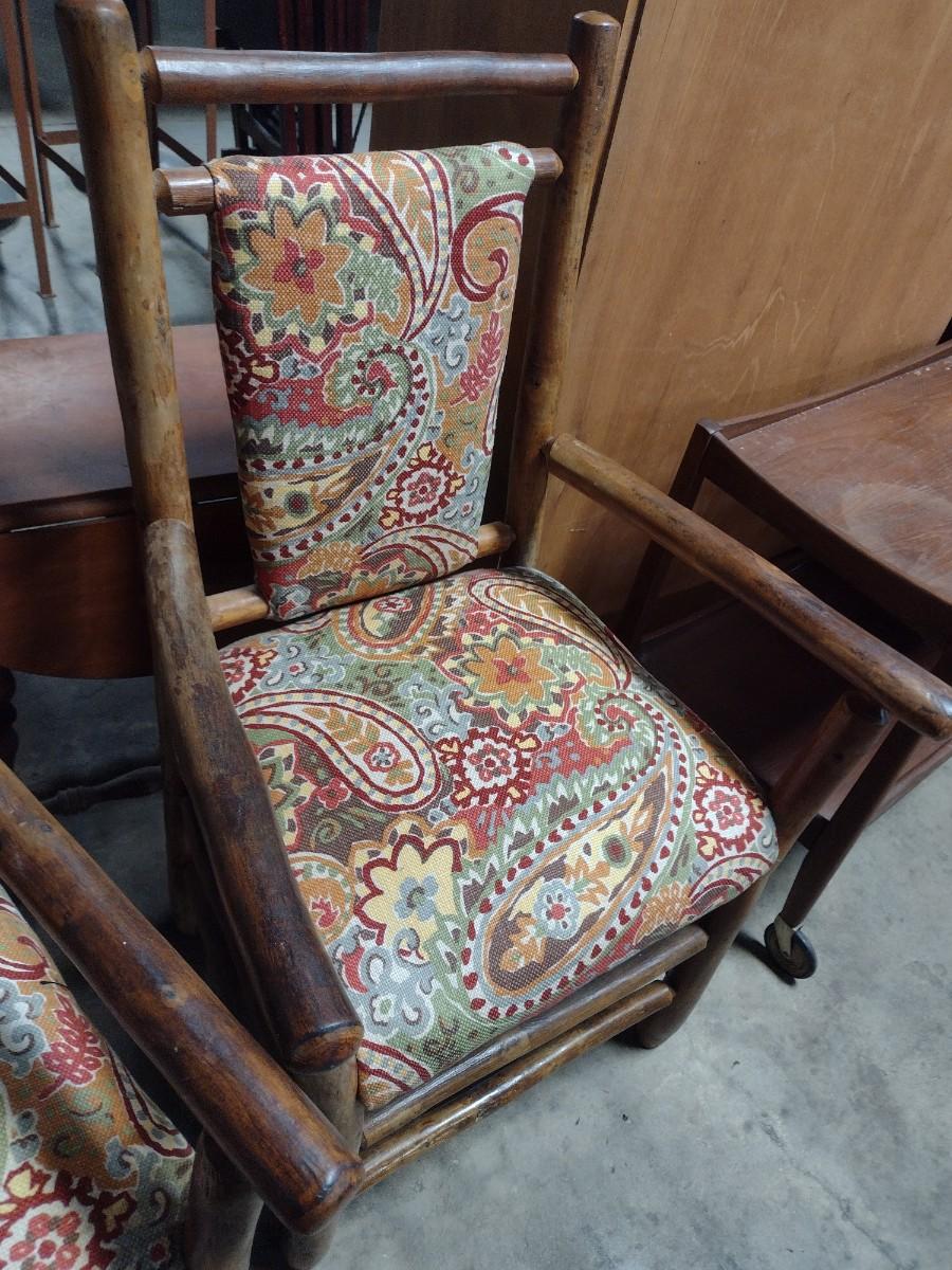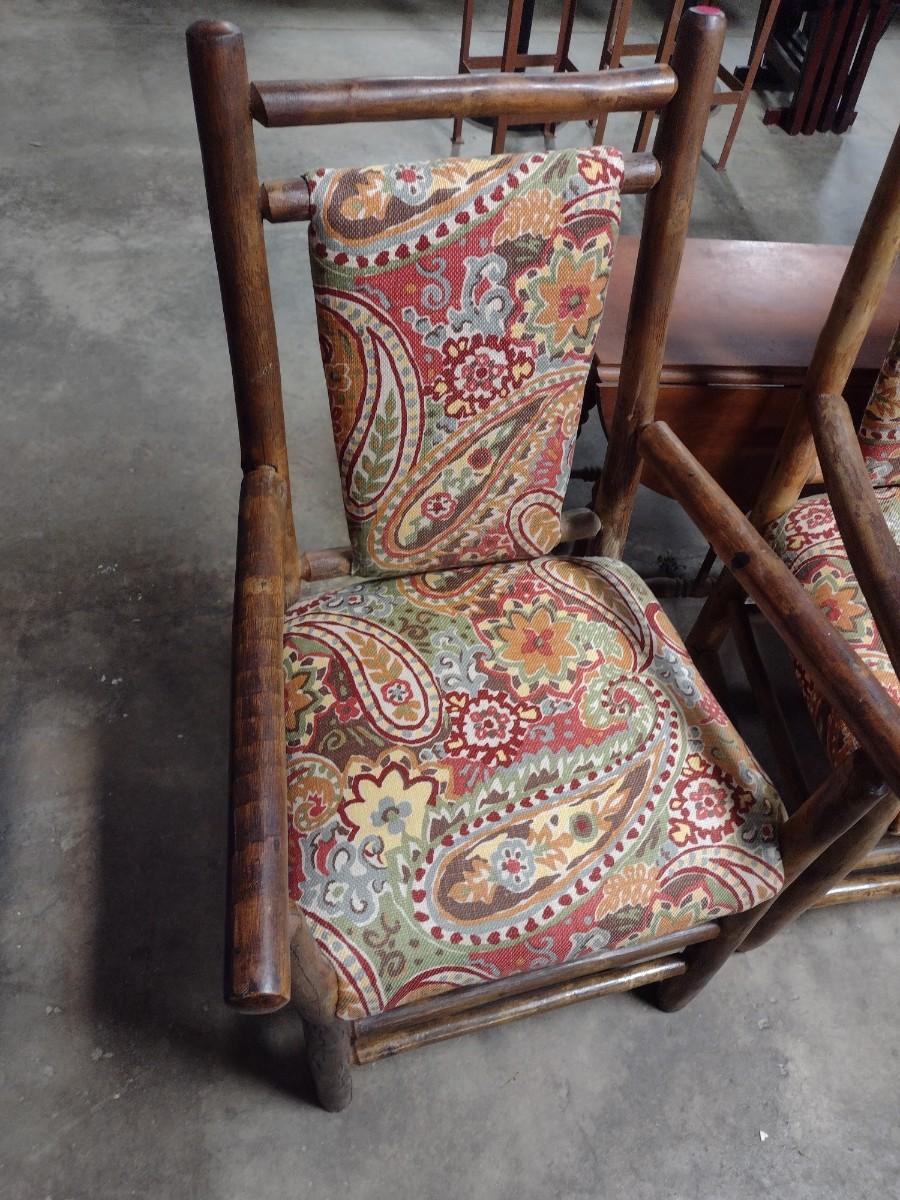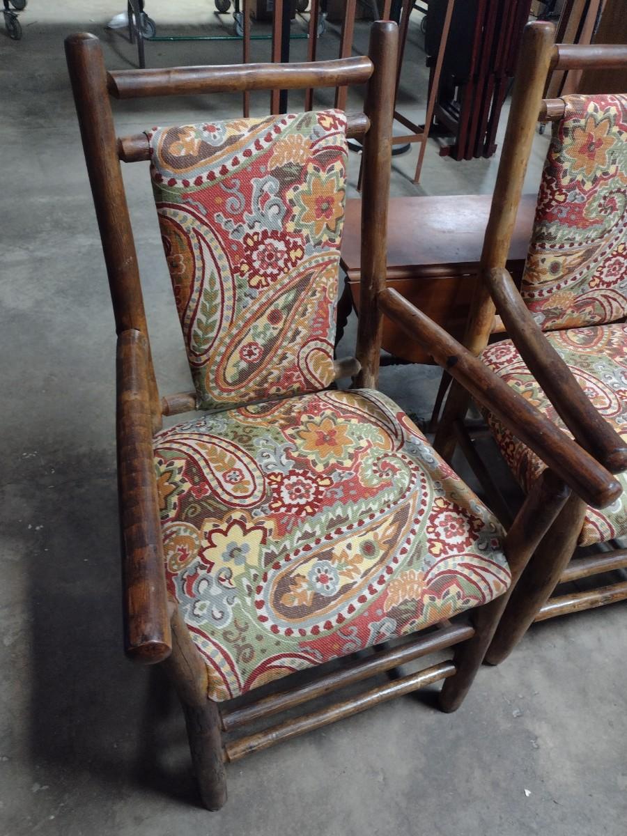 Pair of Cabin Twig and Branch Sitting Chair with Upholstered Seat and Back