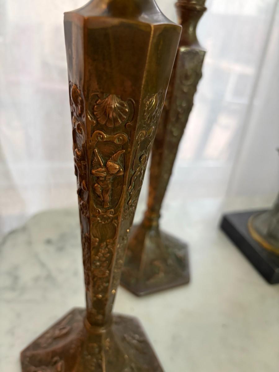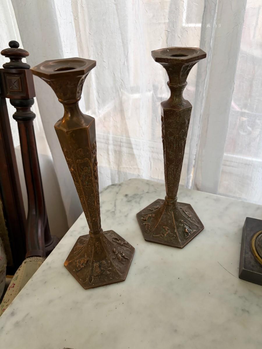 Pair of metal candleholders