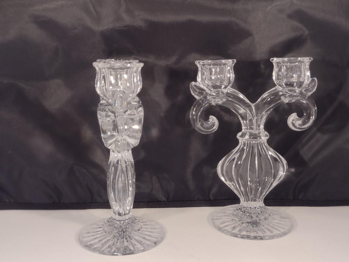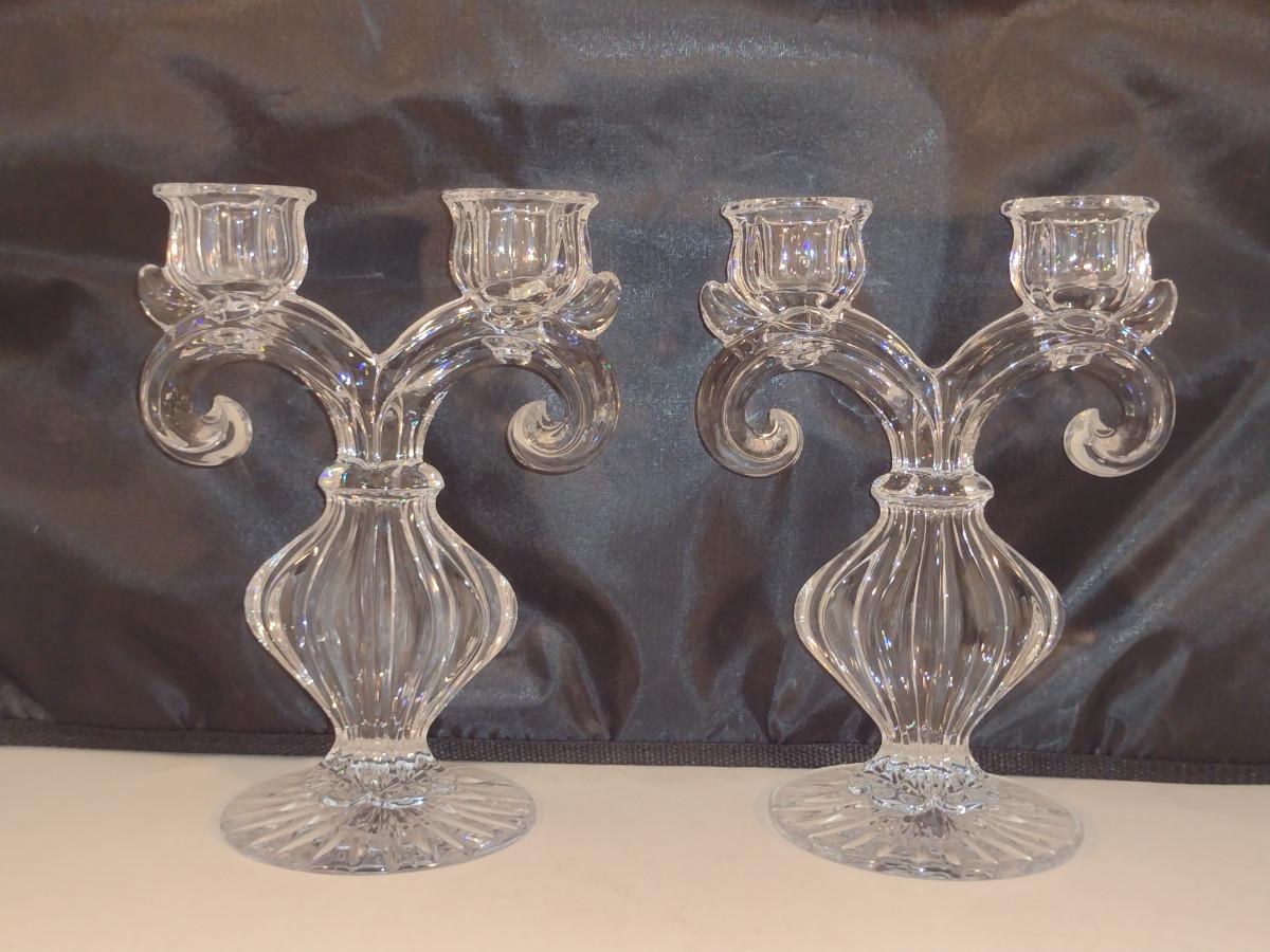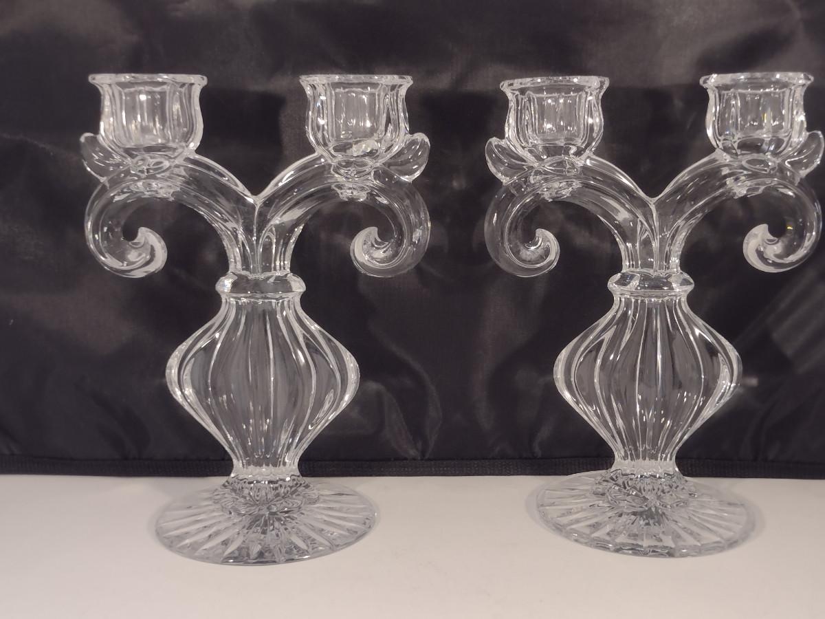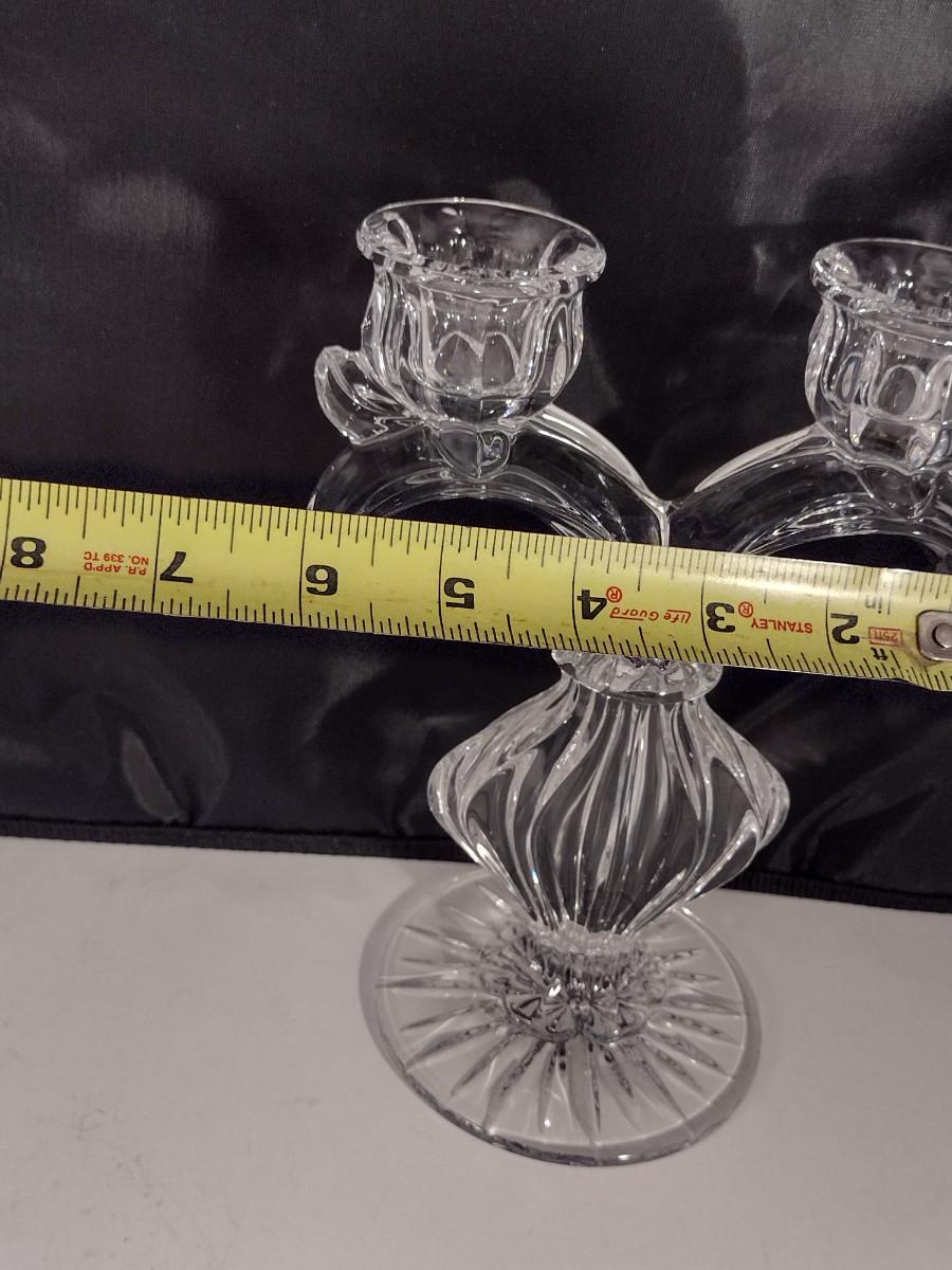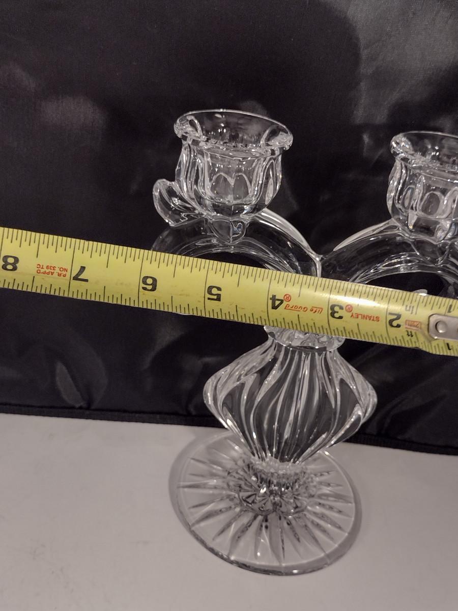 Pair Gus Khrustanly Style Vintage Double Arm Tulip Crystal Candelabra Candle Holders (DR)