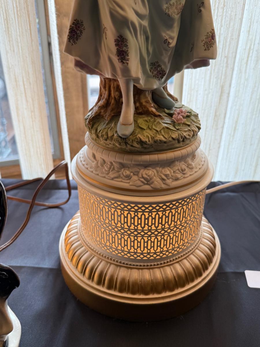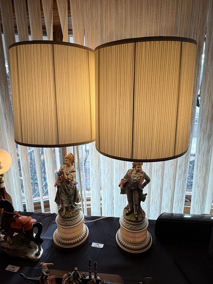 Pair of Capodimonte ceramic Victorian couple - working table Lamps