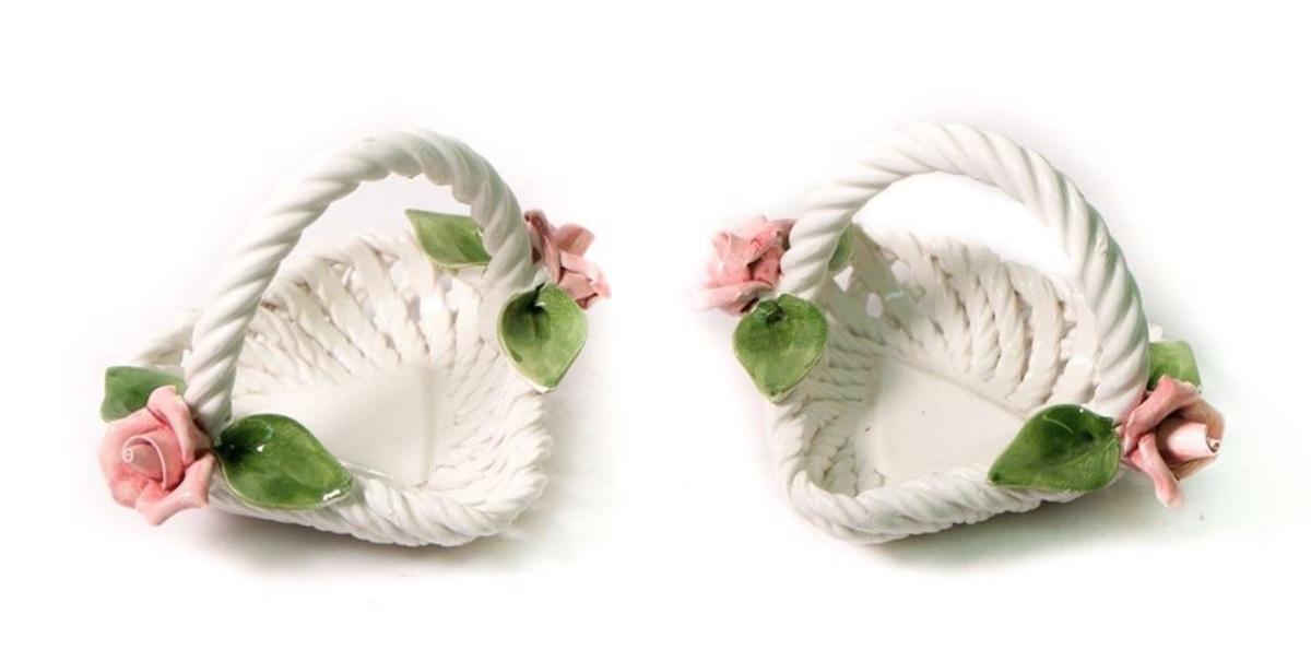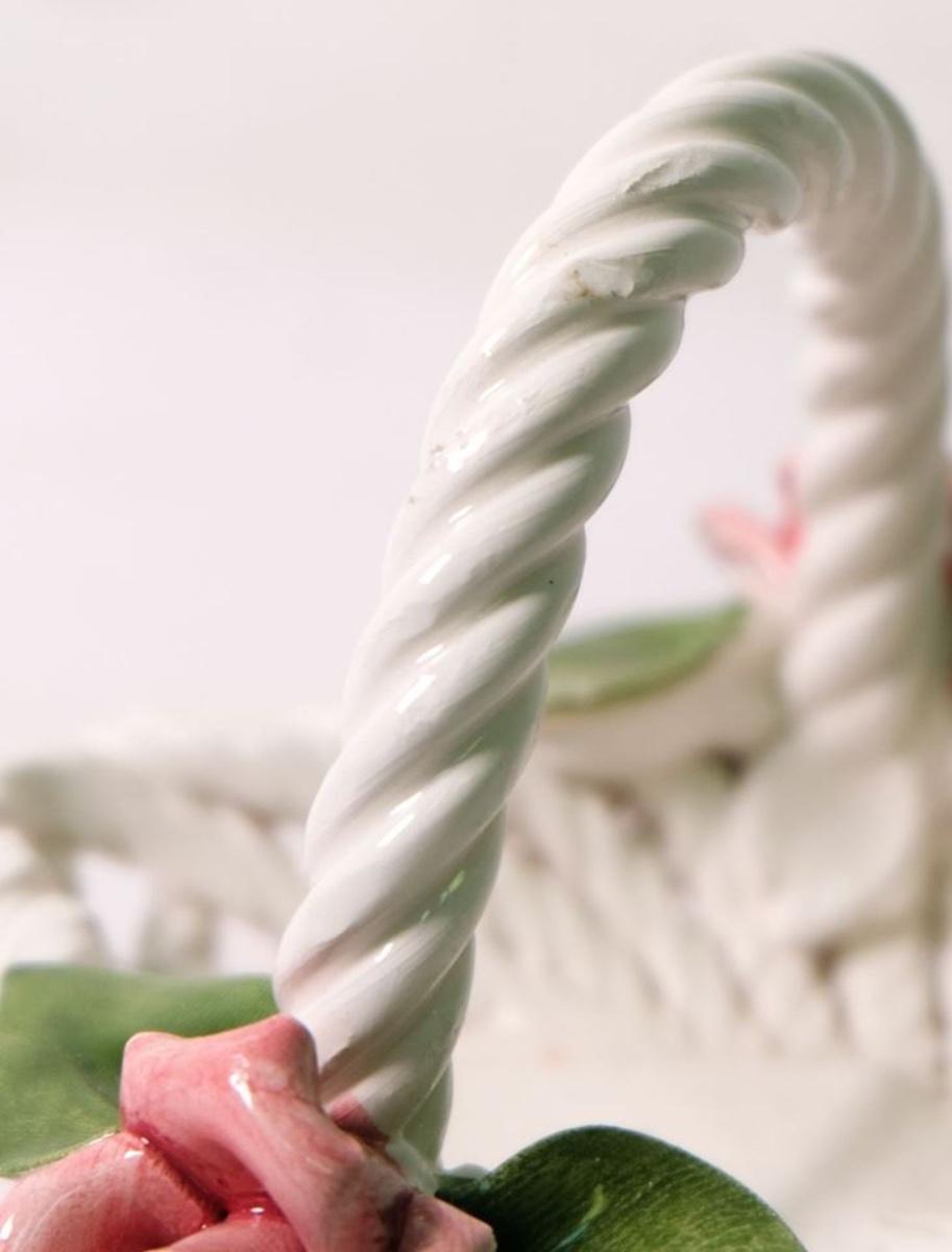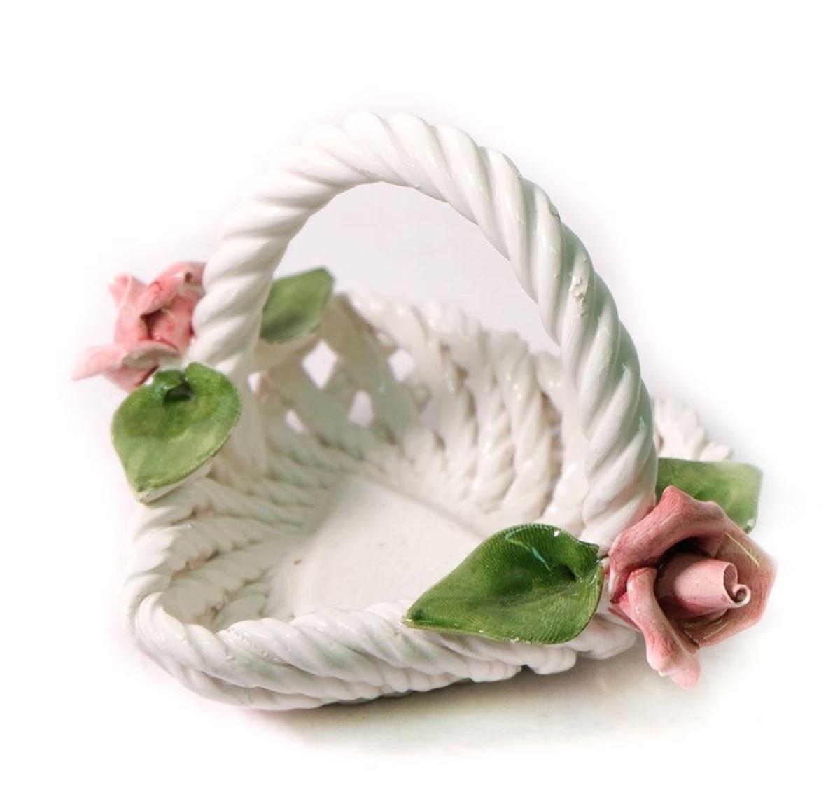 Stamped Capodimonte. Measures approx. 4"H, 5.25"W, 4"D. Note: 2 tiny paint chips on 2 leaves.