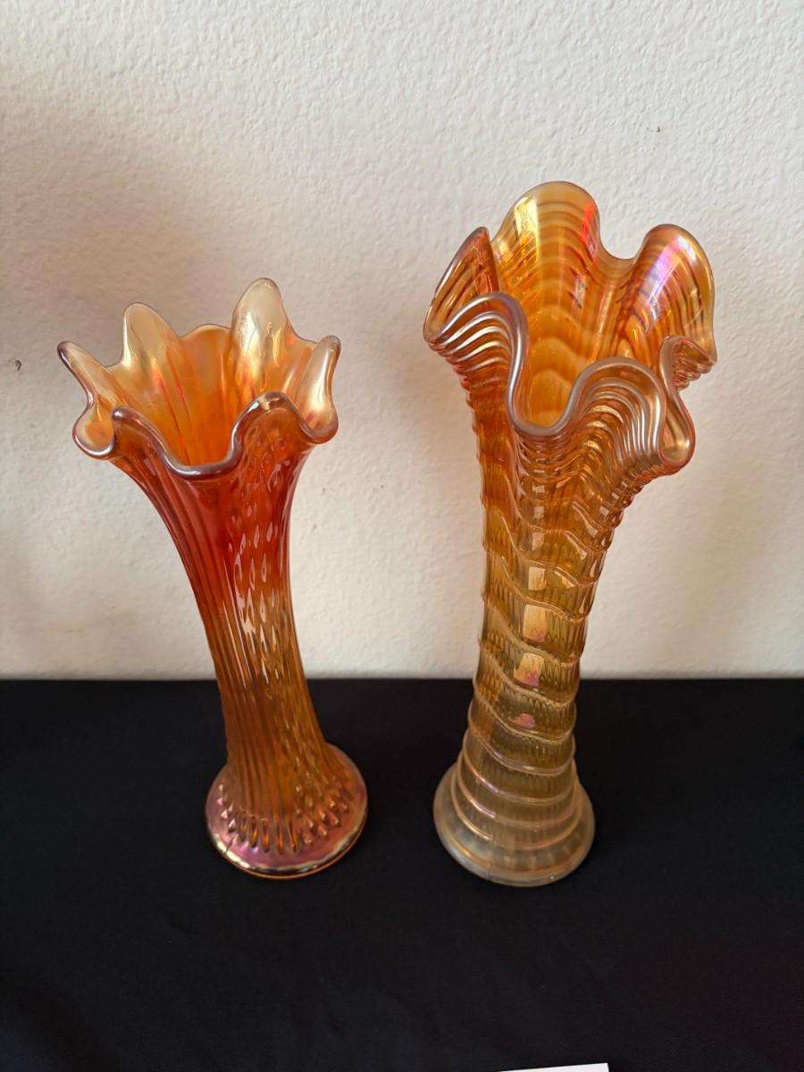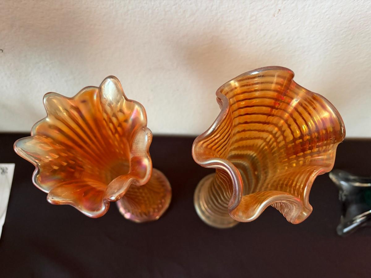 Pair of carnival glass vases