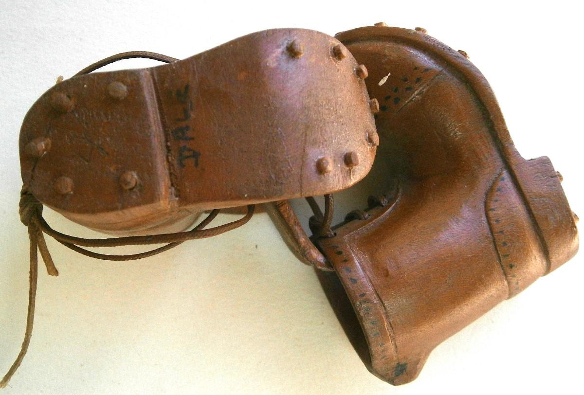 Pair of Carved Wood Work Boots signed "DALE", 1 1/2 in. tall