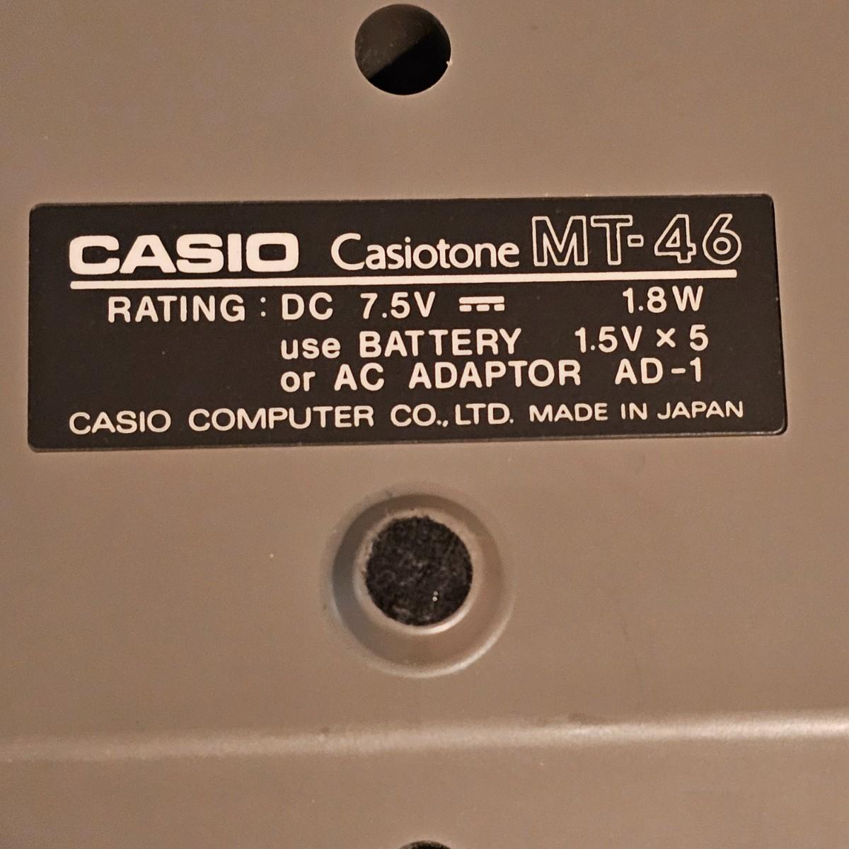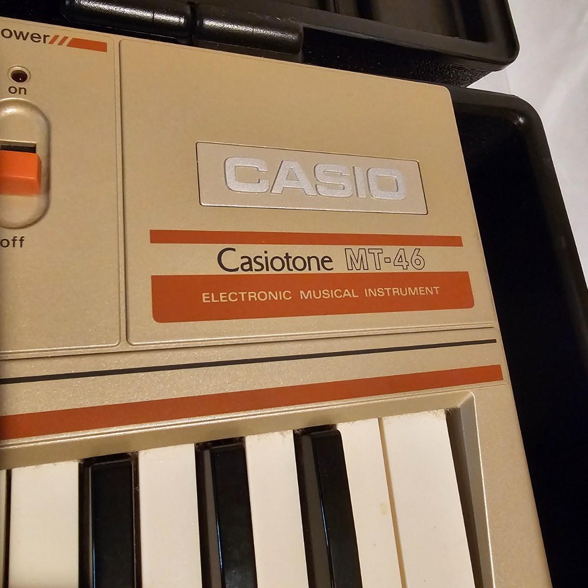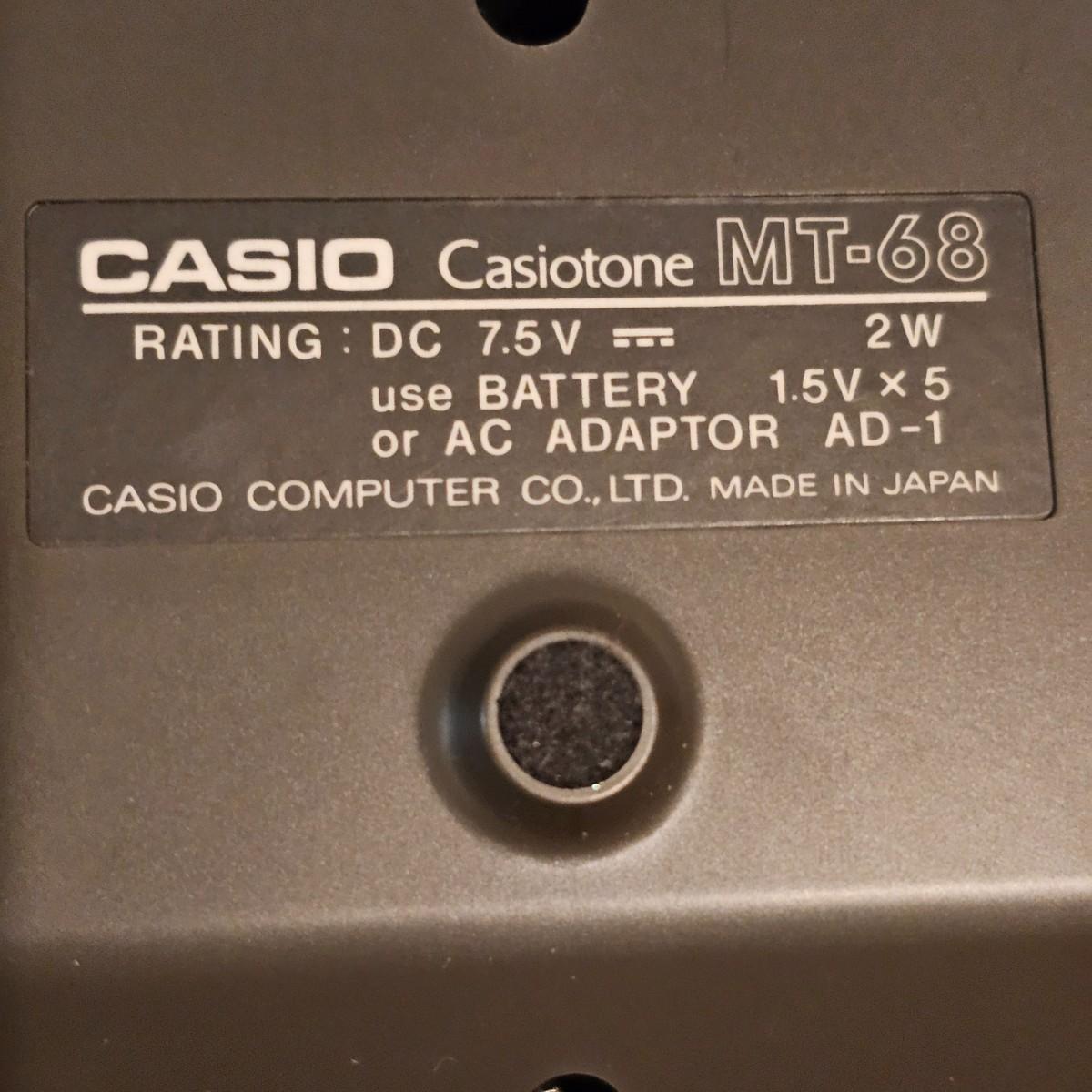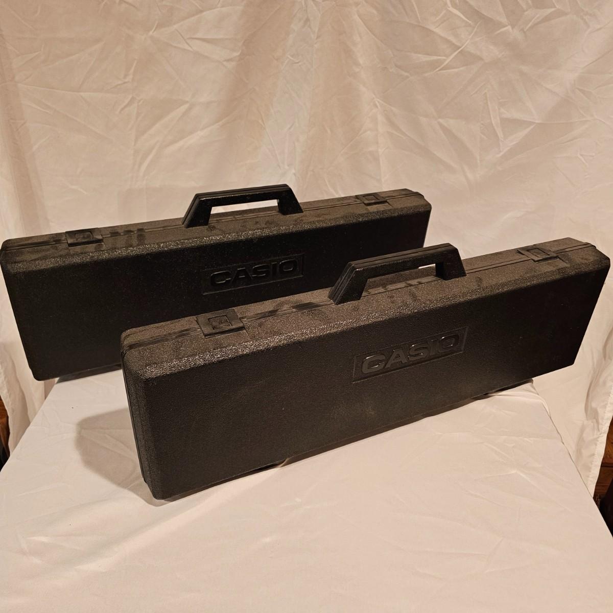 Two smaller Casiotone electronic musical instrument keyboards with hardshell cases. Casiotone MT-68 is dark brown in color, has numerous options for sound generation. The Casiotone MT-46 is light tan in color, has similiar options as other keyboard. Both units measure 25" x 7.5" x 2"H. Cases are 28" x 11" x 4"H. Units have power option of adapter or batteries. Both powered on when plugged in, but no adaptor included with these. One unit has old batteries, other has none. Not tested with batteries. See photos for details. Shipping available.