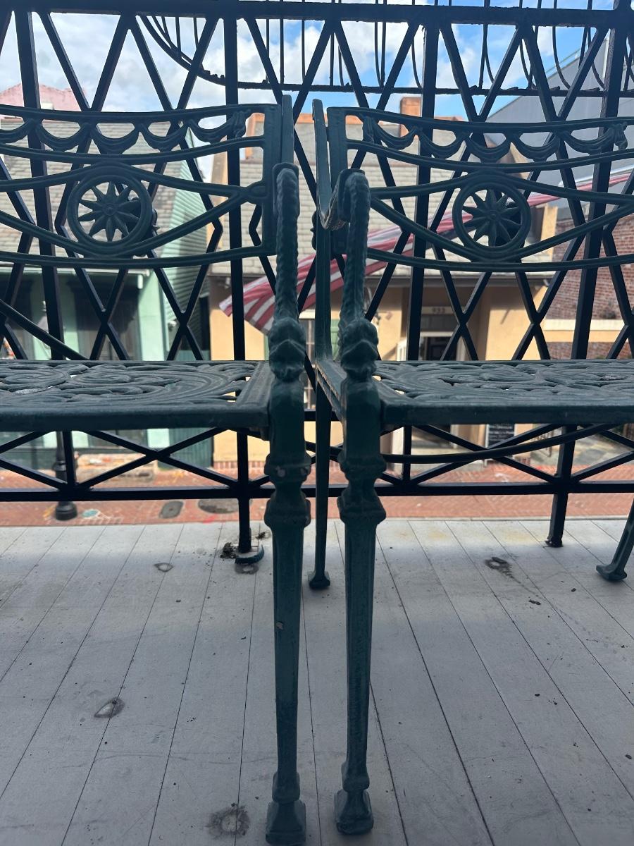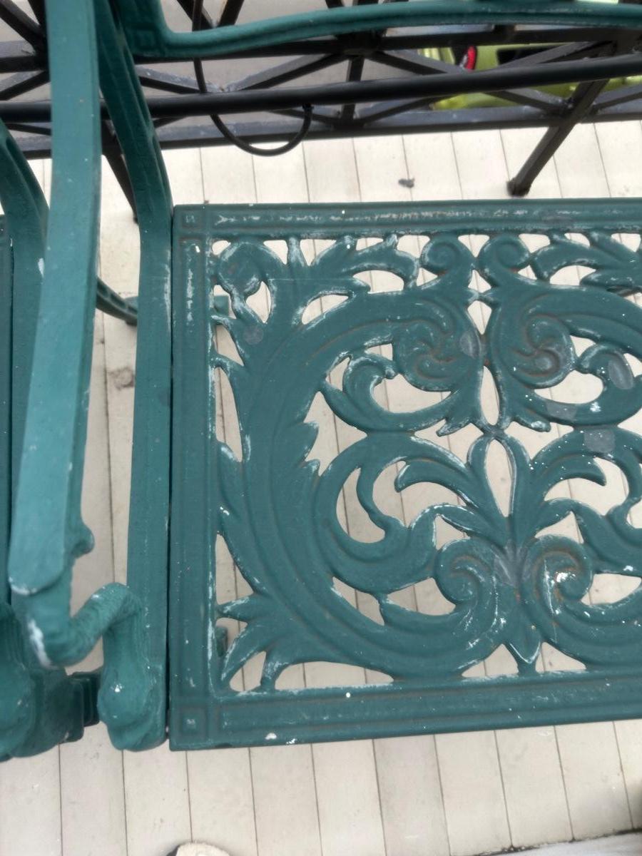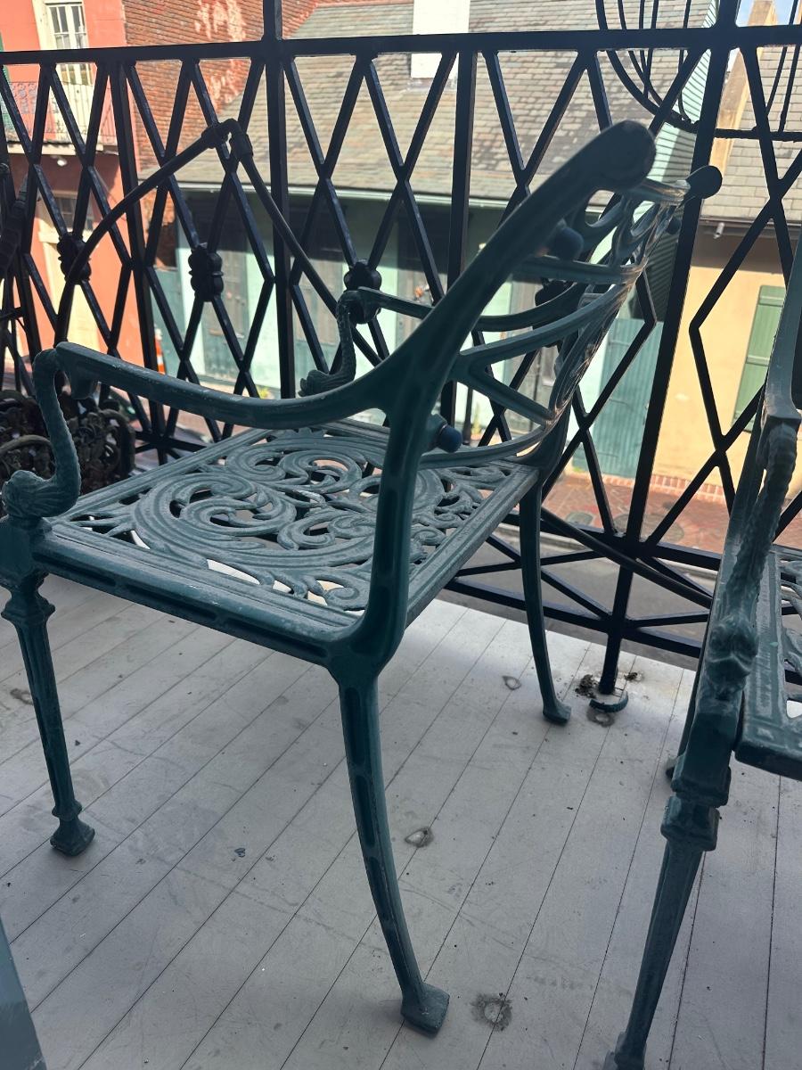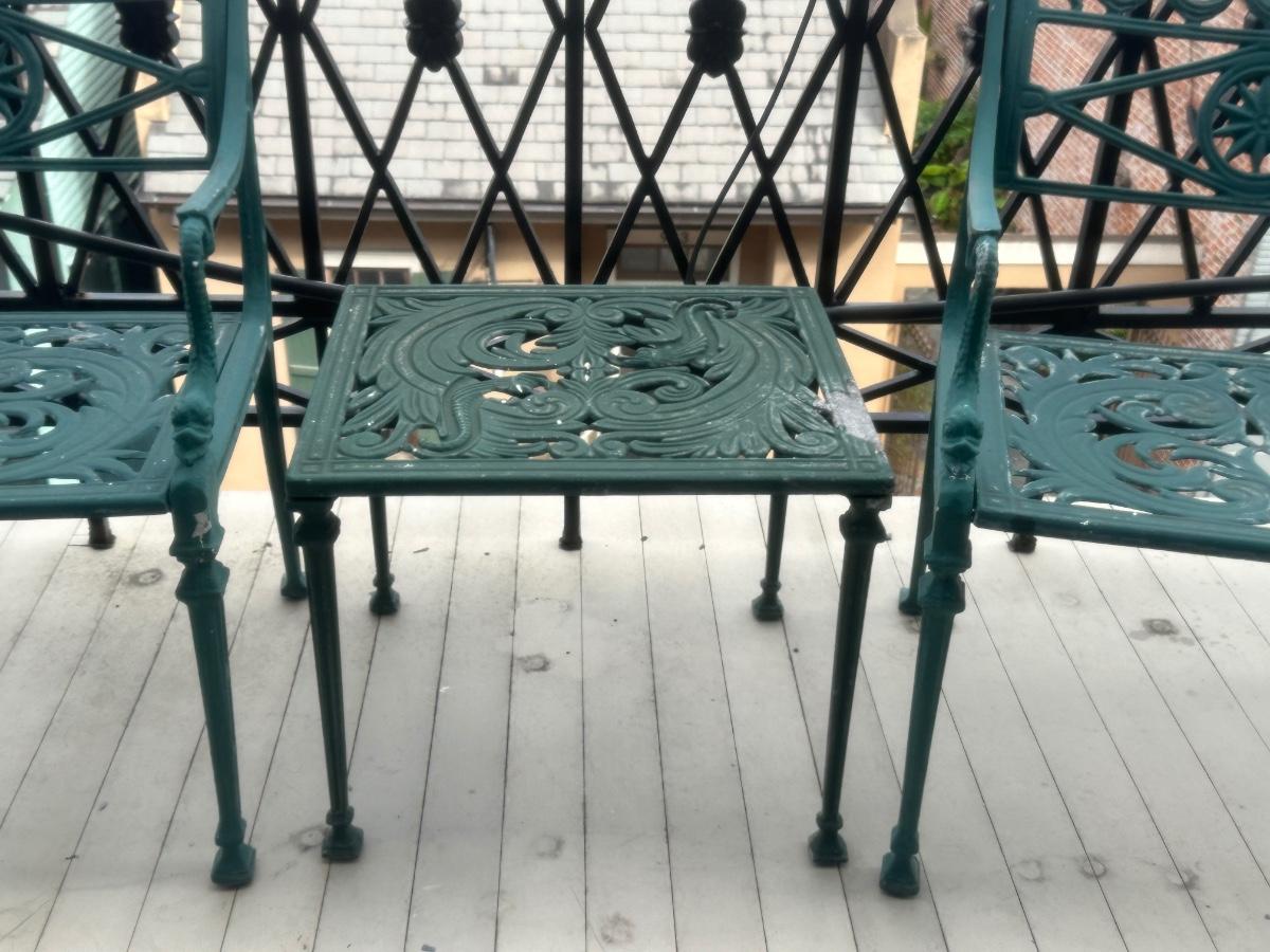 Pair of Cast Aluminum Outdoor Chairs & End Table – Star & Dolphin Design.