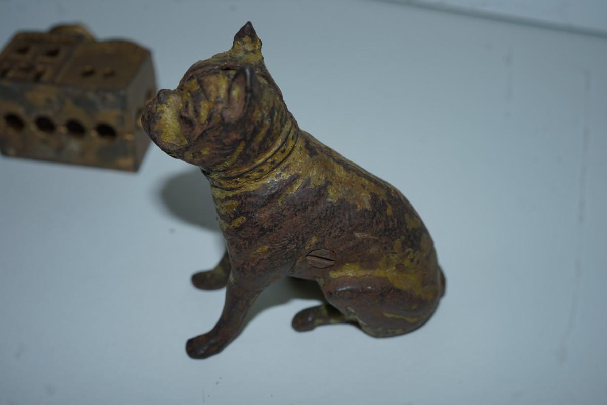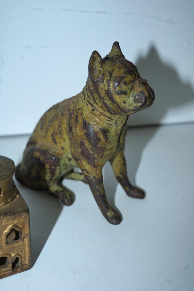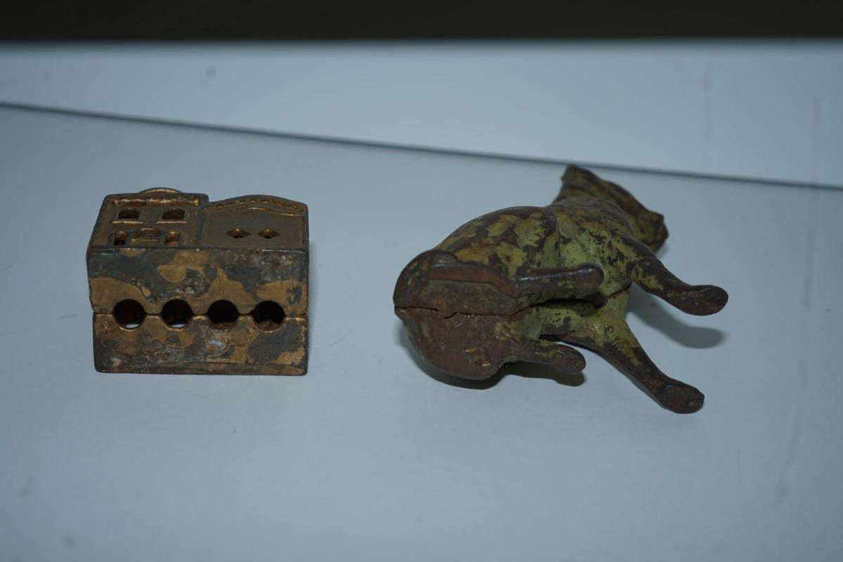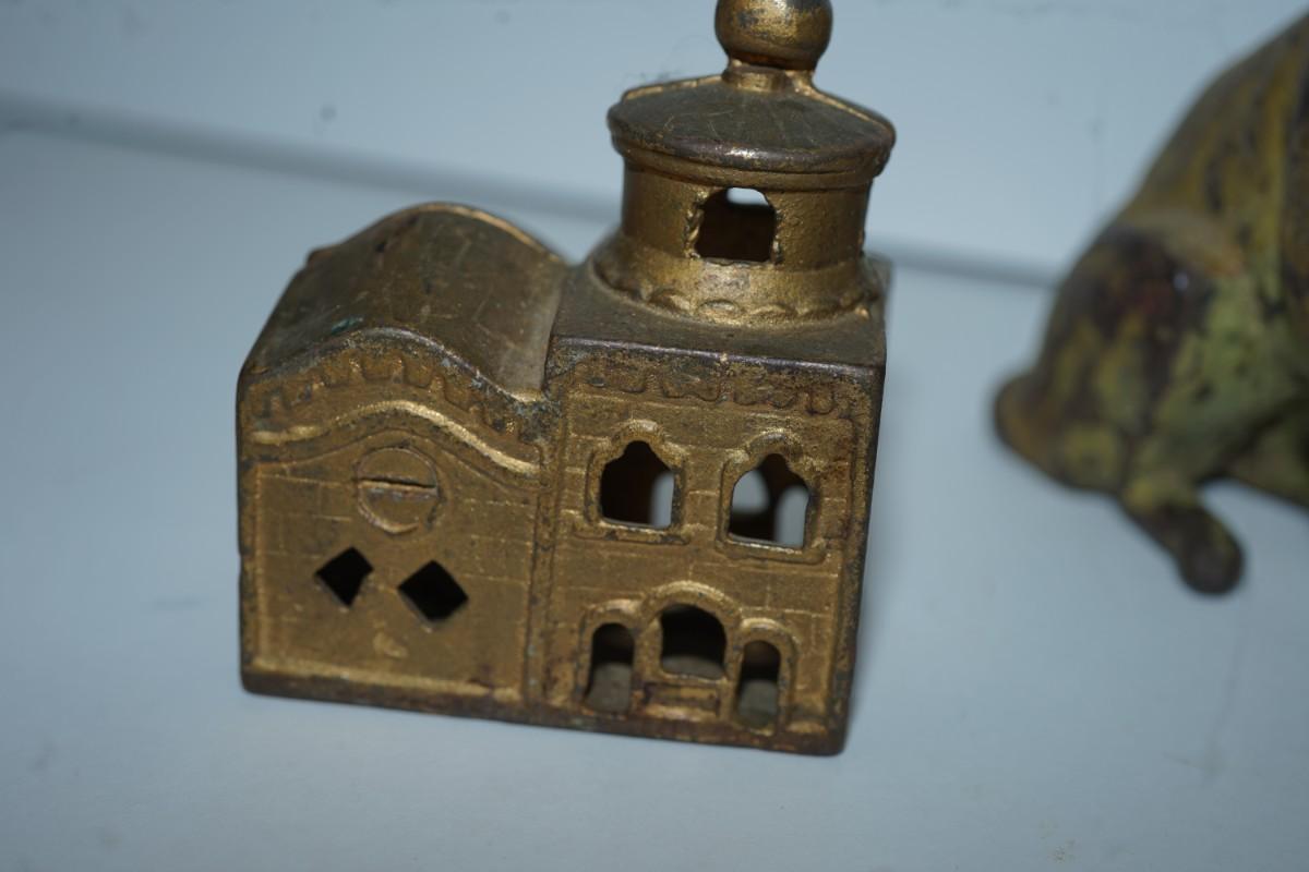PAIR OF CAST IRON STILL BANKS DOG & BUILDING