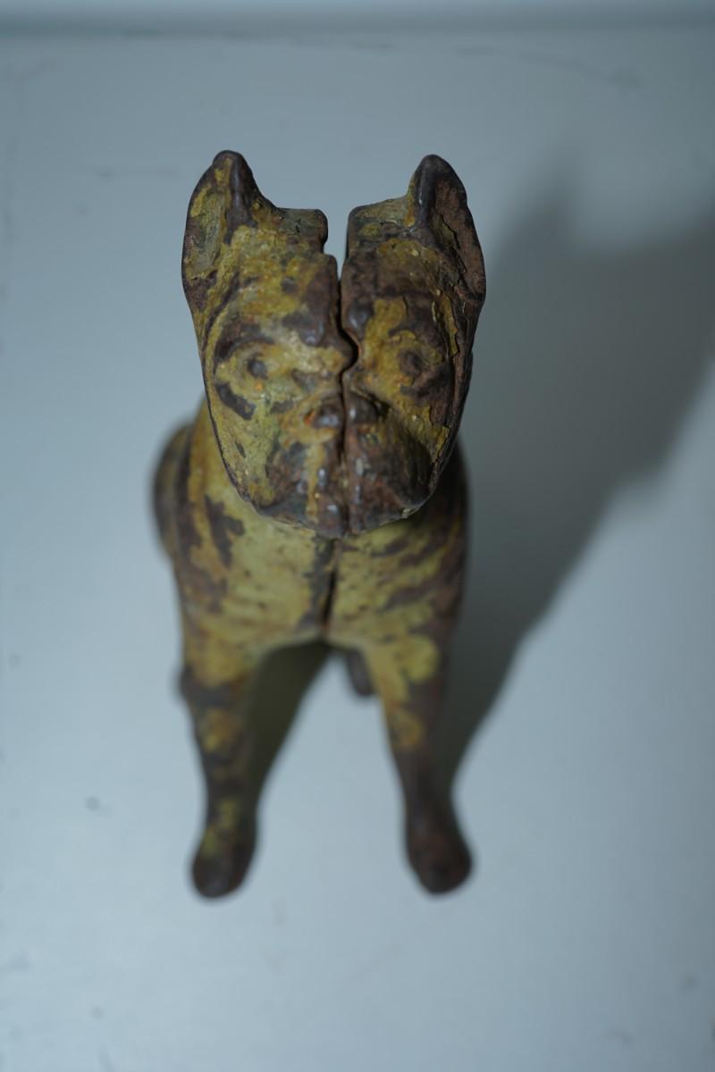 there is alot of paint loss on the dog . there is a slot behind his head to drop the coins