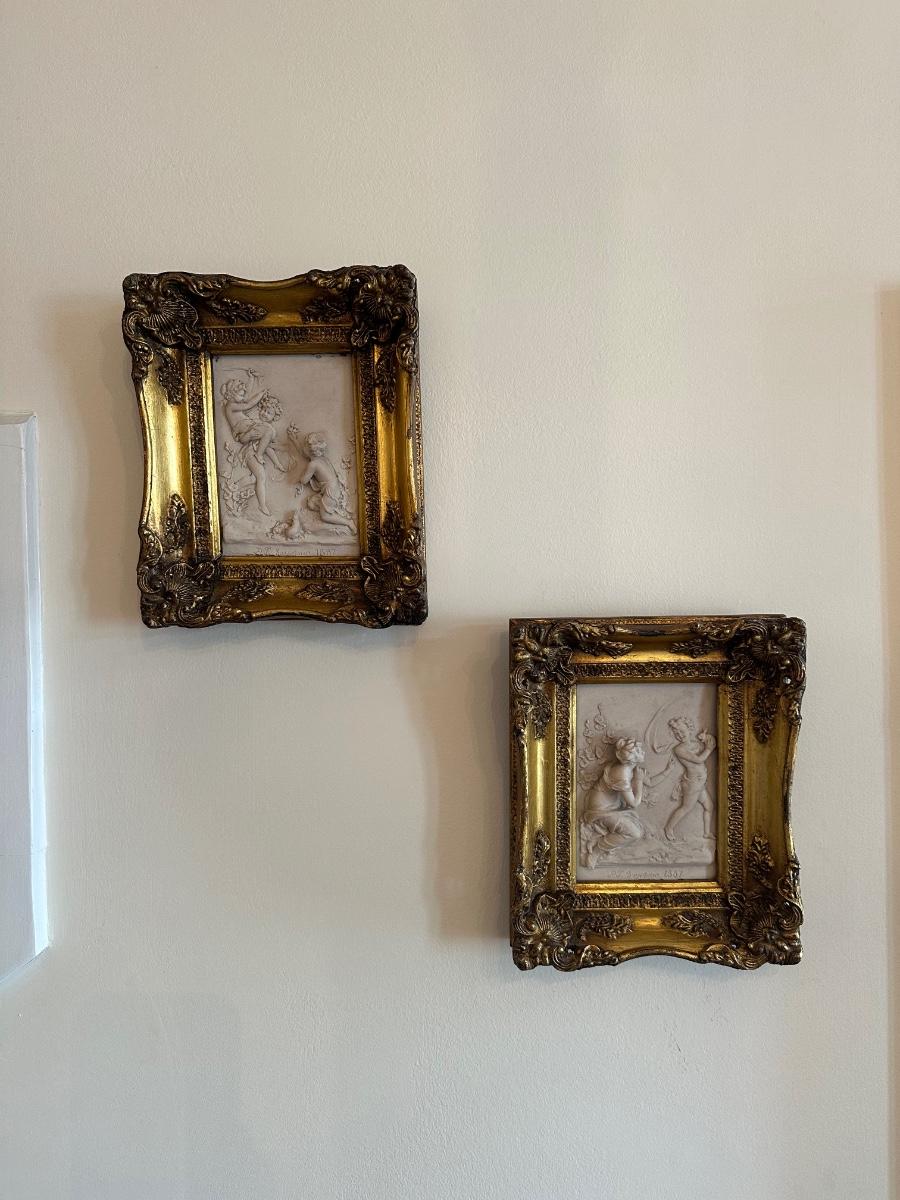 Pair of Cast Marble Figural Bas-Relief Plaques