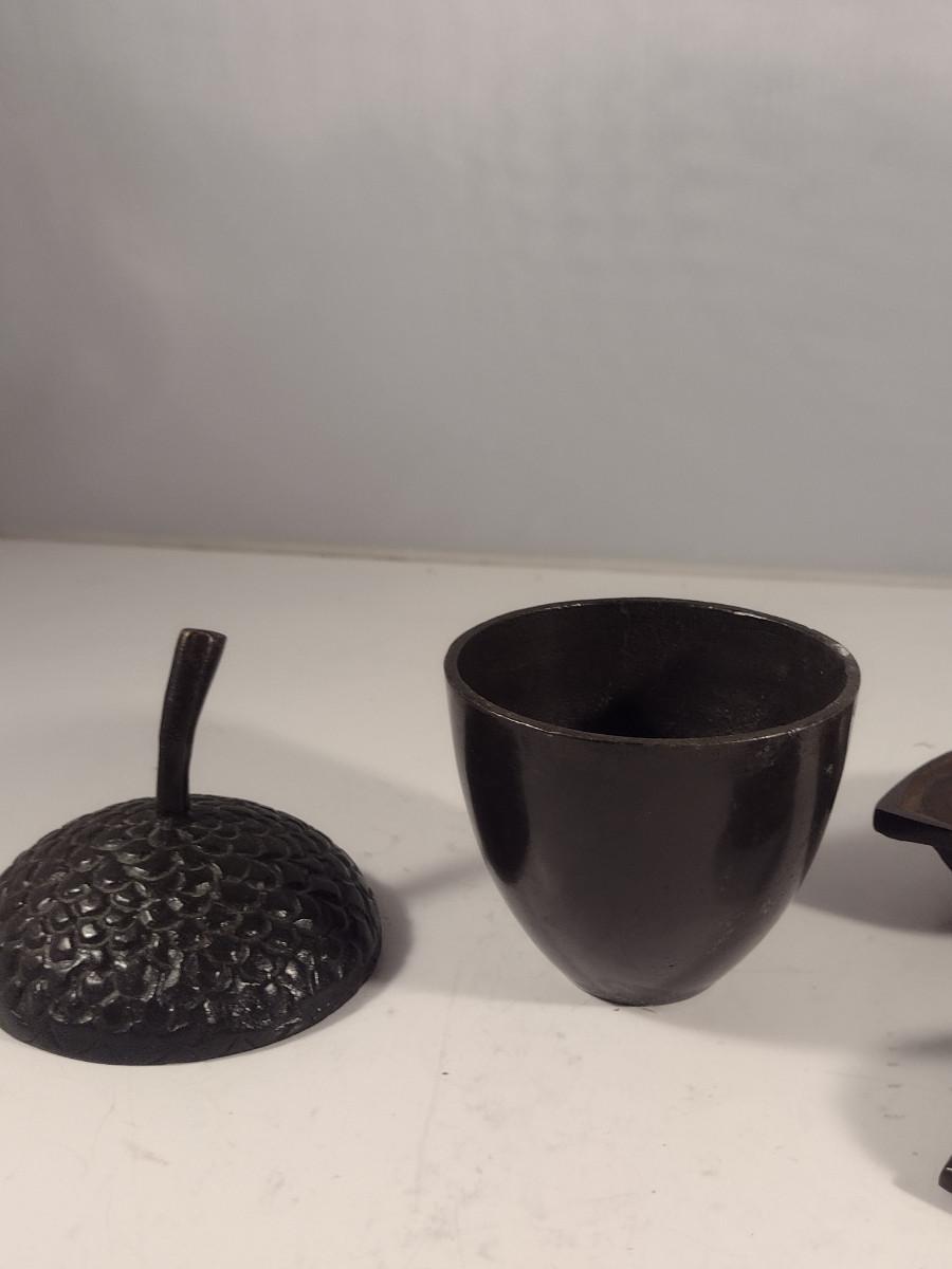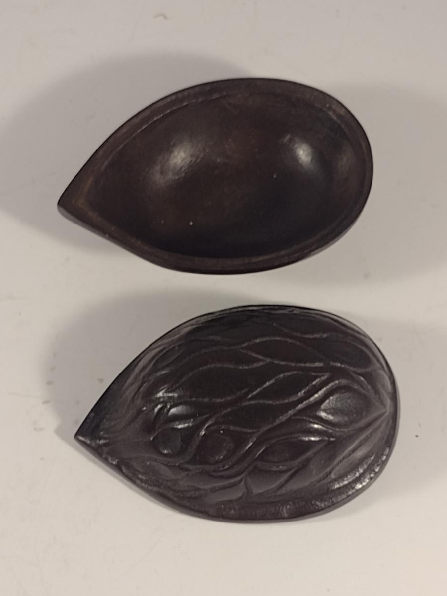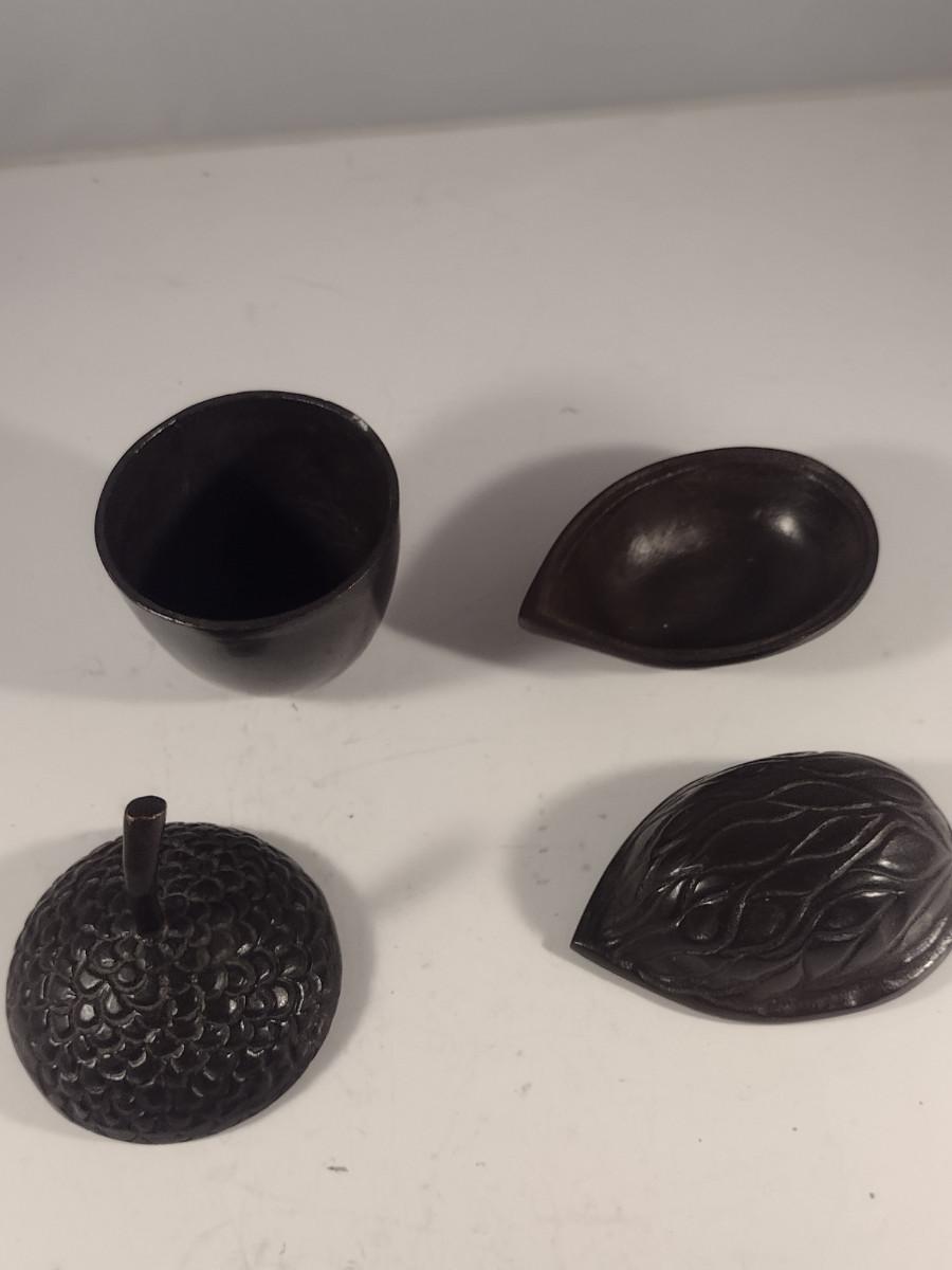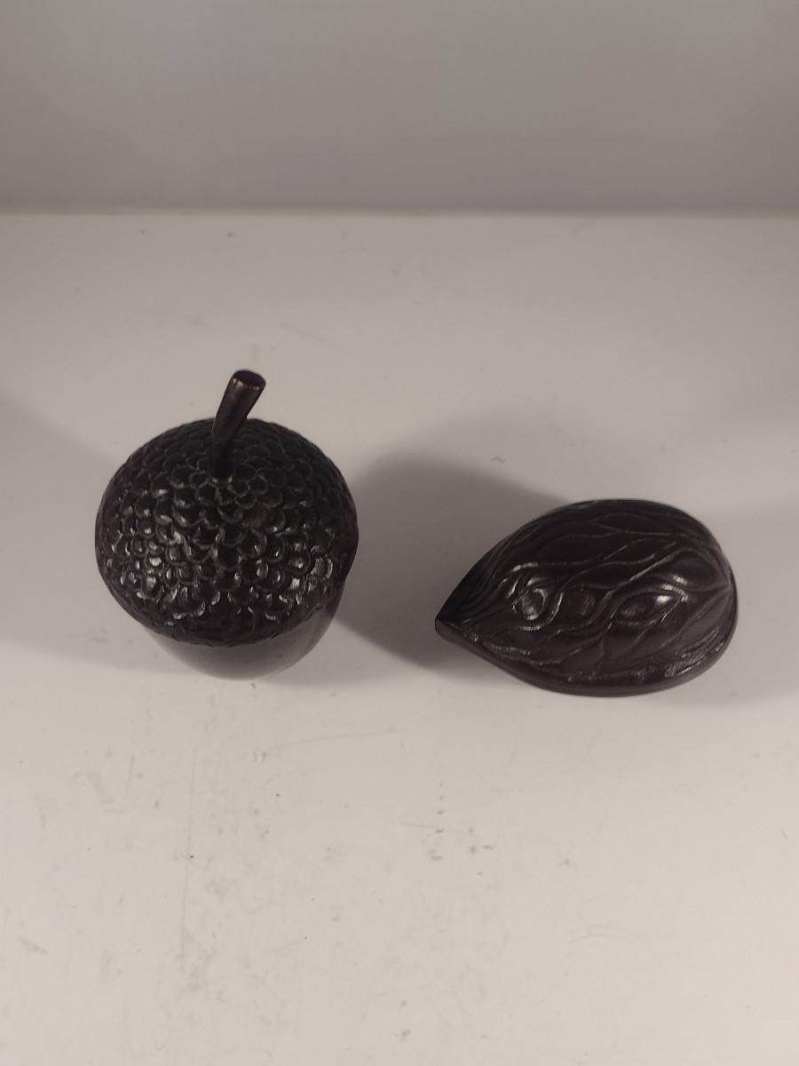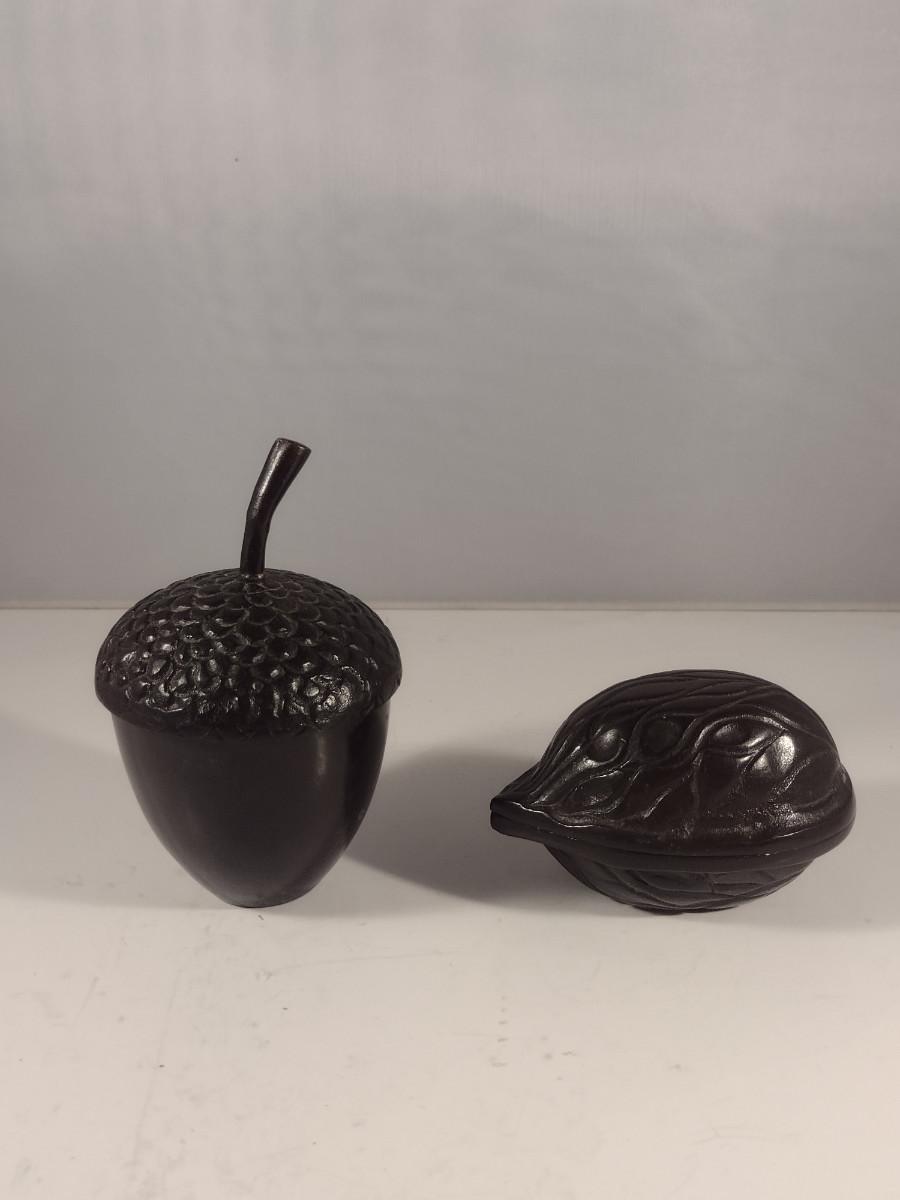 Pair of Cast Metal Nut Design Trinket Boxes with Lids- Acorn and Walnut
