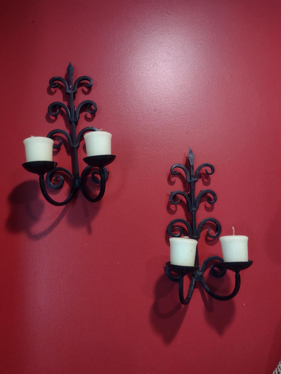 Pair of Cast Metal, Scroll Design Wall Mounted Candle Holders