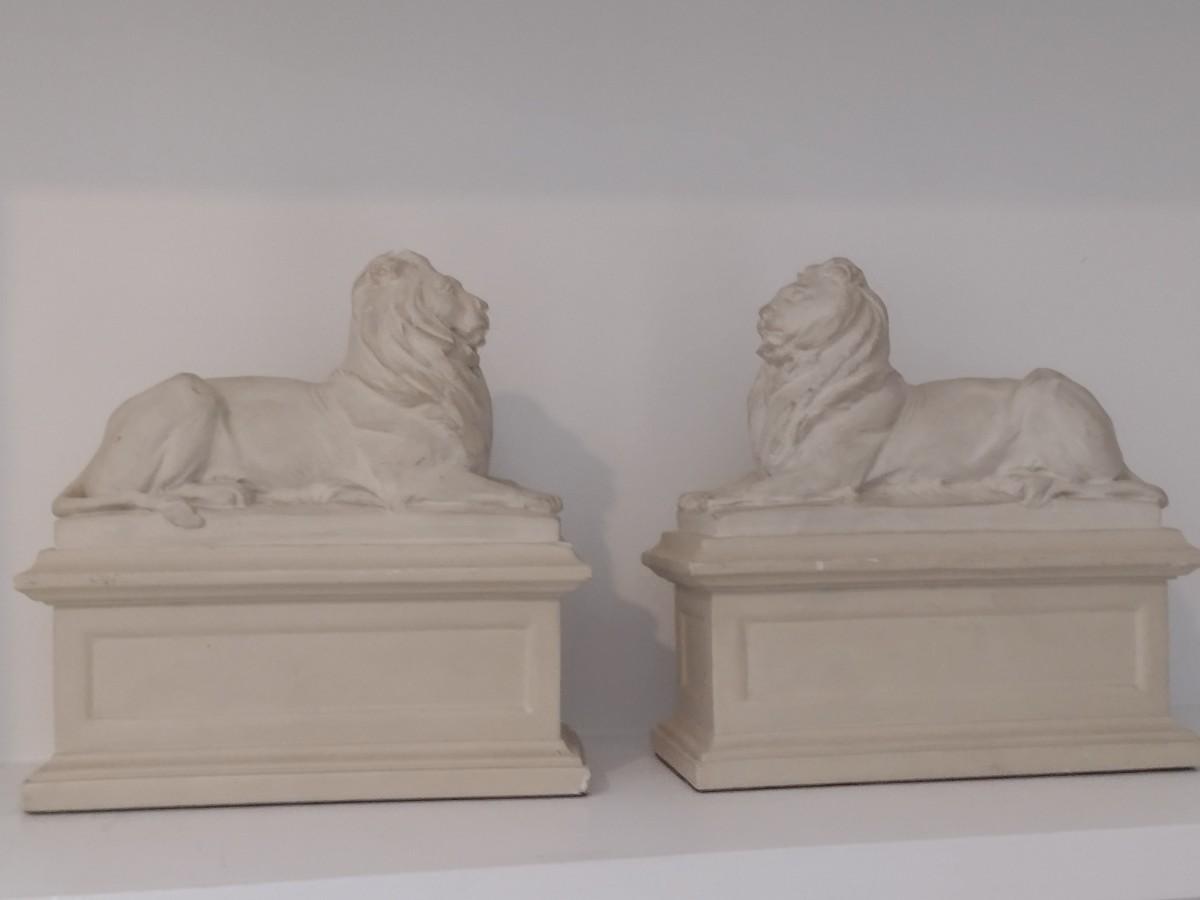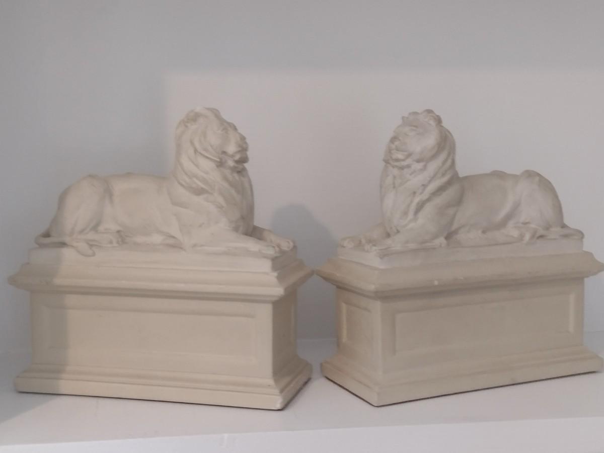 Pair of Cast Resin Alva Museum Replica Lions of Venice Sculptures NYPL