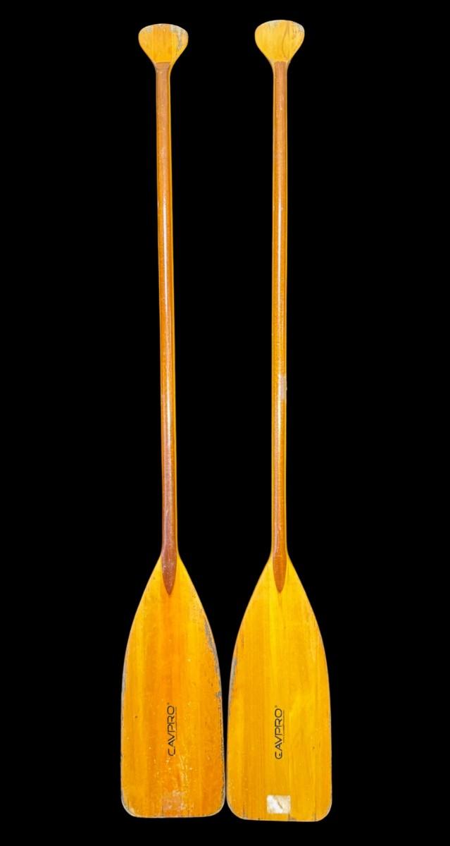 These paddles feature contrasting dark “twin stripes.” There is use related wear, but no cracks or integrity issues to note. Measurement: 58”L (each). [MA]