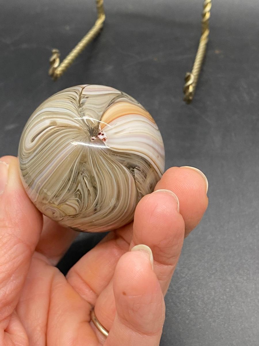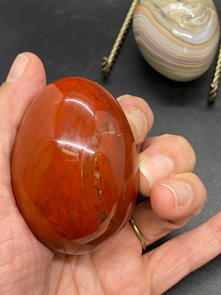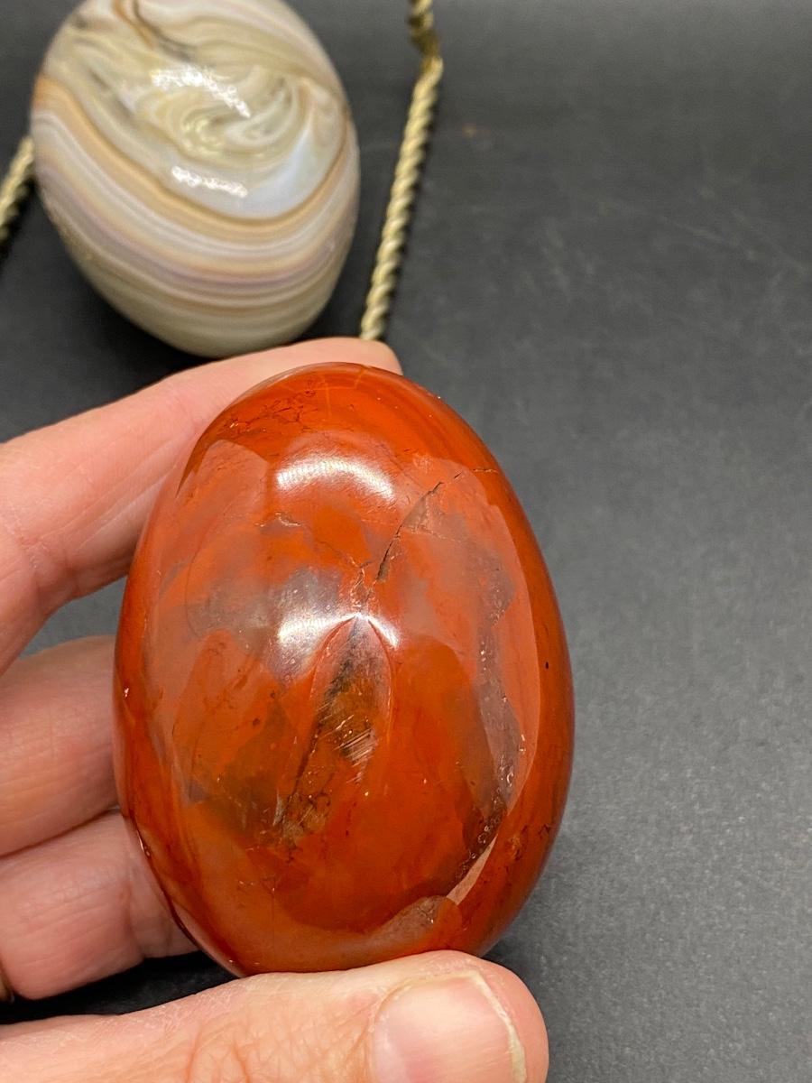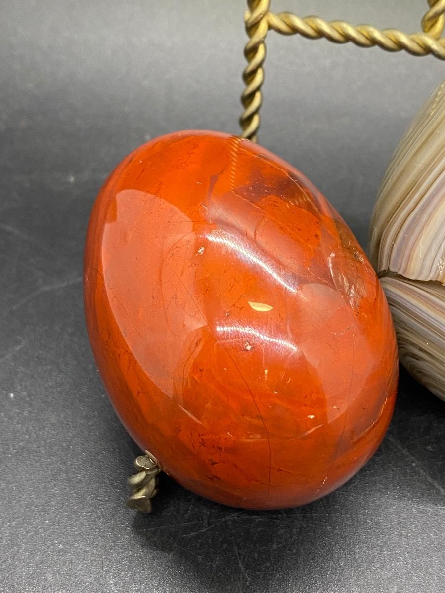 Pair of Blown Glass & Stone Colorful Pattern Eggs, there is no significant damage to either of the pieces and is in good displayable condition. Check pictures for more details and for sizing.