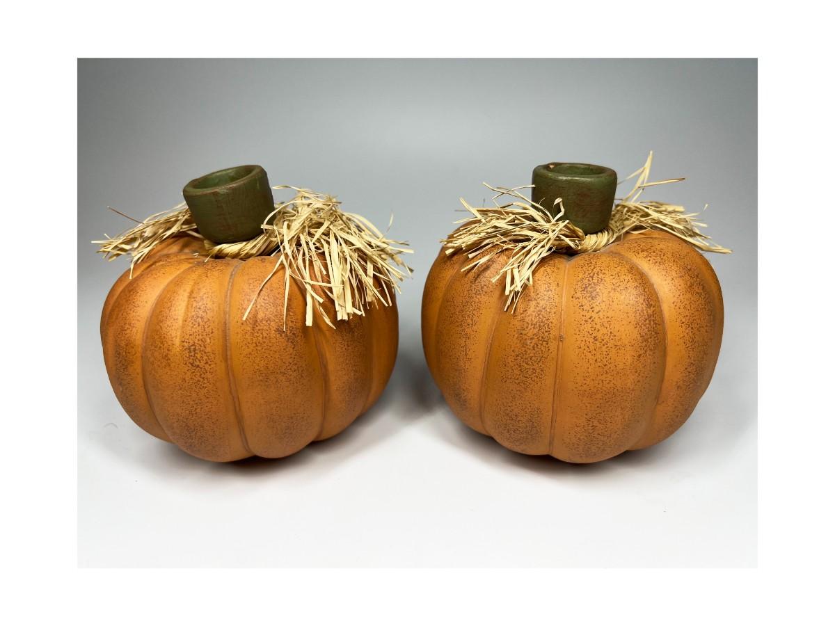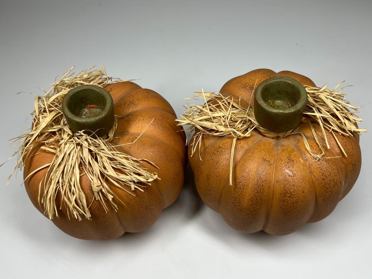 Pair of Ceramic Fall Autumn Pumpkin Candle Holders