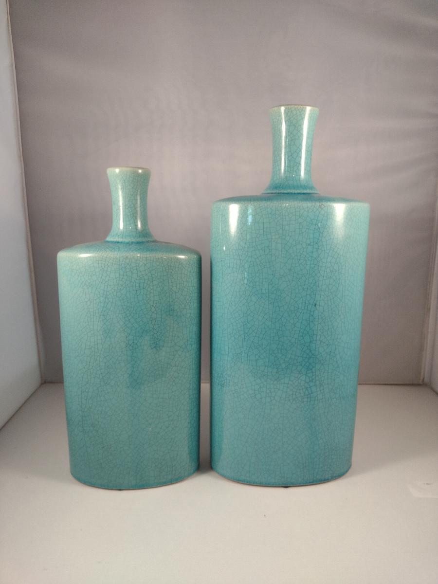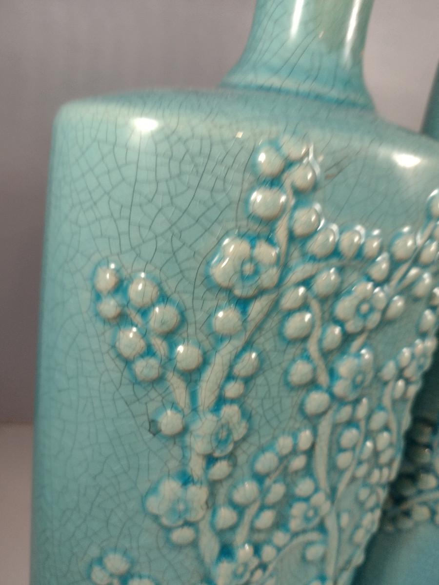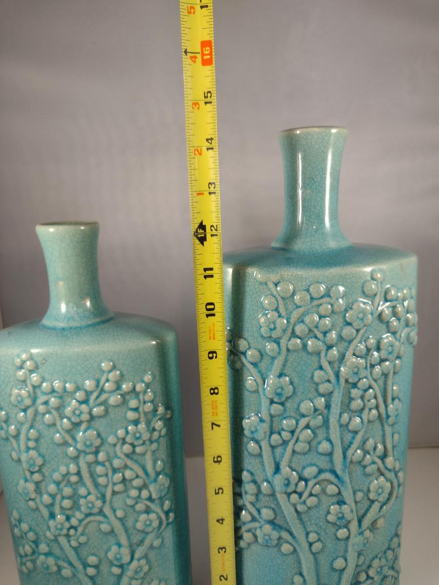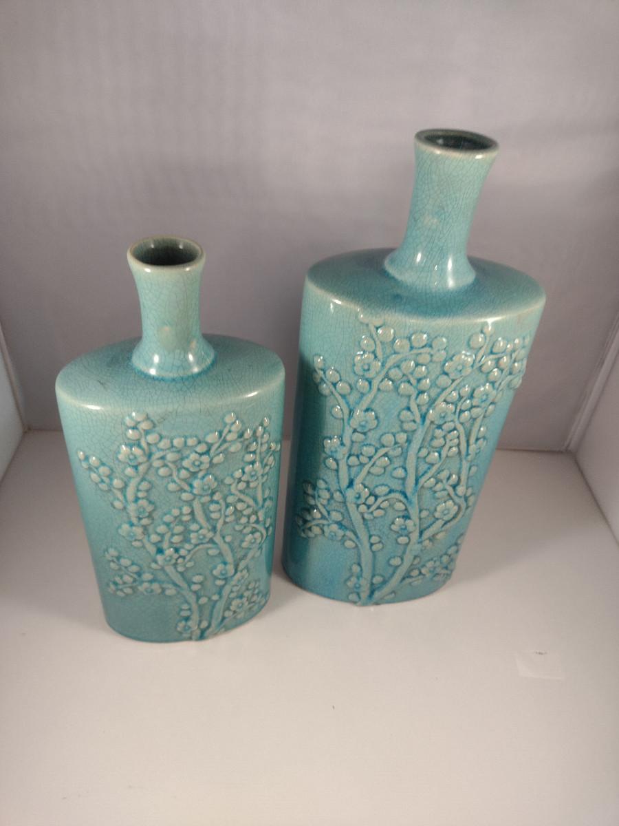 Pair of Ceramic Floral Theme, Bottle Shaped Vases