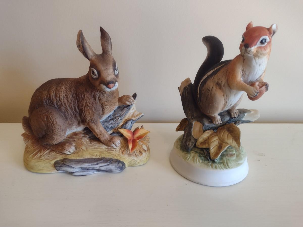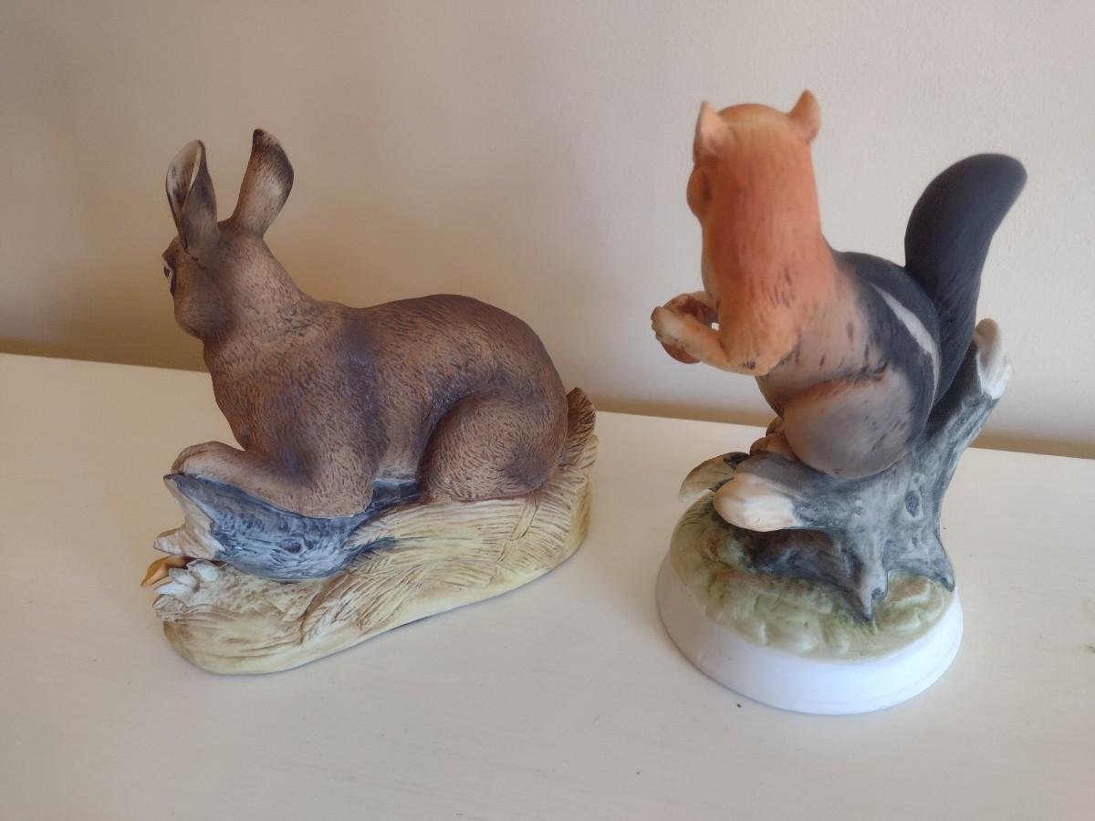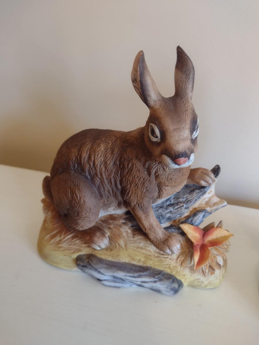 Pair of Ceramic Wildlife Statuettes Wild Hare by Andrea