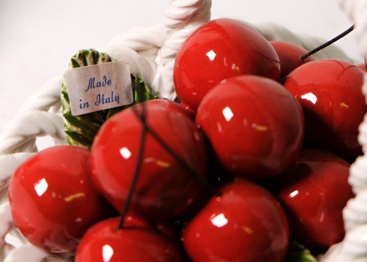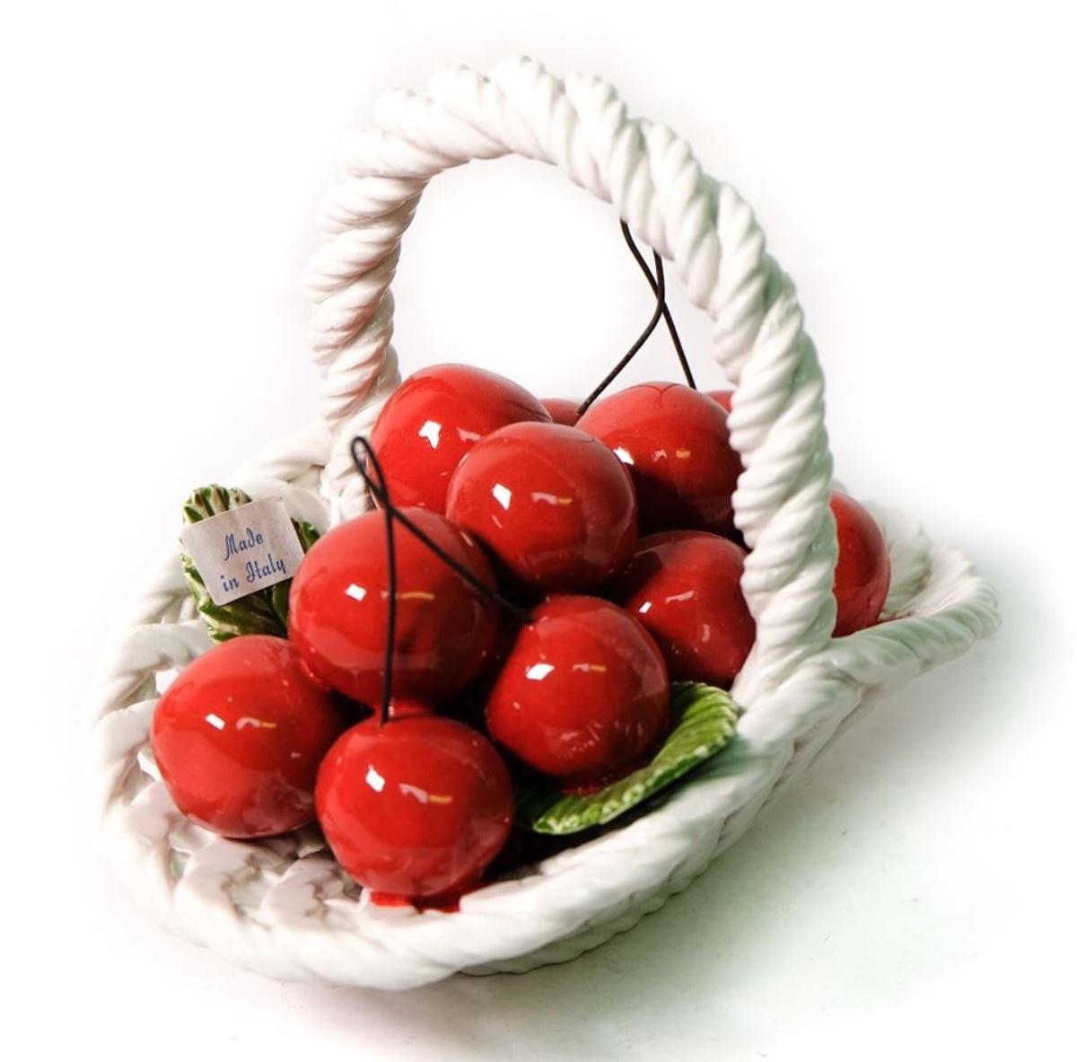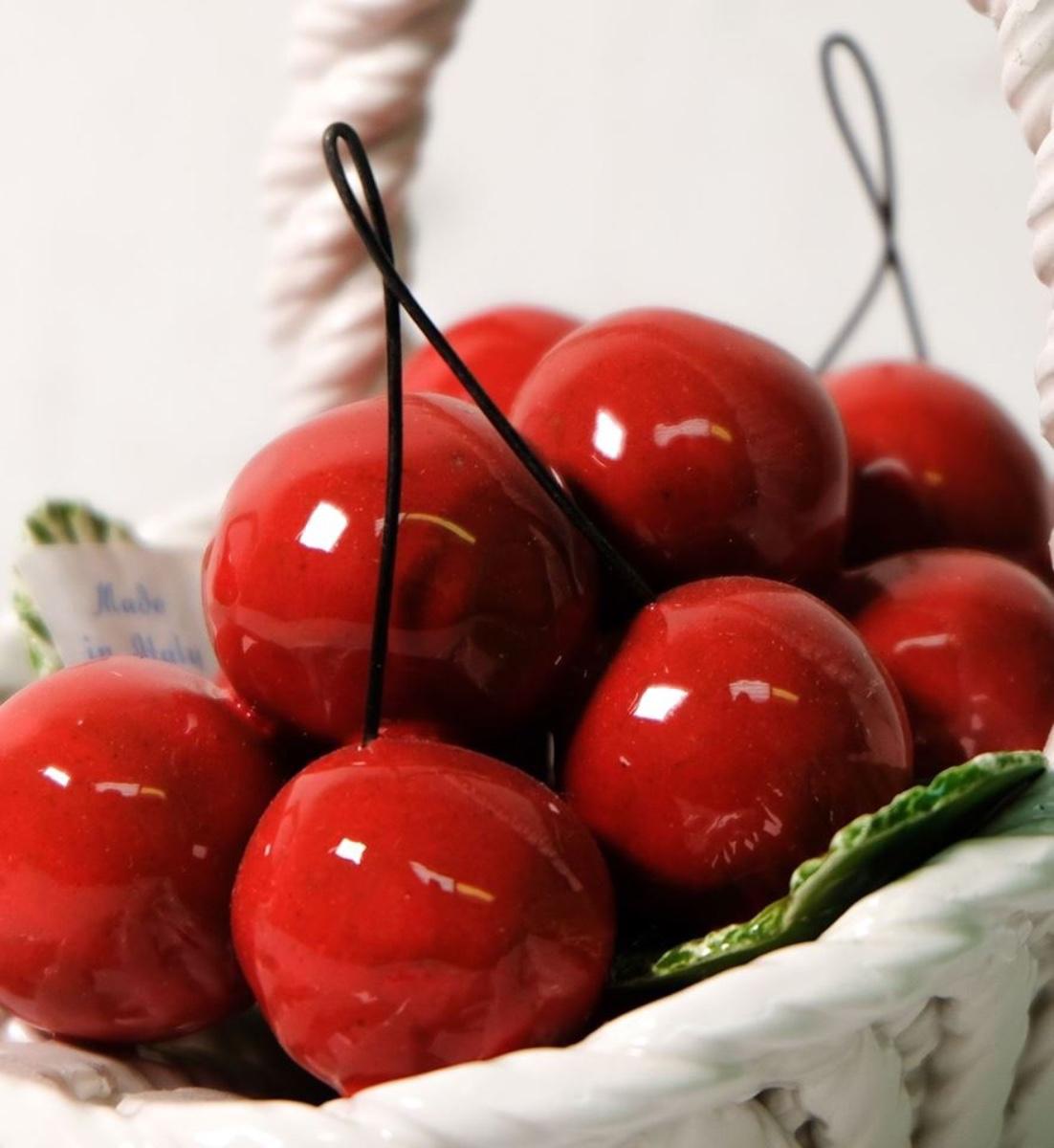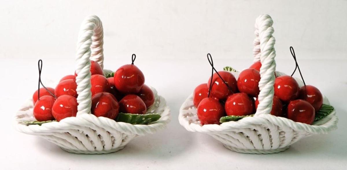 Pair of Ceramic Hand painted Capodimonte Cherry Baskets