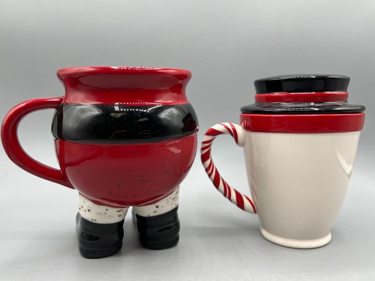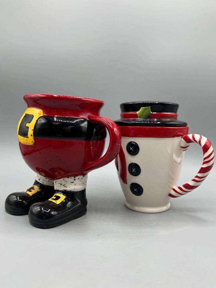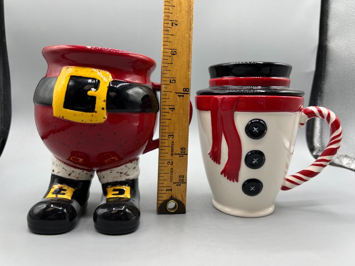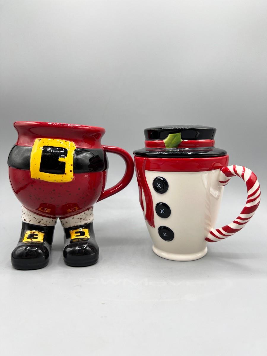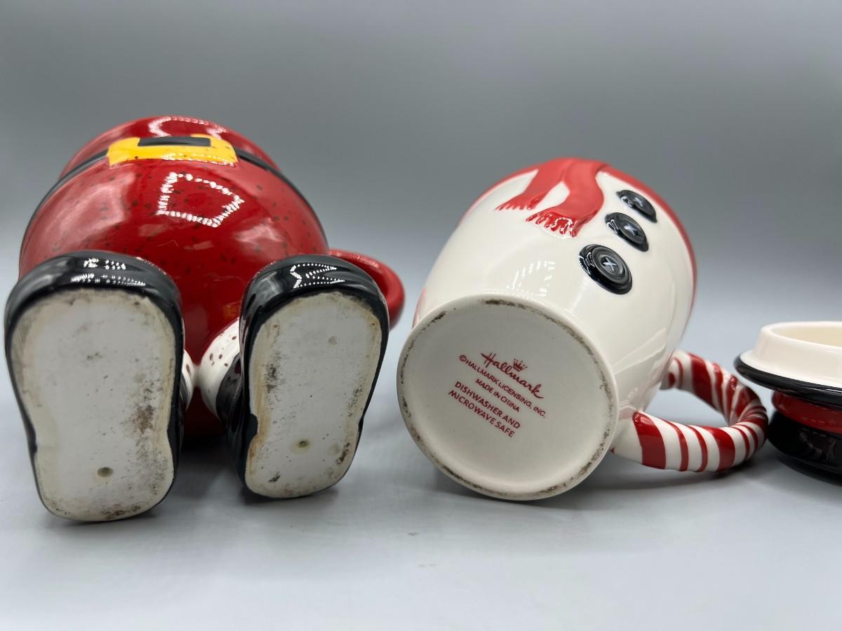 Pair of Ceramic Holiday Christmas Santa Claus & Hallmark Snowman Coffee Tea Mugs