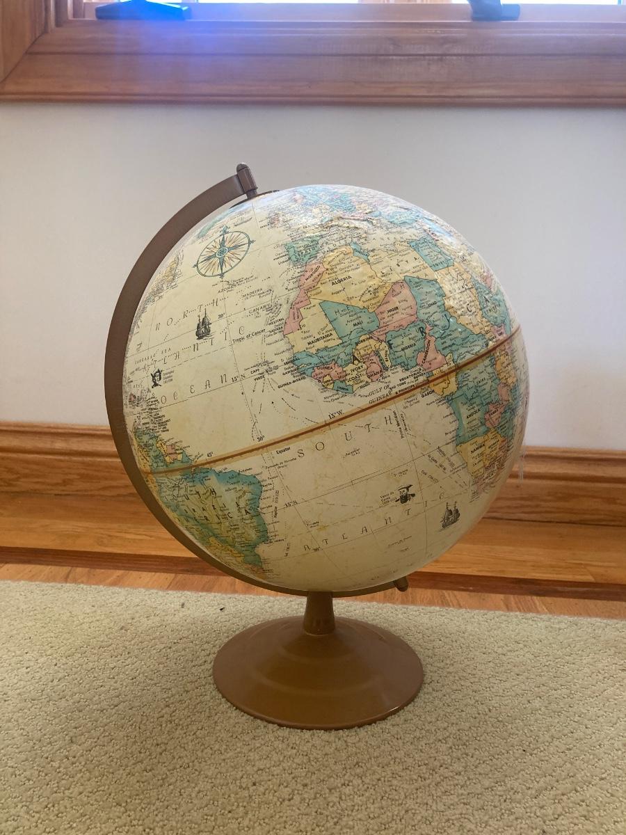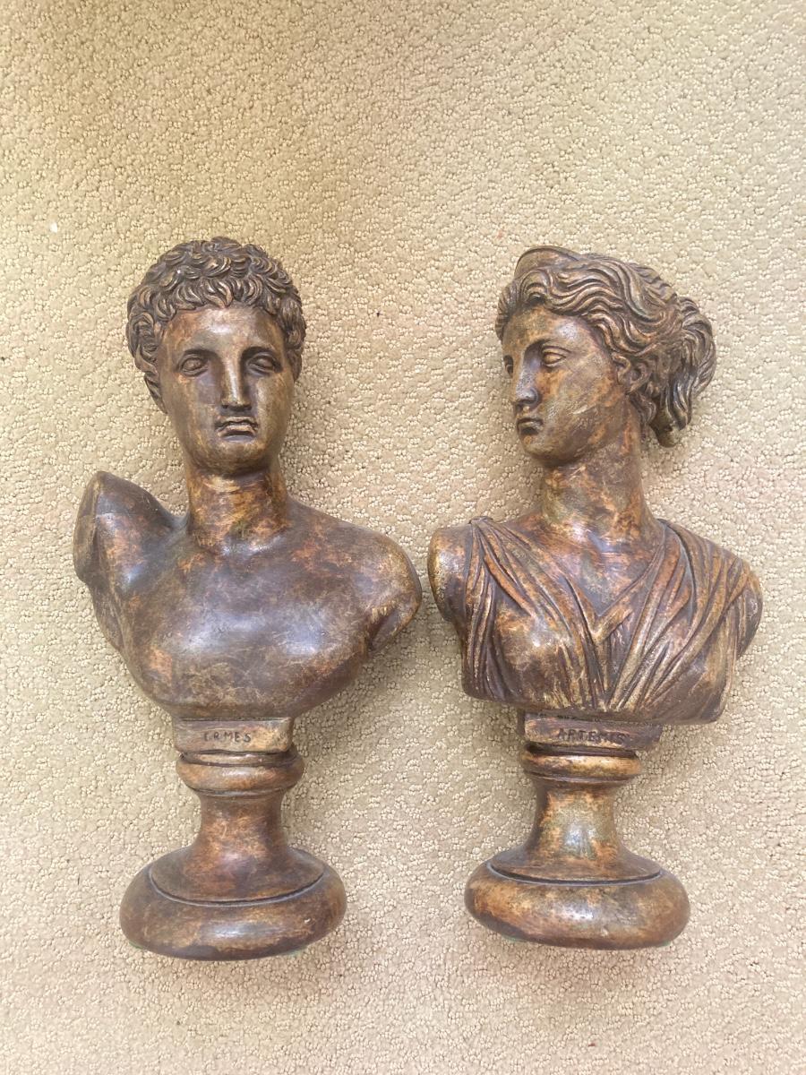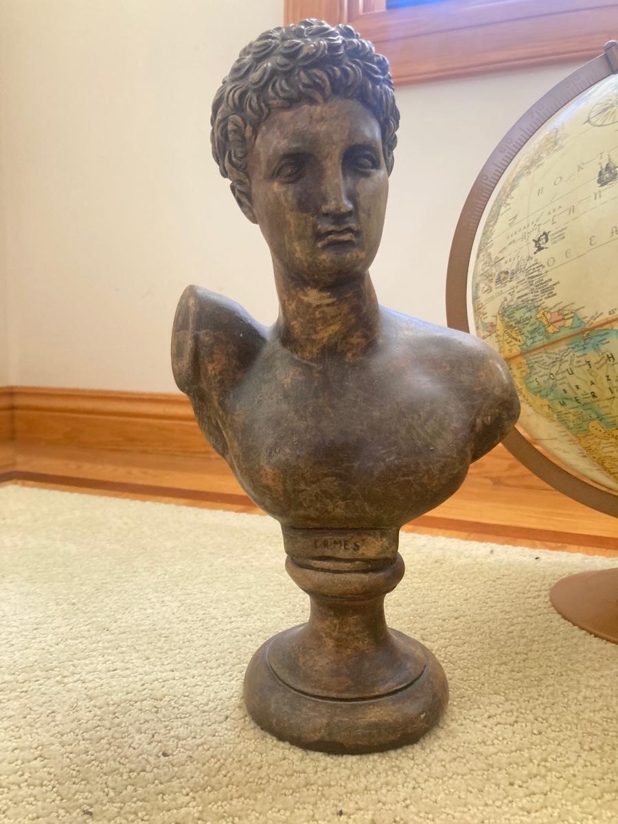 Pair of ceramic busts signed Italy on each. Both 14”in height. 12” Globemaster globe.