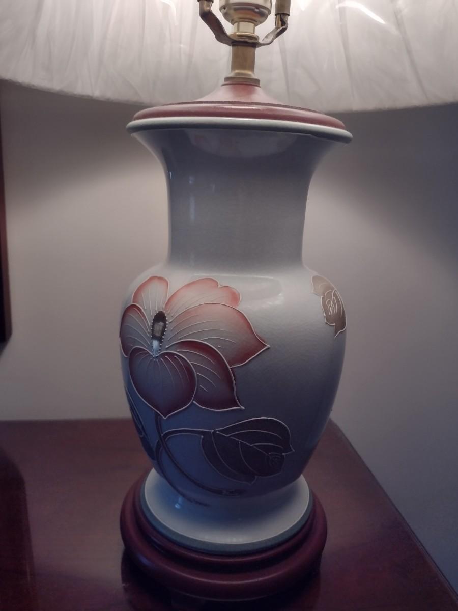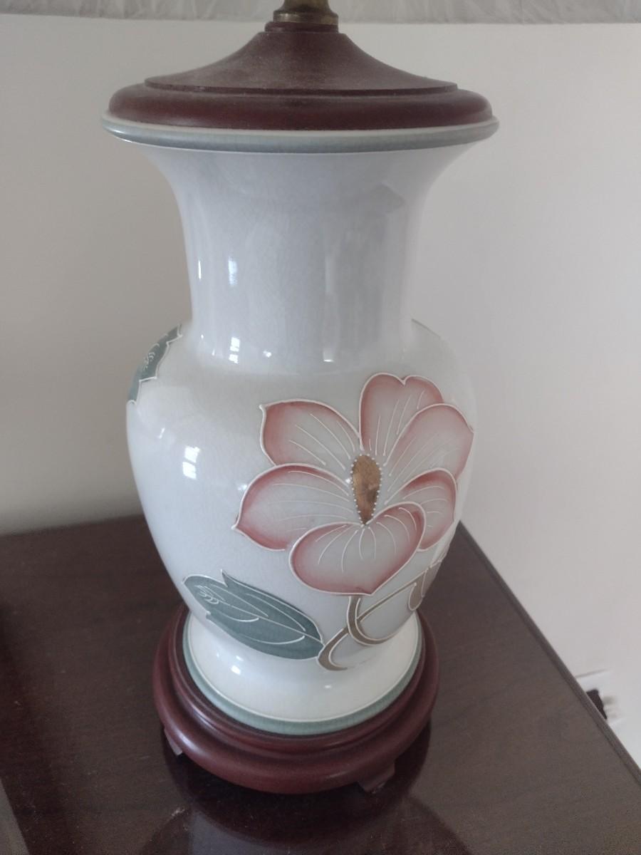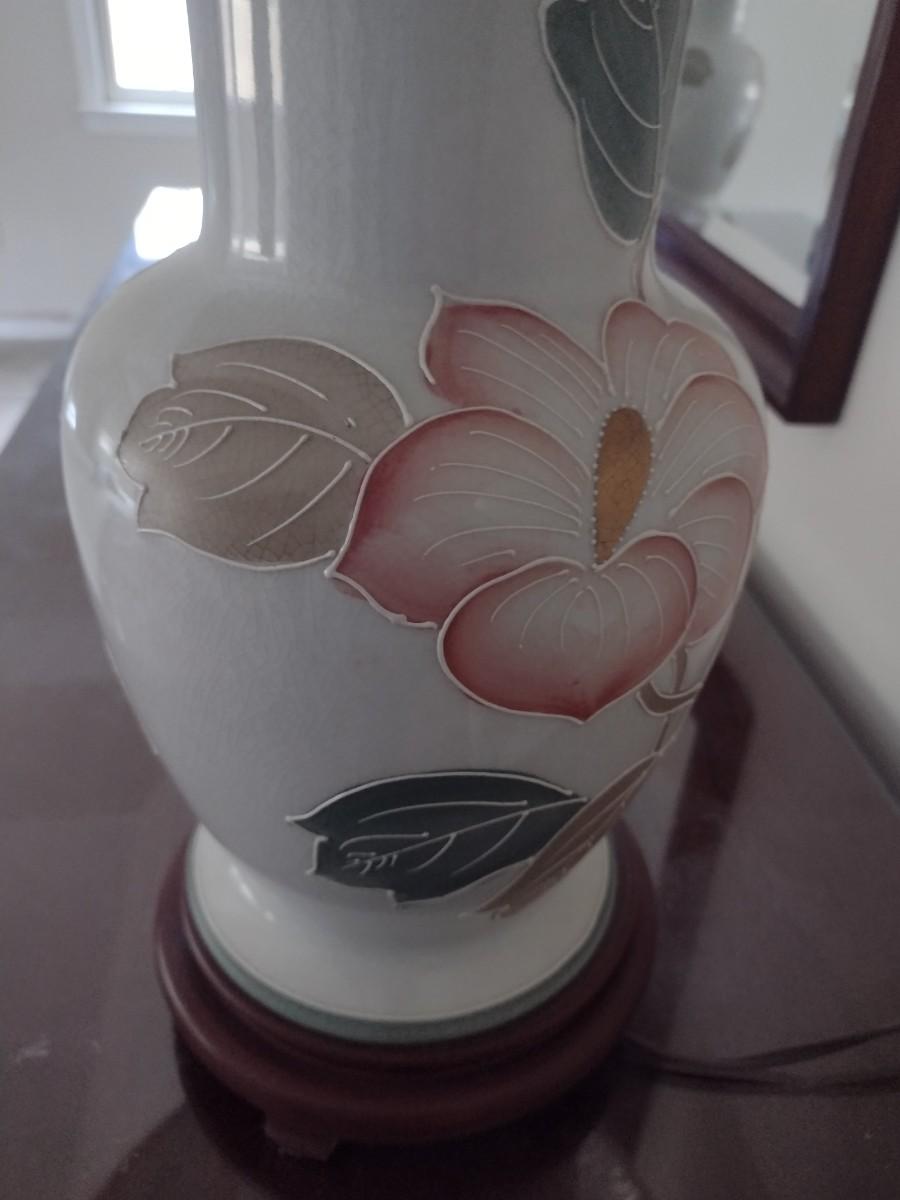 Pair of Ceramic Jar Shaped Table Lamps with Applied Floral Design