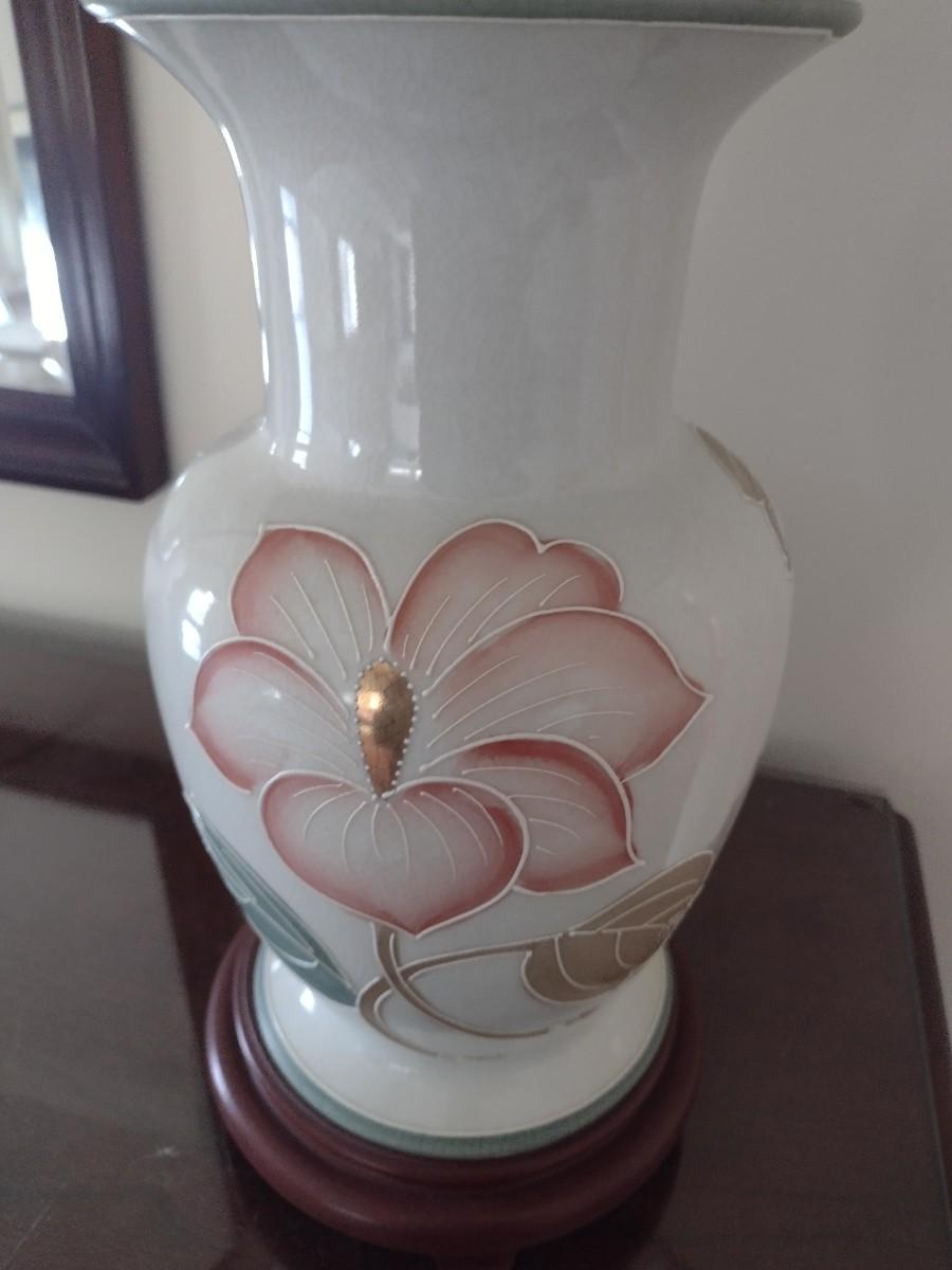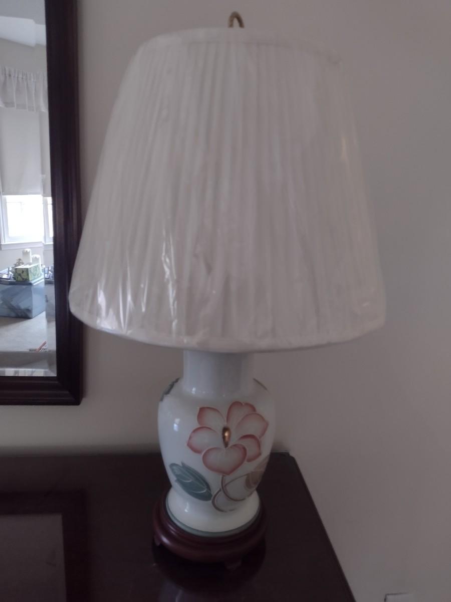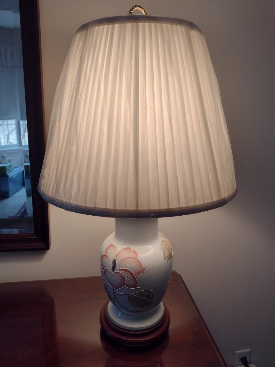 Pair of Ceramic Jar Shaped Table Lamps with Applied Floral Design