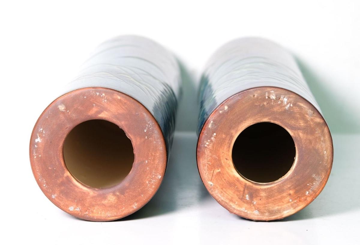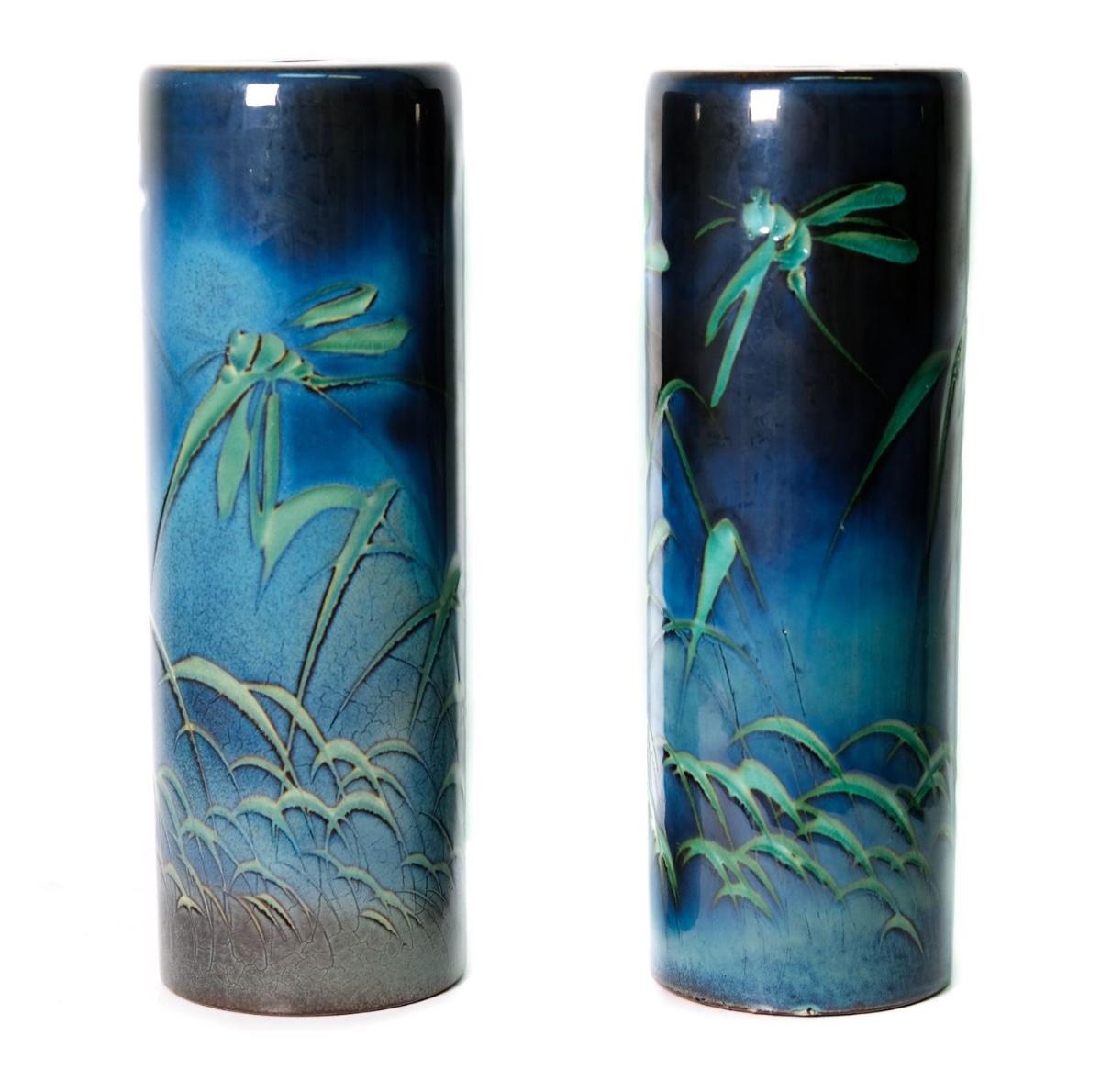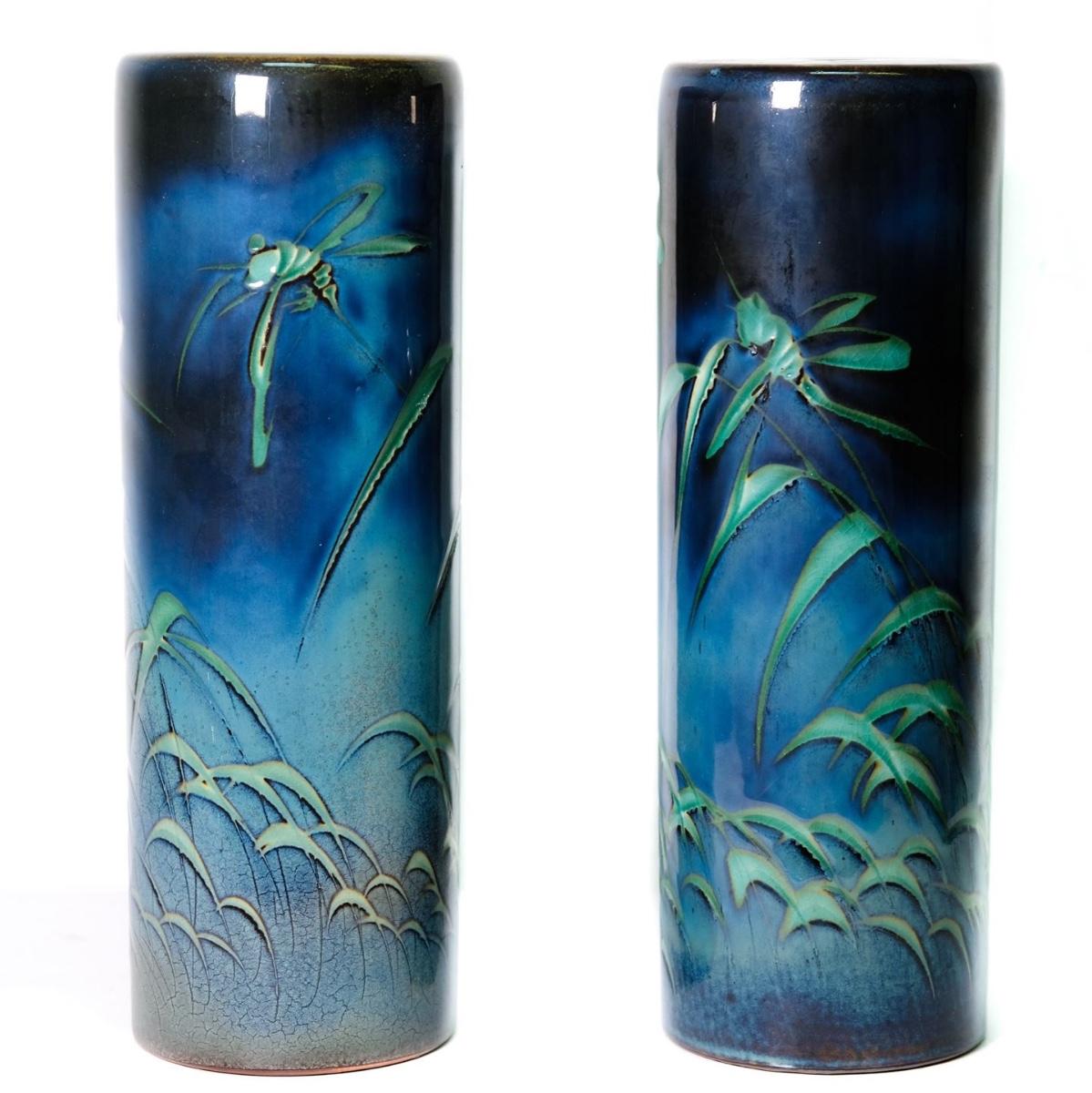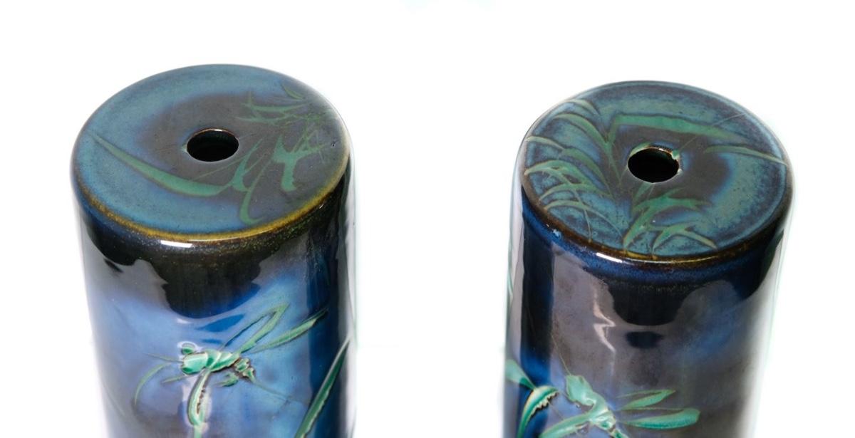 Pair of Ceramic Painted Dragon fly Motif Hat Stands or Lamp Bases