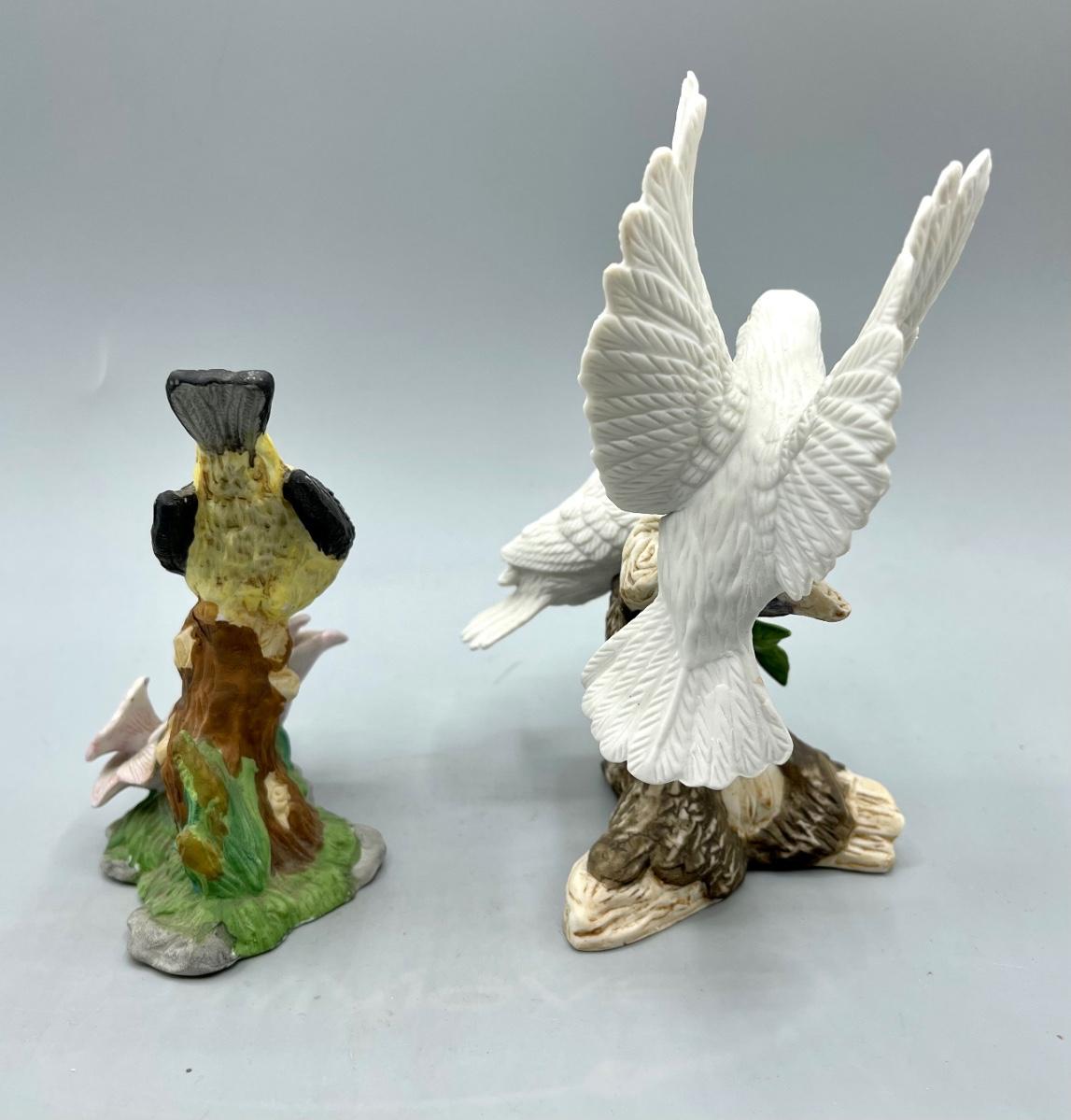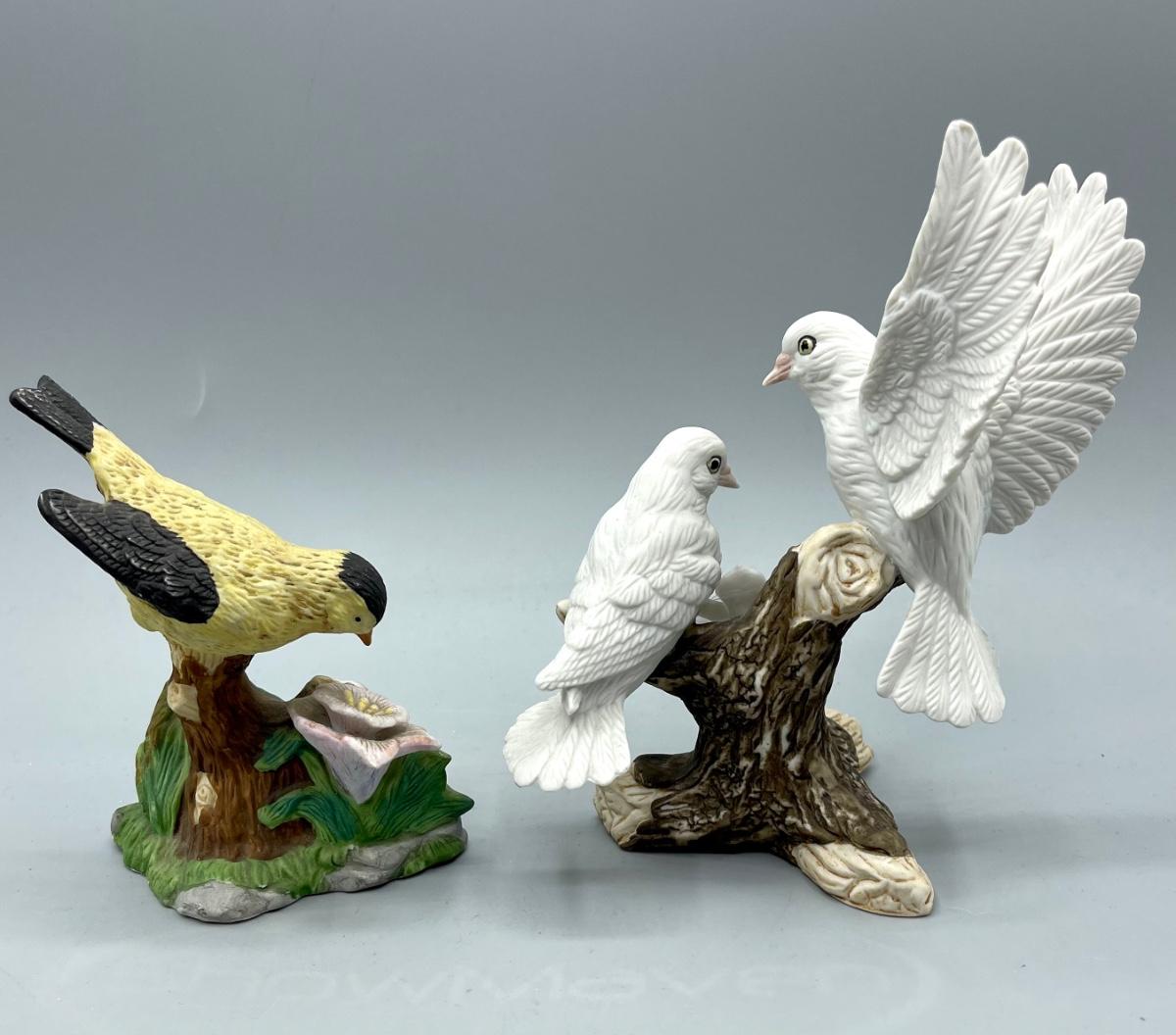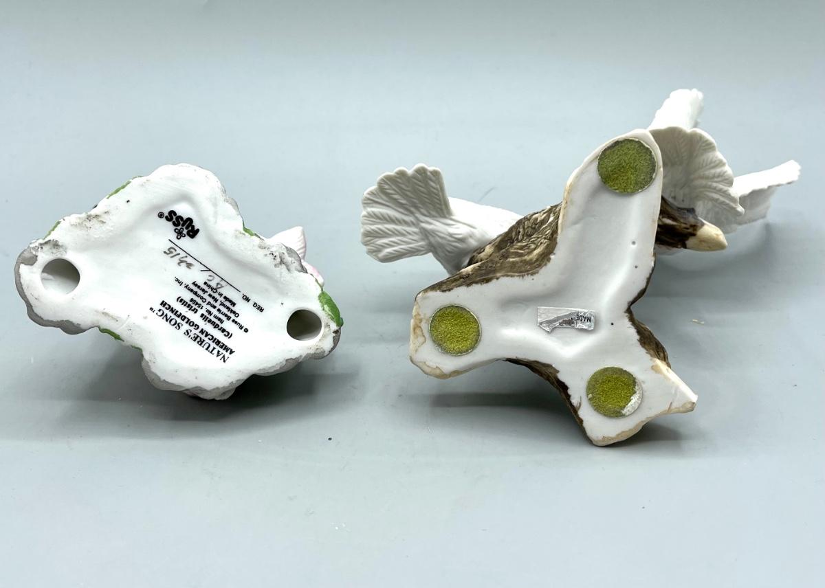 Pair of Ceramic Perching Bird Figurines Russ Nature's Song Goldfinch & Doves