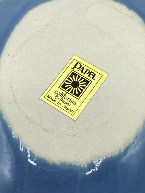 Pair of 1980s spoon rest by Papel California. Soft blue and peachy colored ceramic spoon rests. Look to be unused. Have original stickers attached.