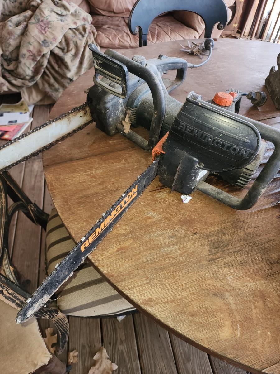 Pair of chain saws.