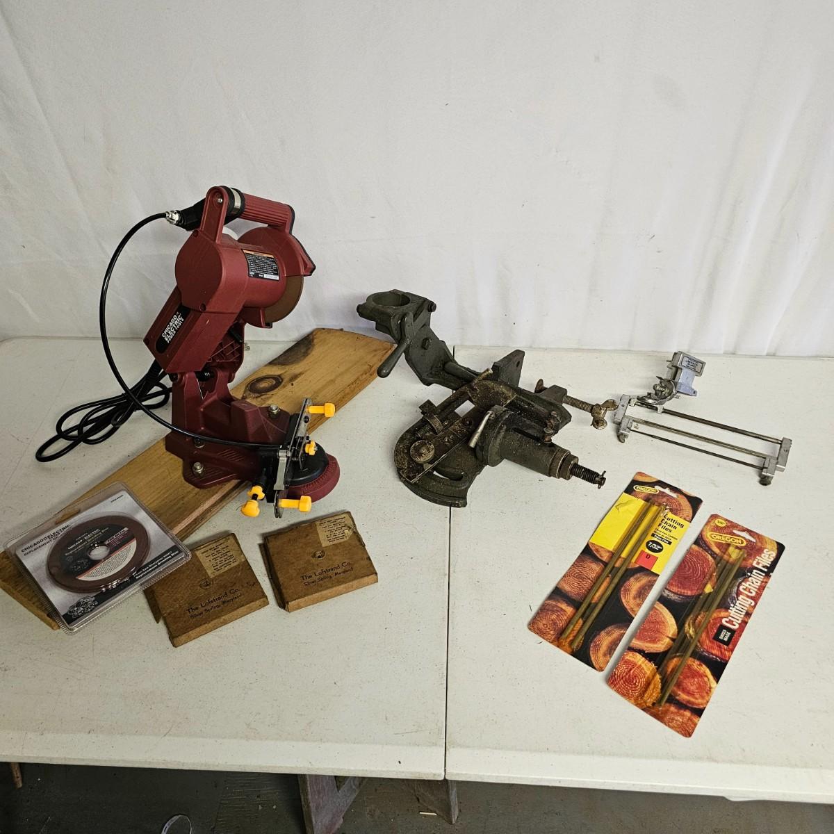 Trio of Chainsaw Sharpeners Including Chicago Electric & Sears Clamp-On File-N-Guide (SF-JS)