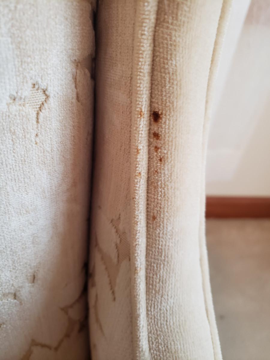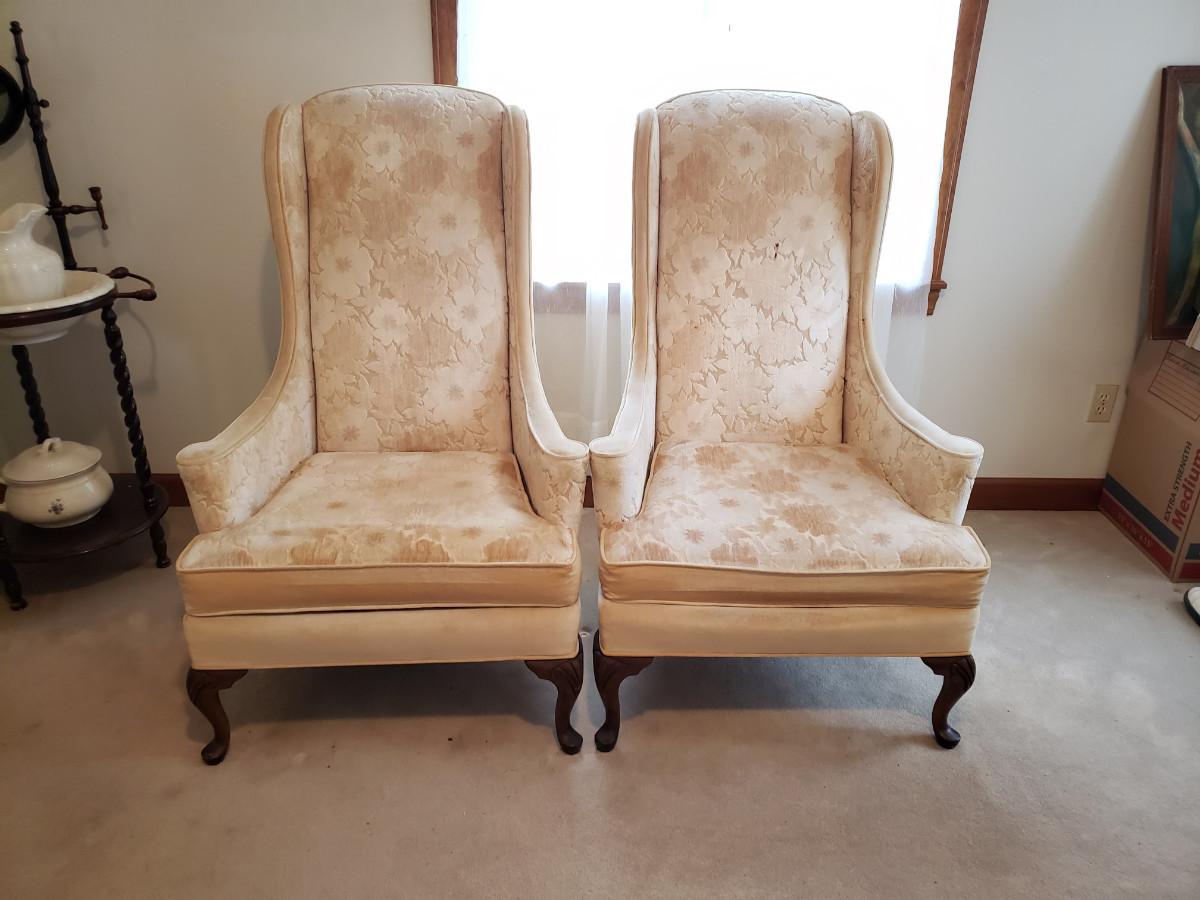 Pair of high back chairs. Some wear and visible stains. See pictures for details