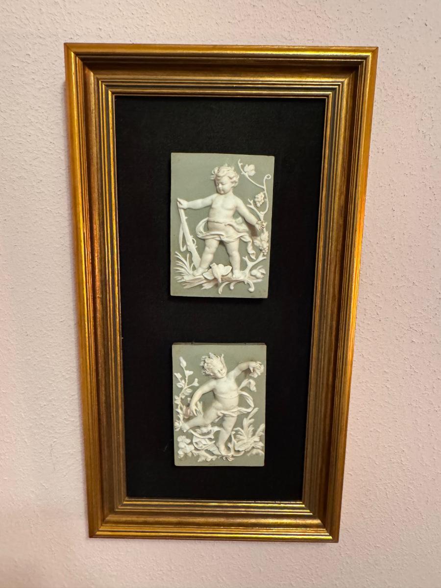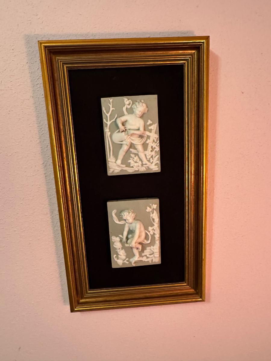 Pair of Cherub Framed Tiles