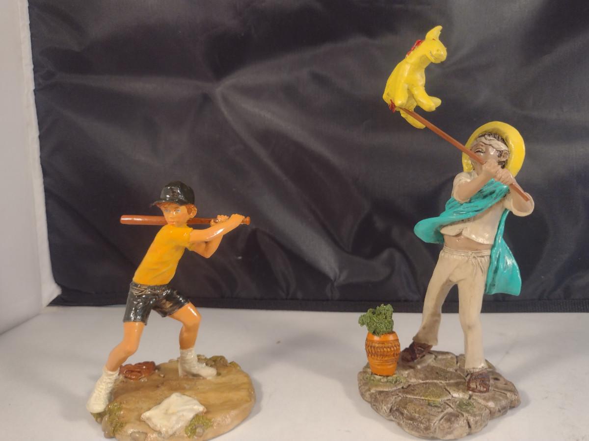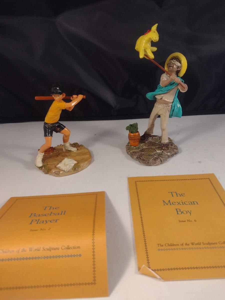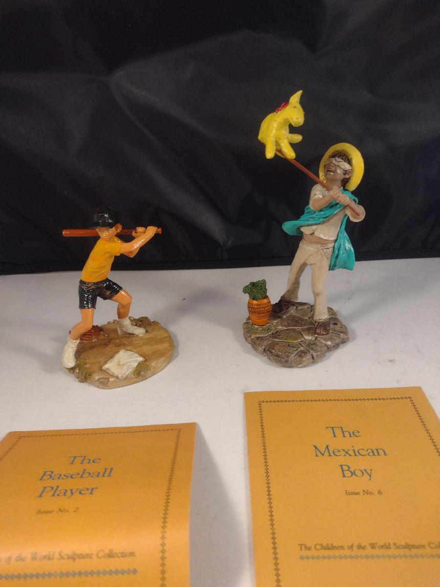 Pair of 'Children of the World' Franklin Mint Figurines- Baseball Player and Mexican Boy- Hand Painted Pewter