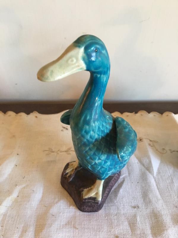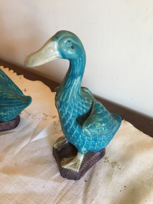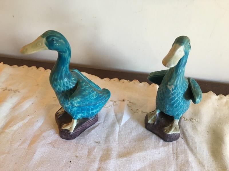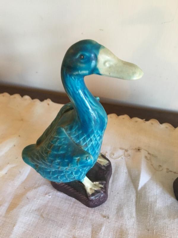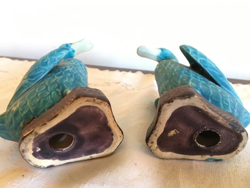 Pair of Chinese Antique Porcelain Turquoise Blue Figural Ducks 6.25”