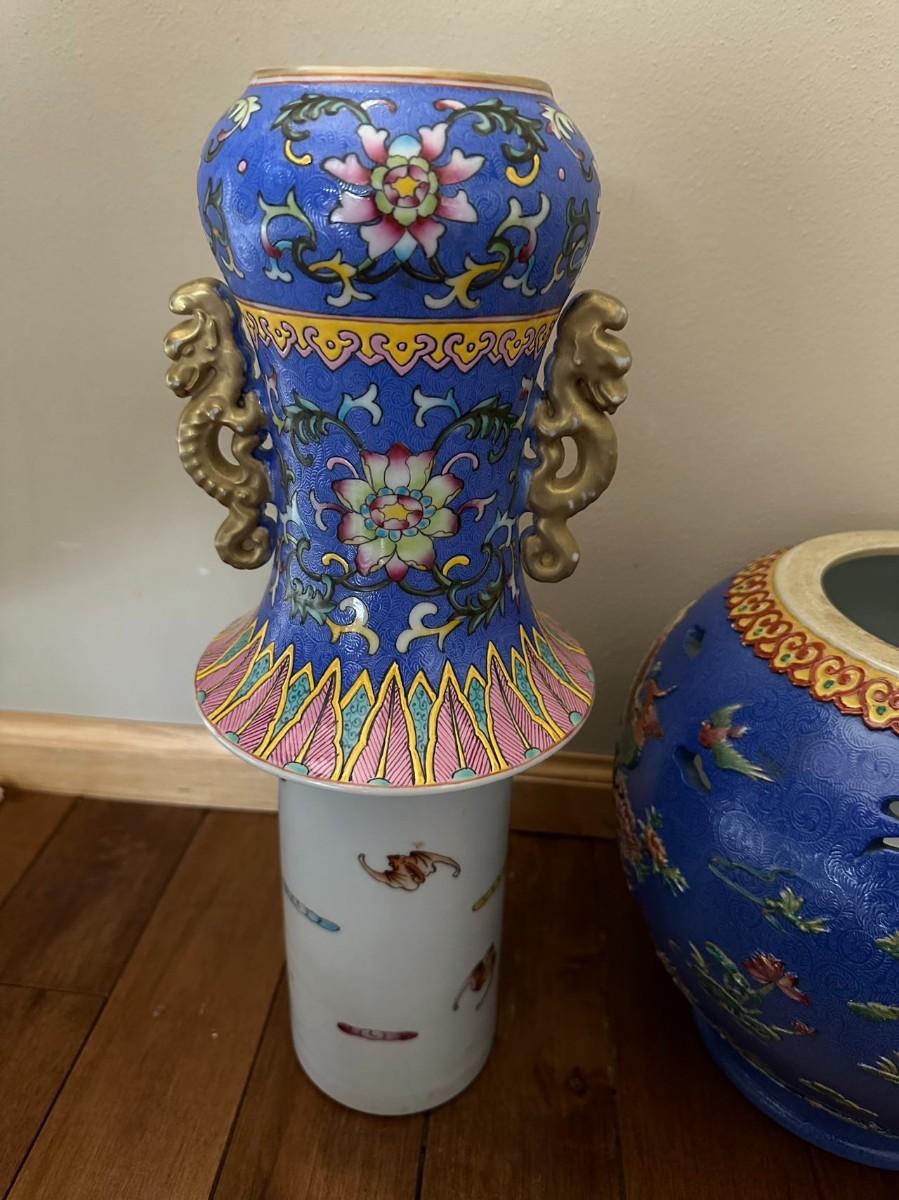 Pair of Chinese Vintage Porcelain Enamel Colour Bottle Vase With Four Characters Mark-local pickup and shipping available