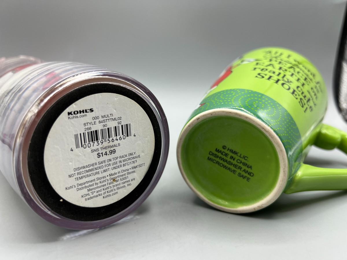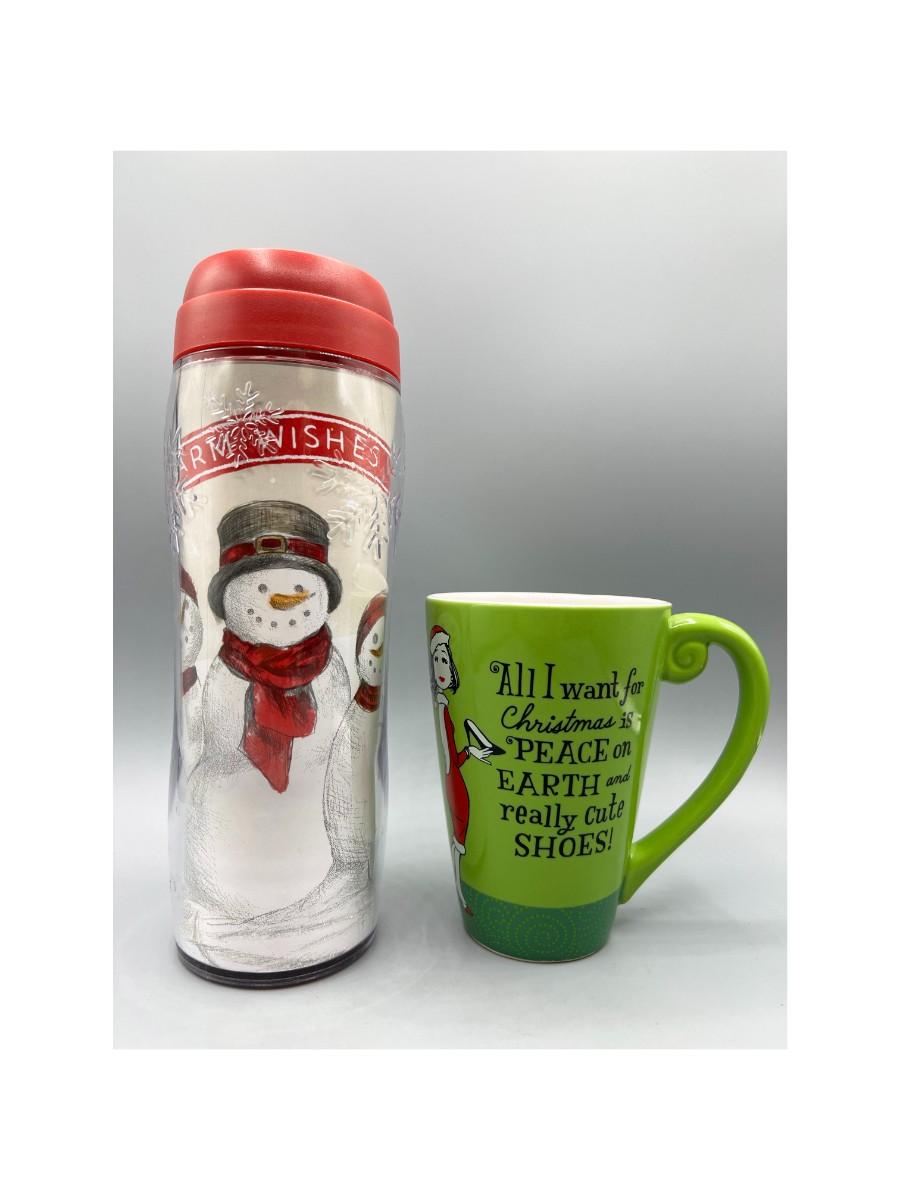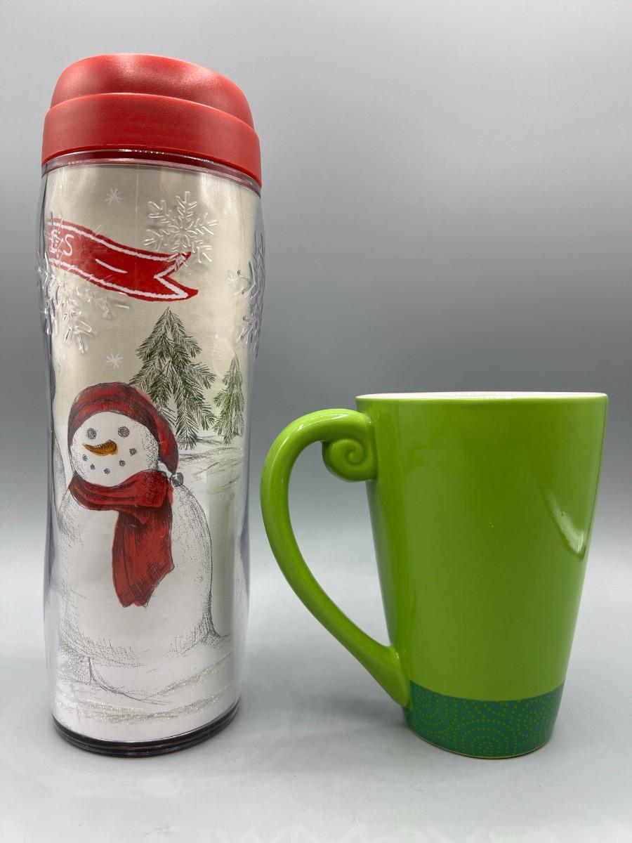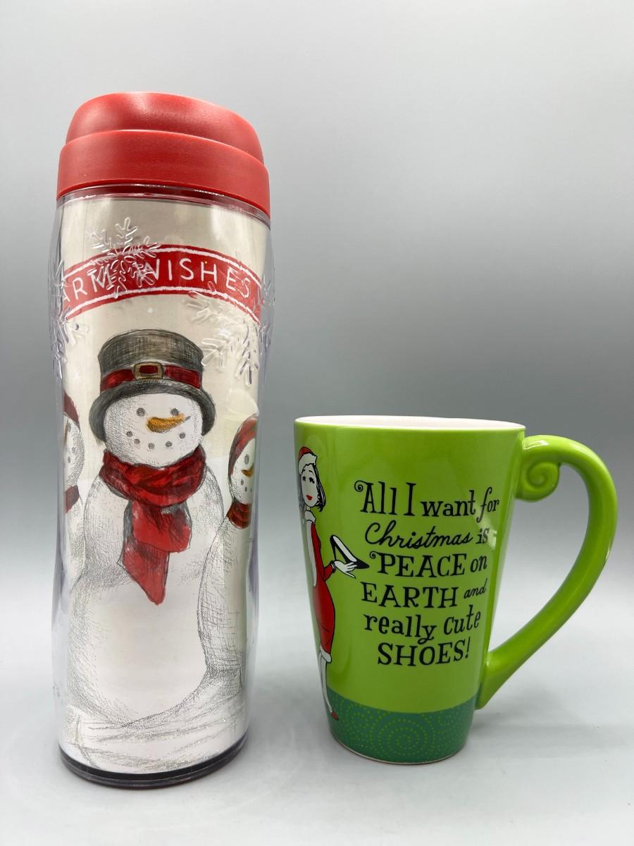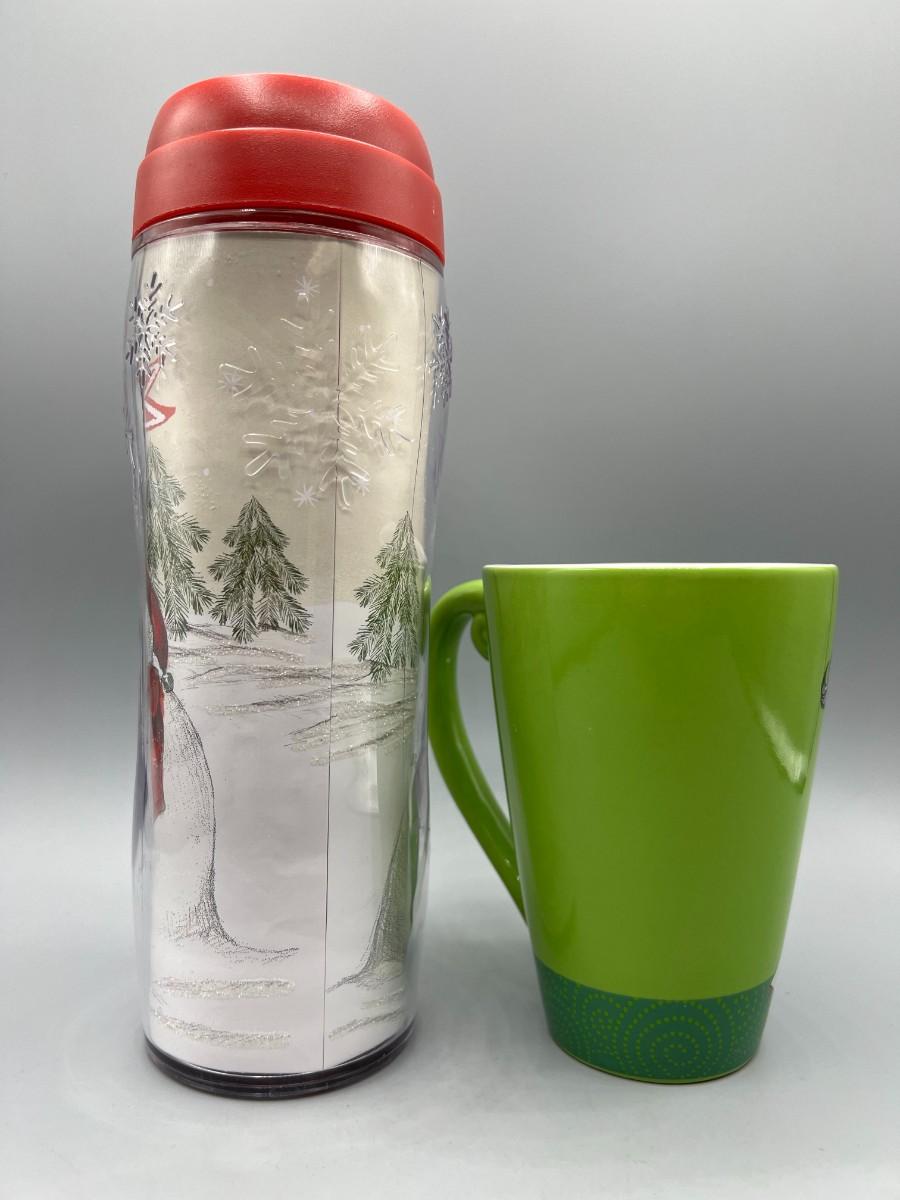 Pair of Christmas Holiday Seasonal Themed Coffee Cup Thermal & Ceramic Mug, there is no significant damage to any of the pieces in the lot and is in good useable condition. Check pictures for more details and for sizing.