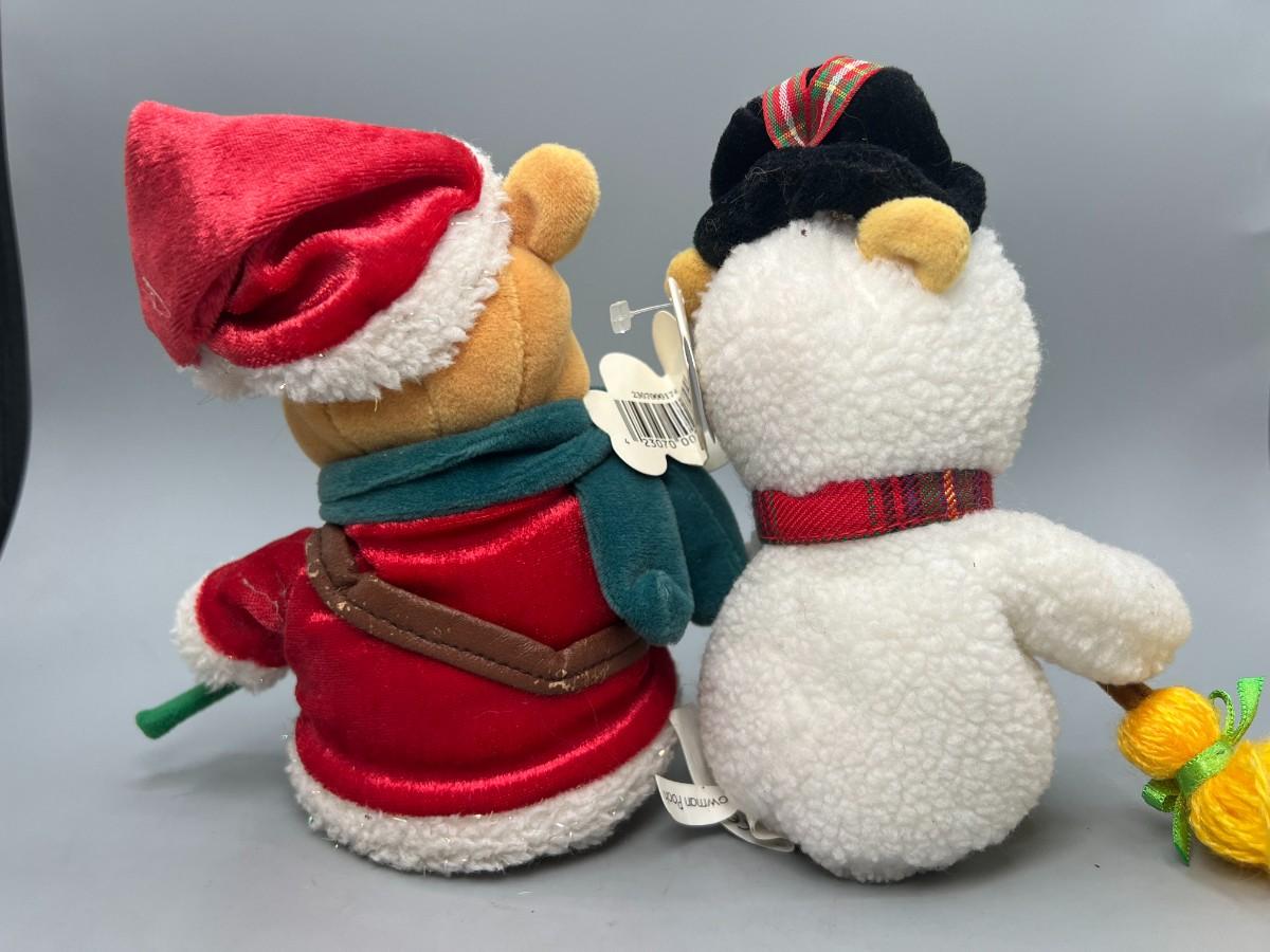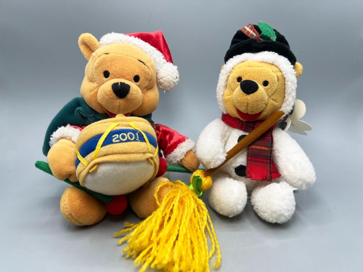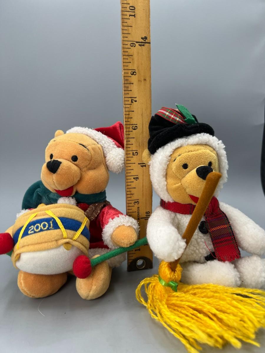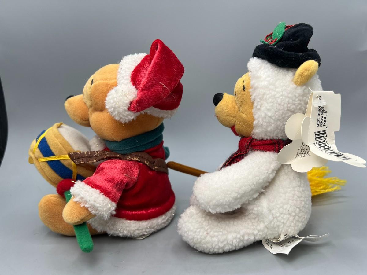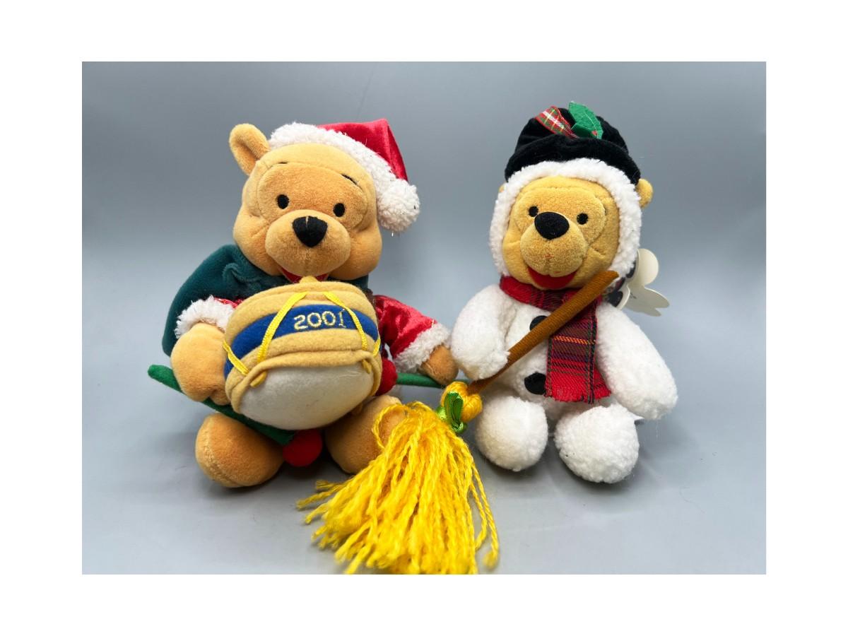 Pair of Christmas Little Drummer Boy & Dressed Up Snowman Winnie the Pooh Plushies