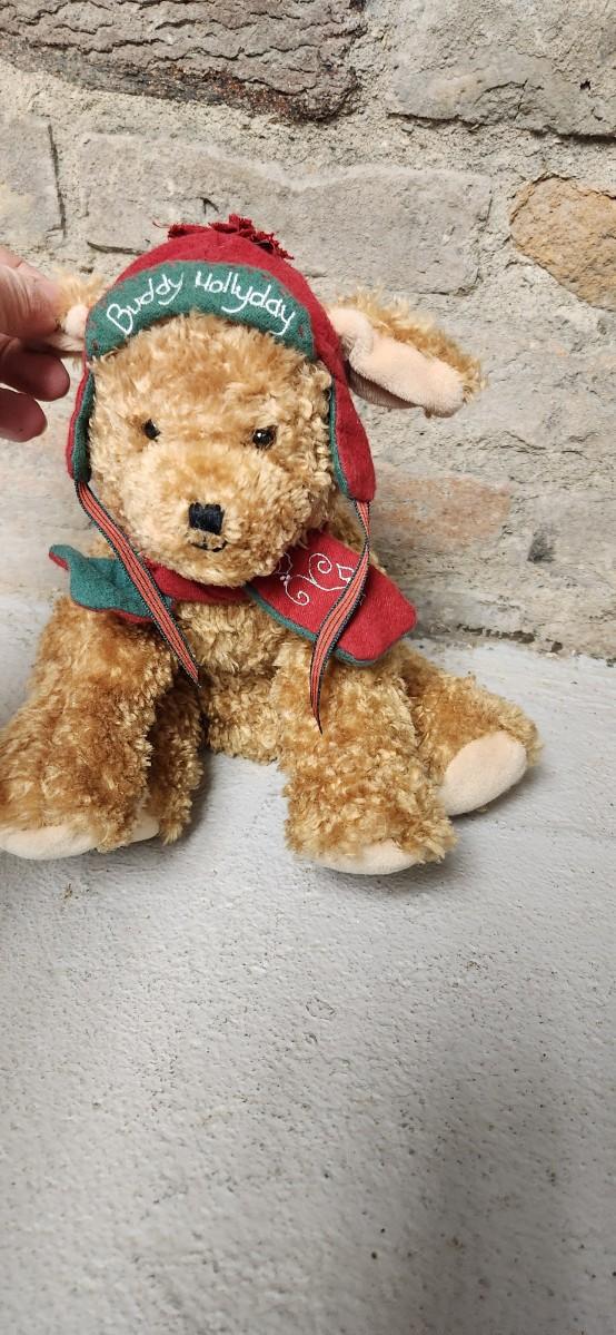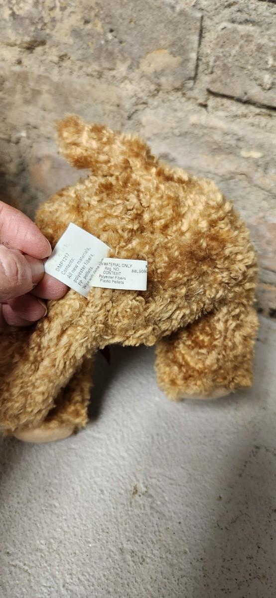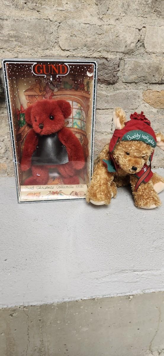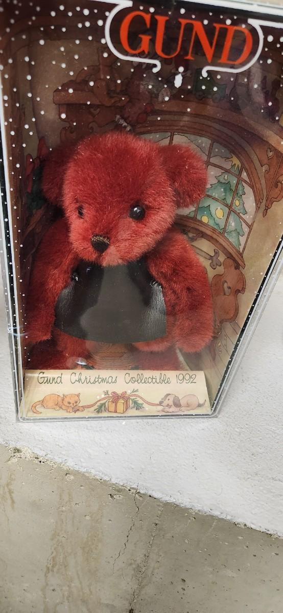 Gund bear in box and Hallmark pup