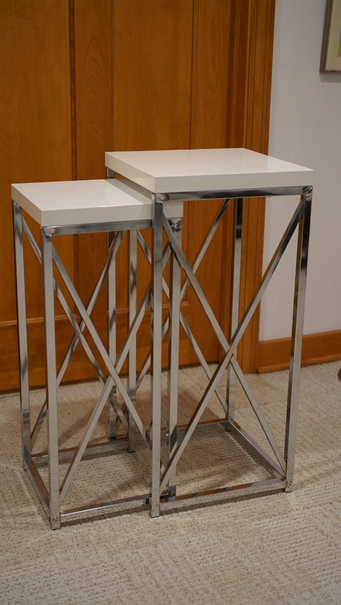 PAIR OF CHROME / PLEXIGLASS TOP NESTING TABLES