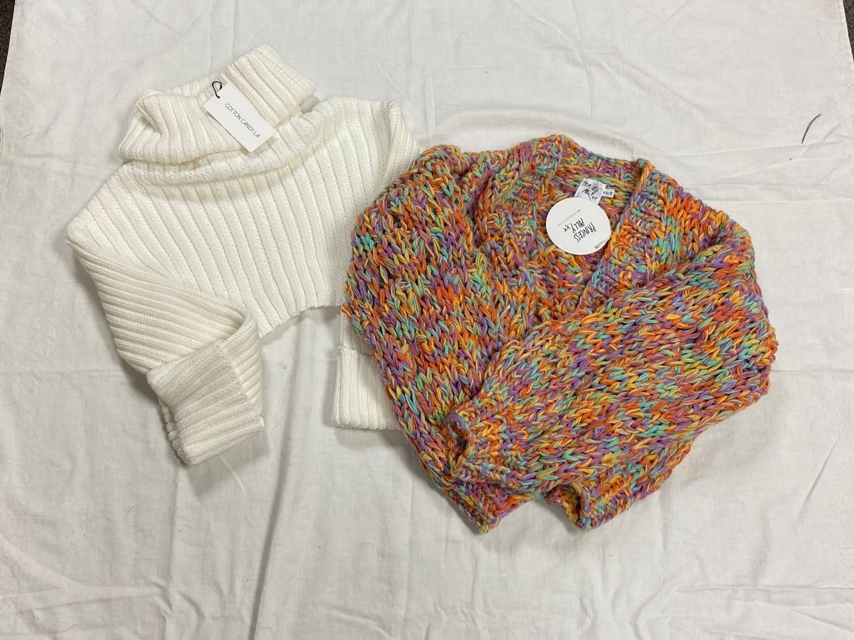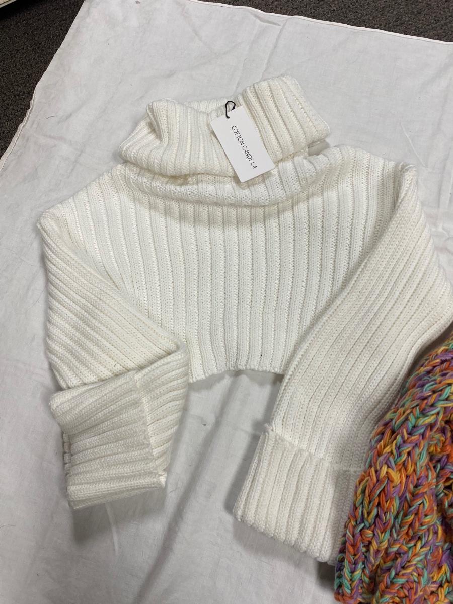 Pair of Chunky Juniors Sweaters with Tags Cotton Candy LA Princess Polly Size XS/S. The white sweater looks to be cropped. But in good condition.