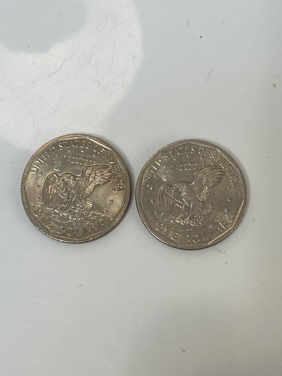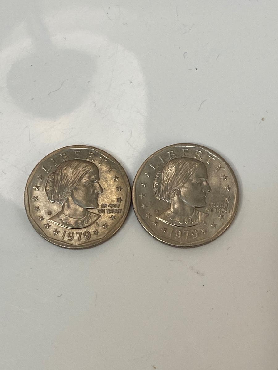 Pair of Circulated 1979 Susan B Anthony One Dollar $1 Coin. In good circulated condition.