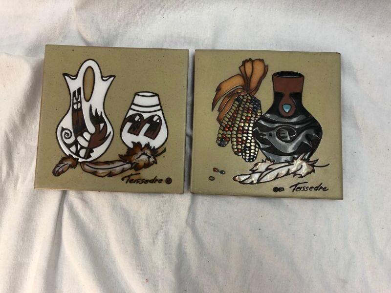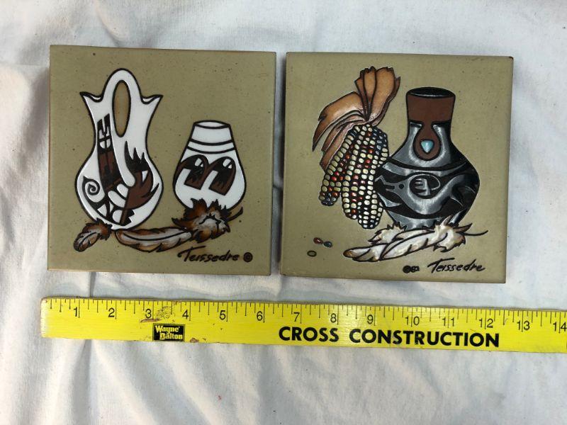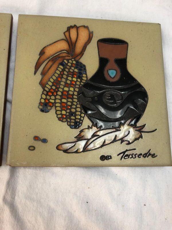Pair of Cleo Teissedre Southwestern Tile Art Trivet YD#020-1220-00490