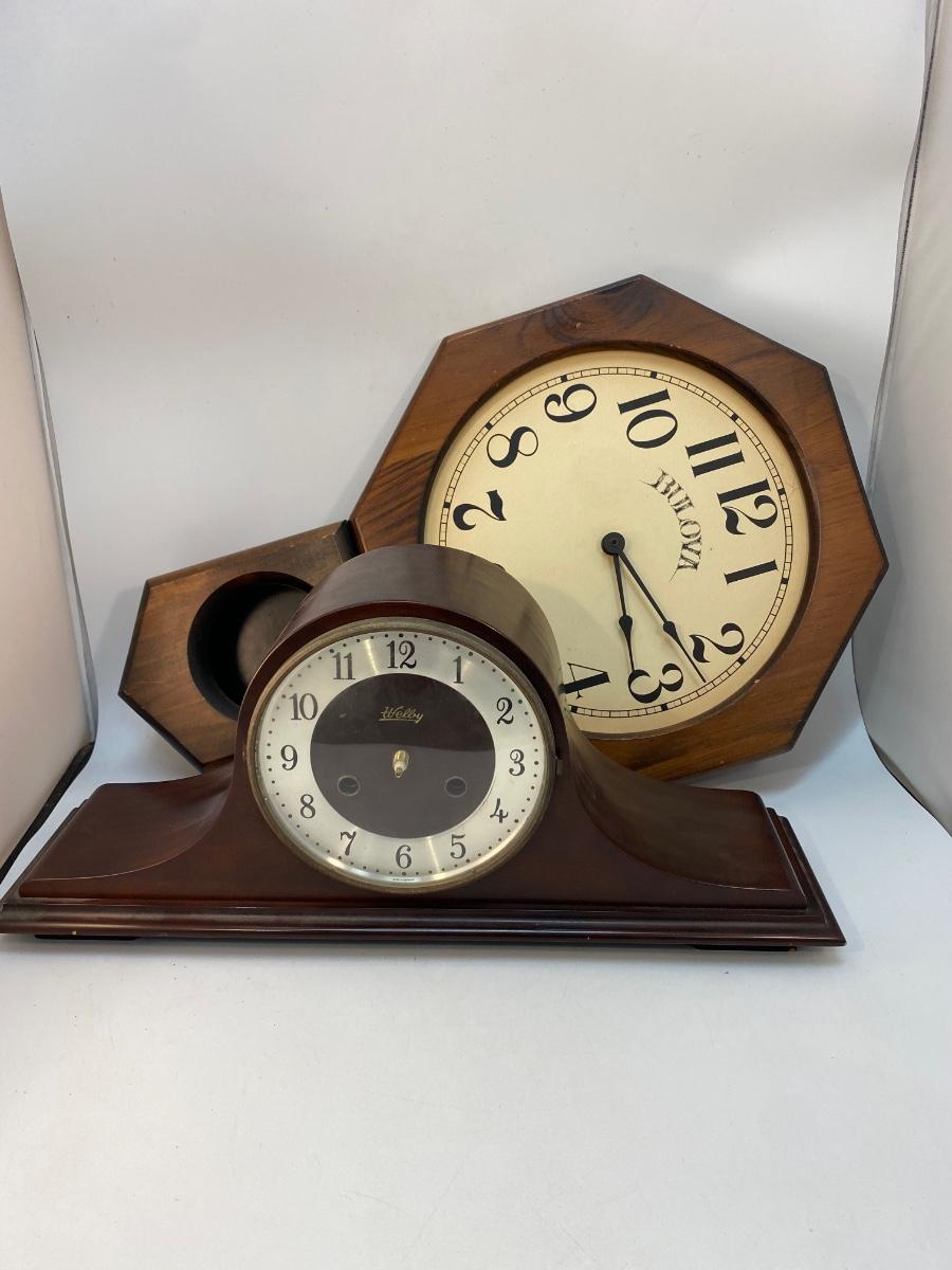 Pair of Clocks for Repair or Parts. Battery operated. The mantle clock has parts in a bag inside.
