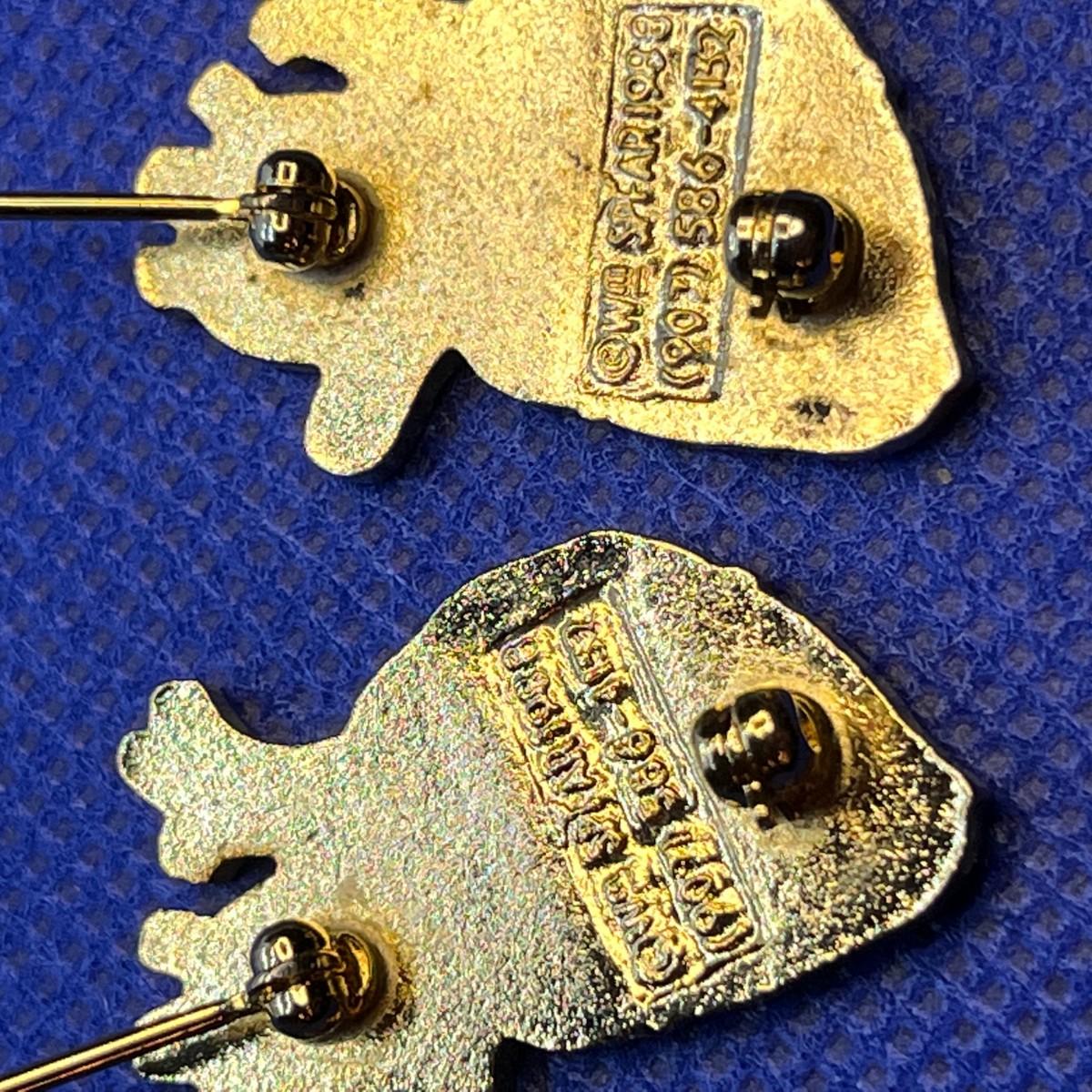 PAIR OF CLOISONNE PINS HEART AORTA DESIGN