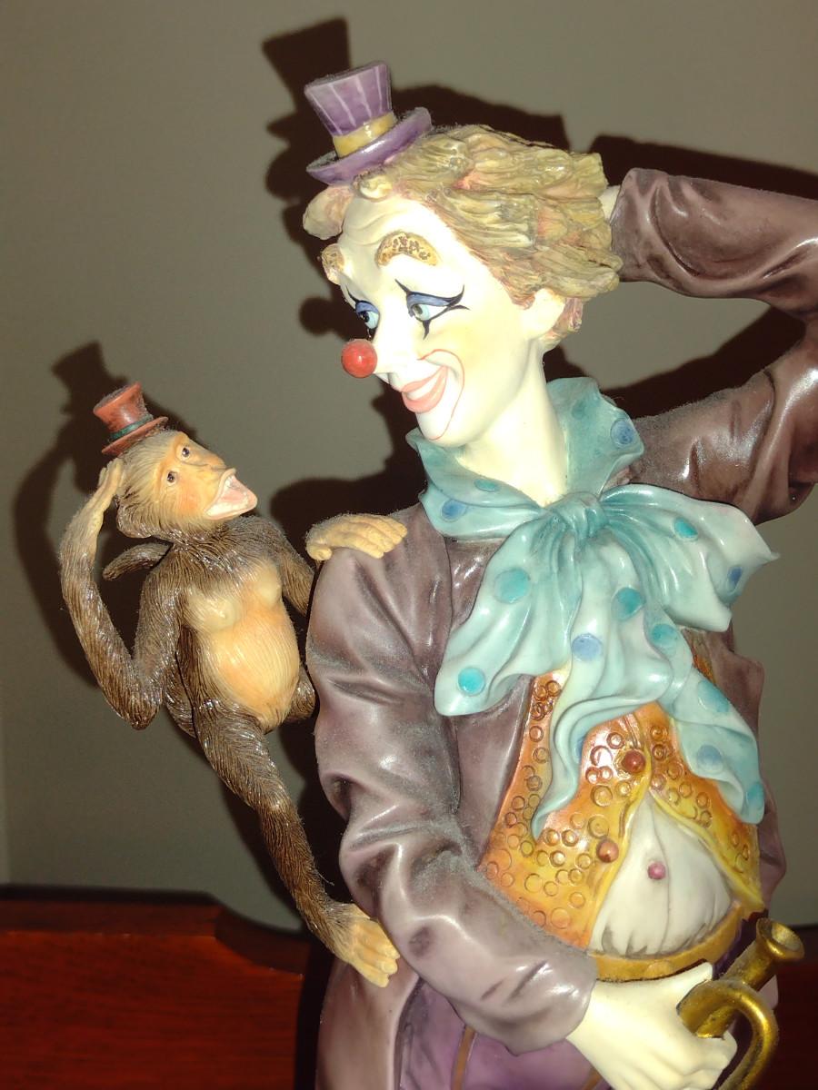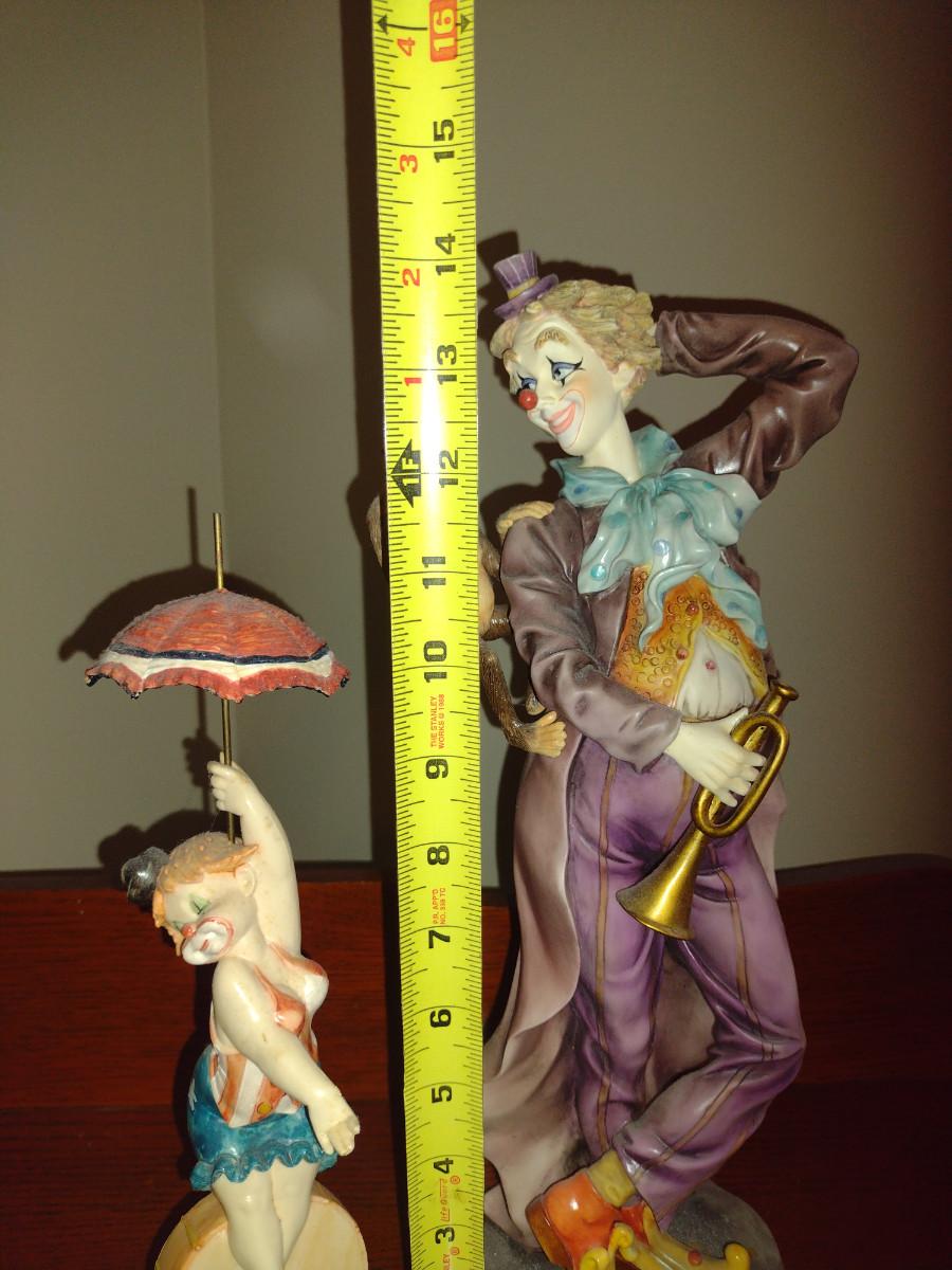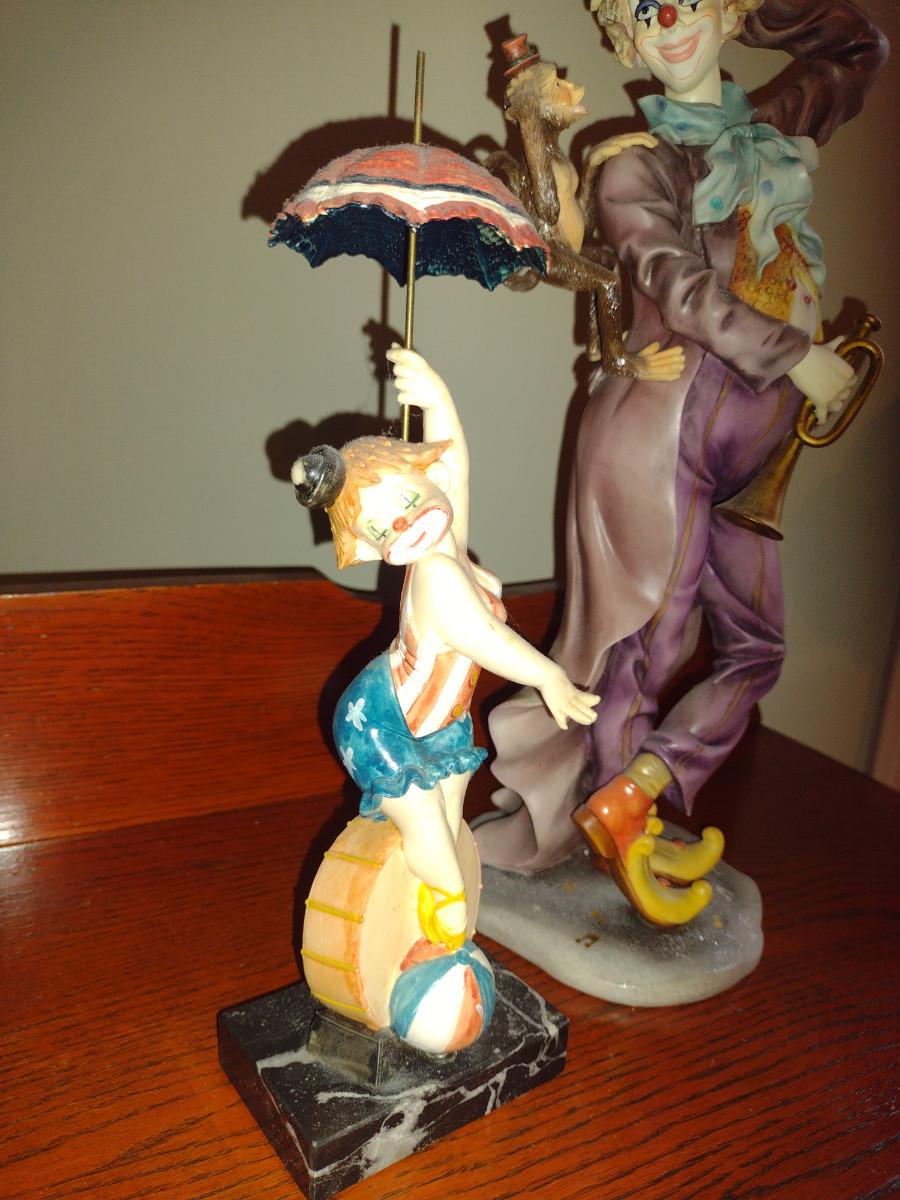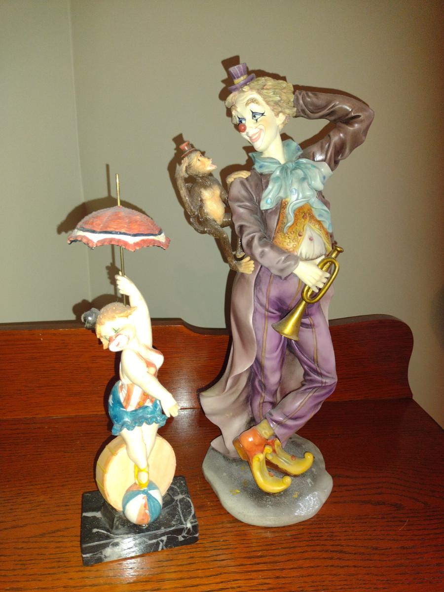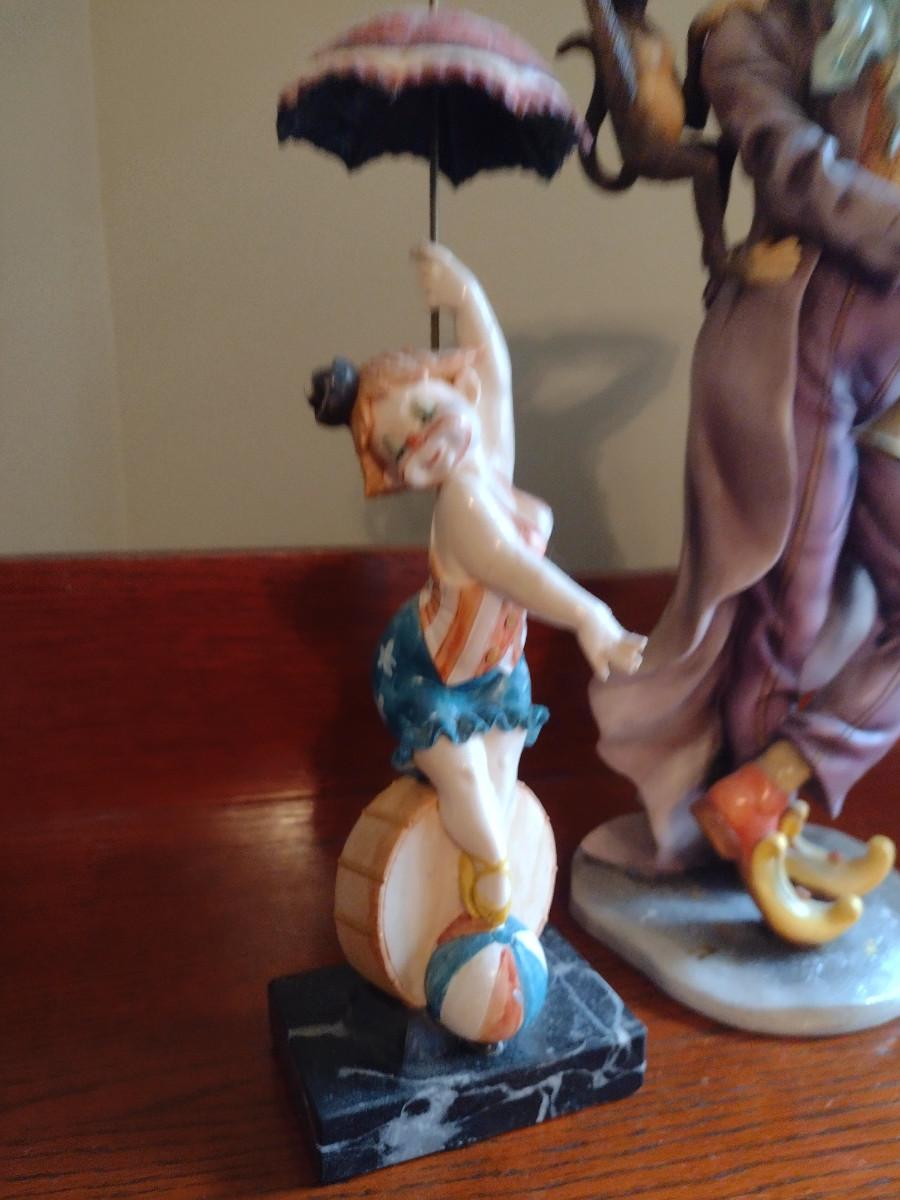 Pair of Clown Figurines- Assorted Makers. One Italian on marble base.