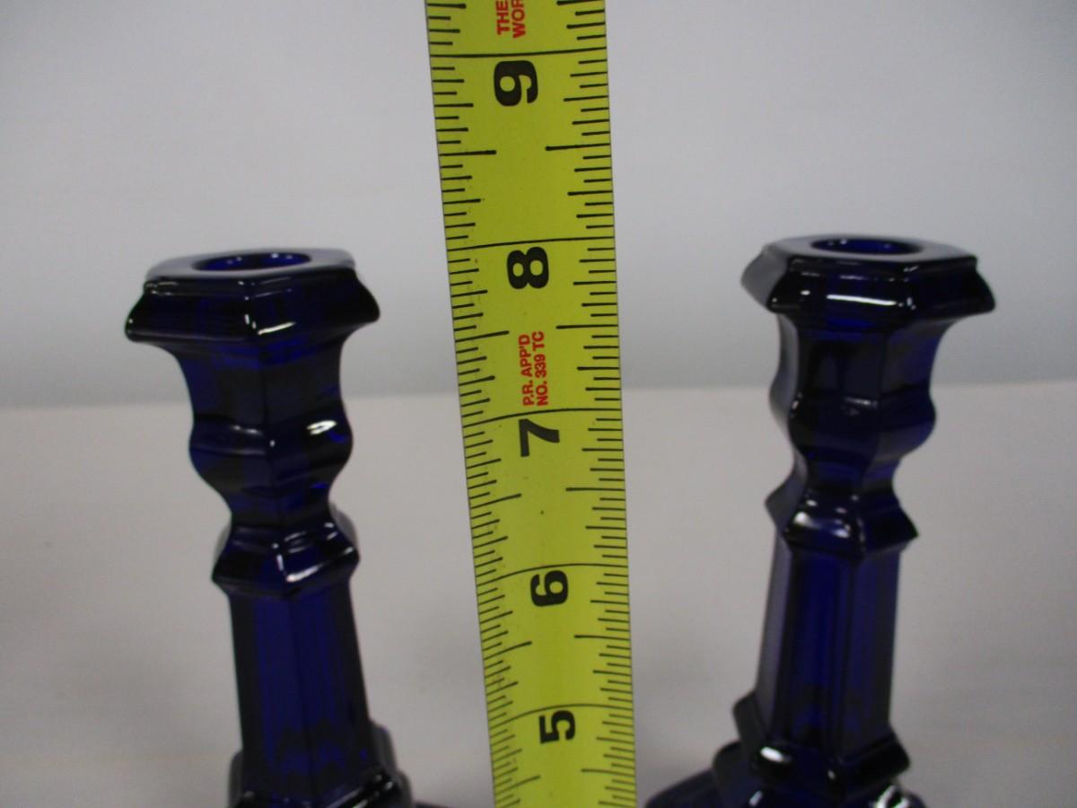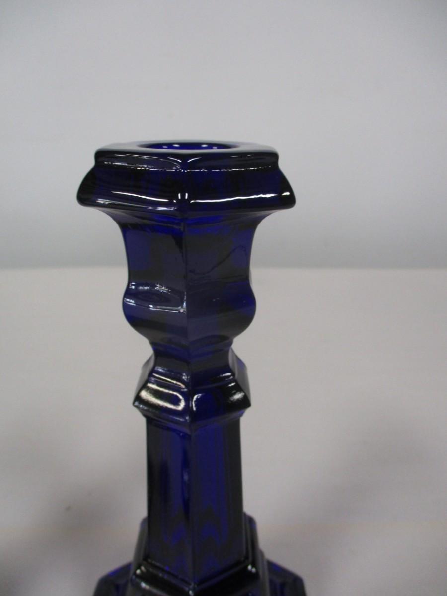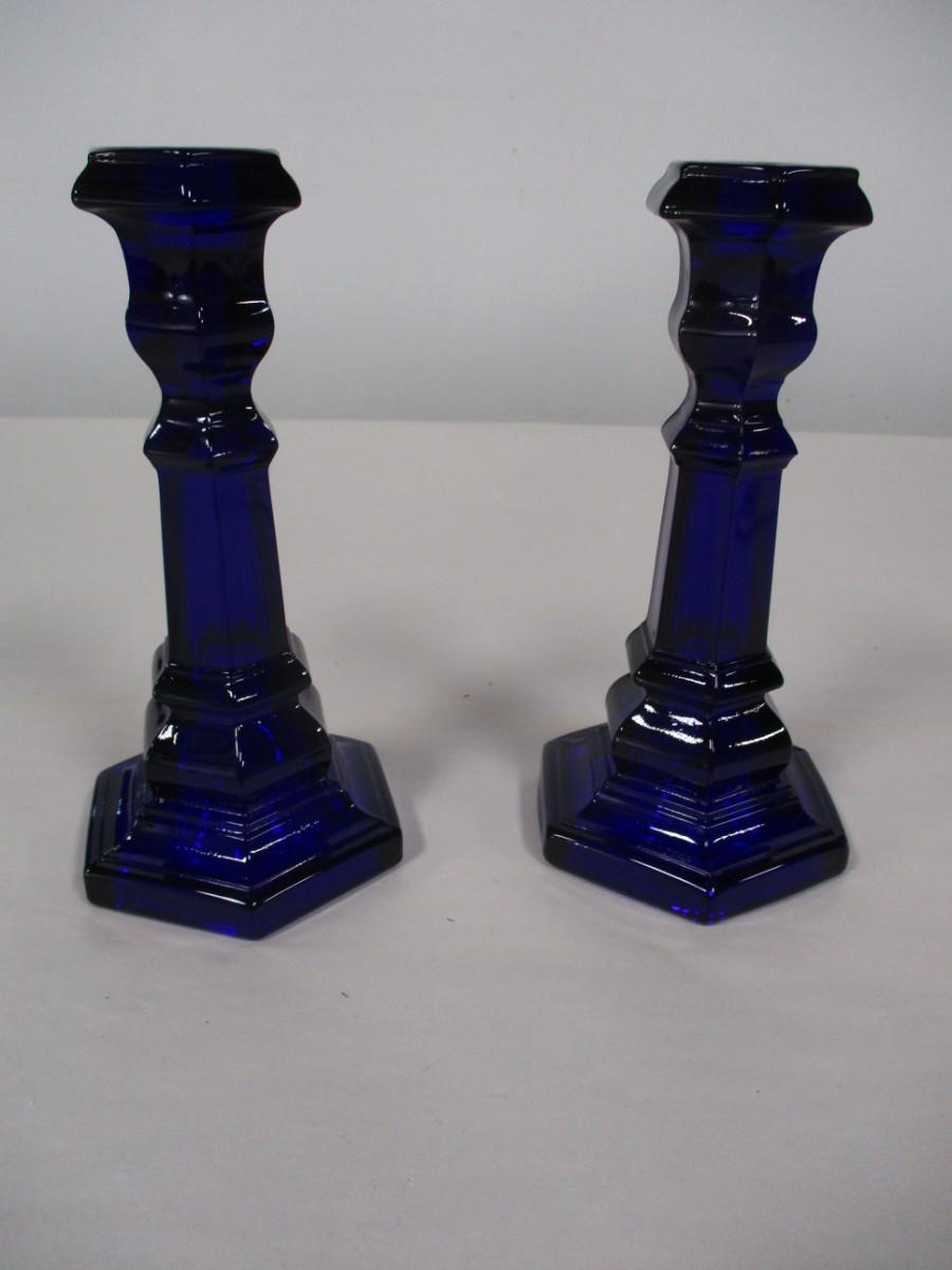 Pair Of Cobalt Blue Glass Candle Holders