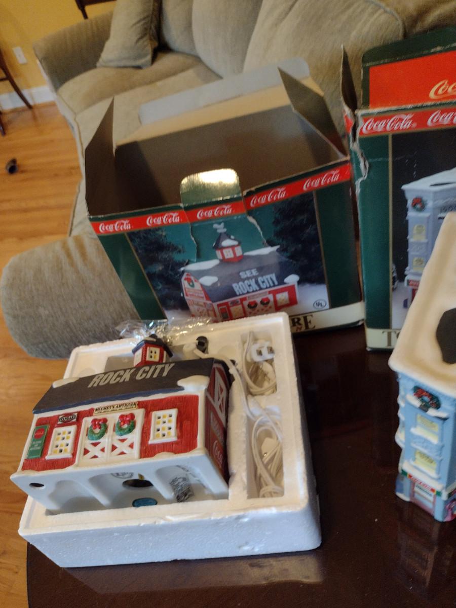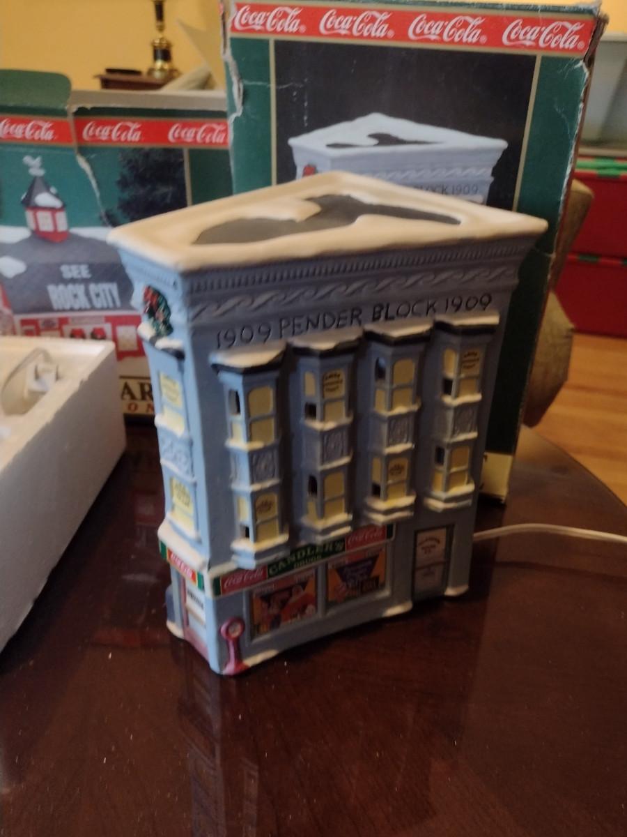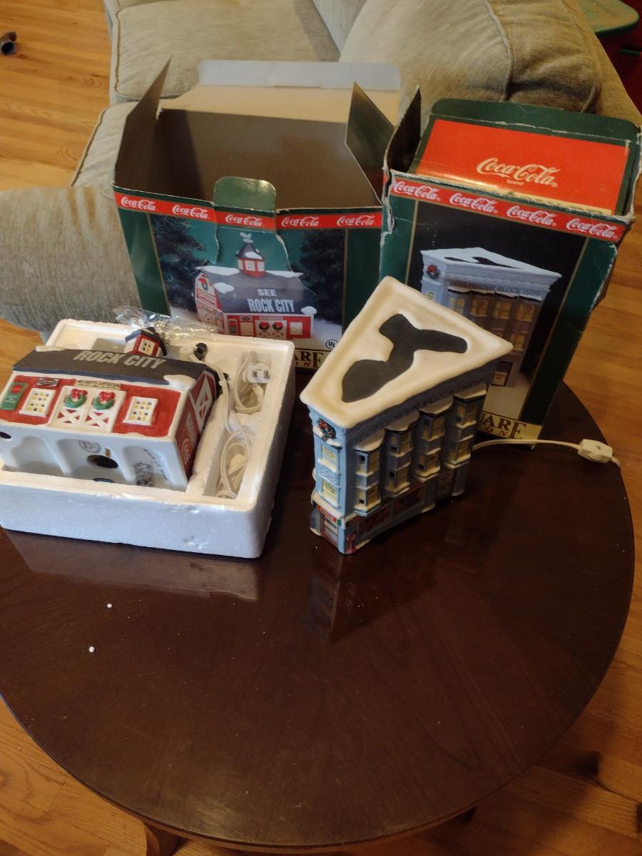 Pair of Coca-Cola Christmas Village Houses. 1909 Pender Block and See Rock City Barn