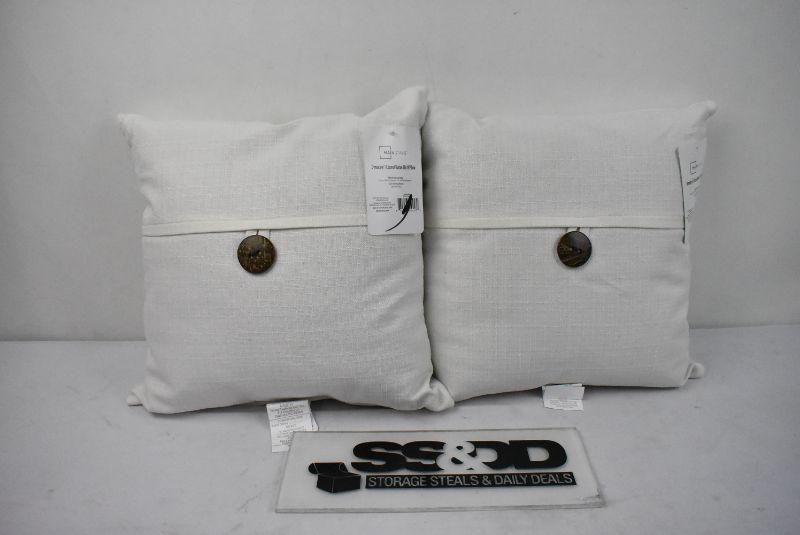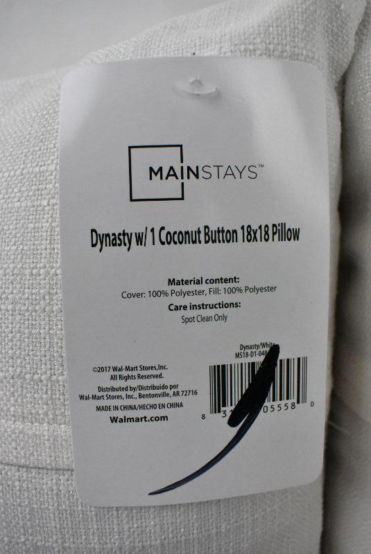 Pair of Mainstays Dynasty Coconut Button Accent Decorative Throw Pillows, 18" x 18", White - New, Slight Warehouse Dirt