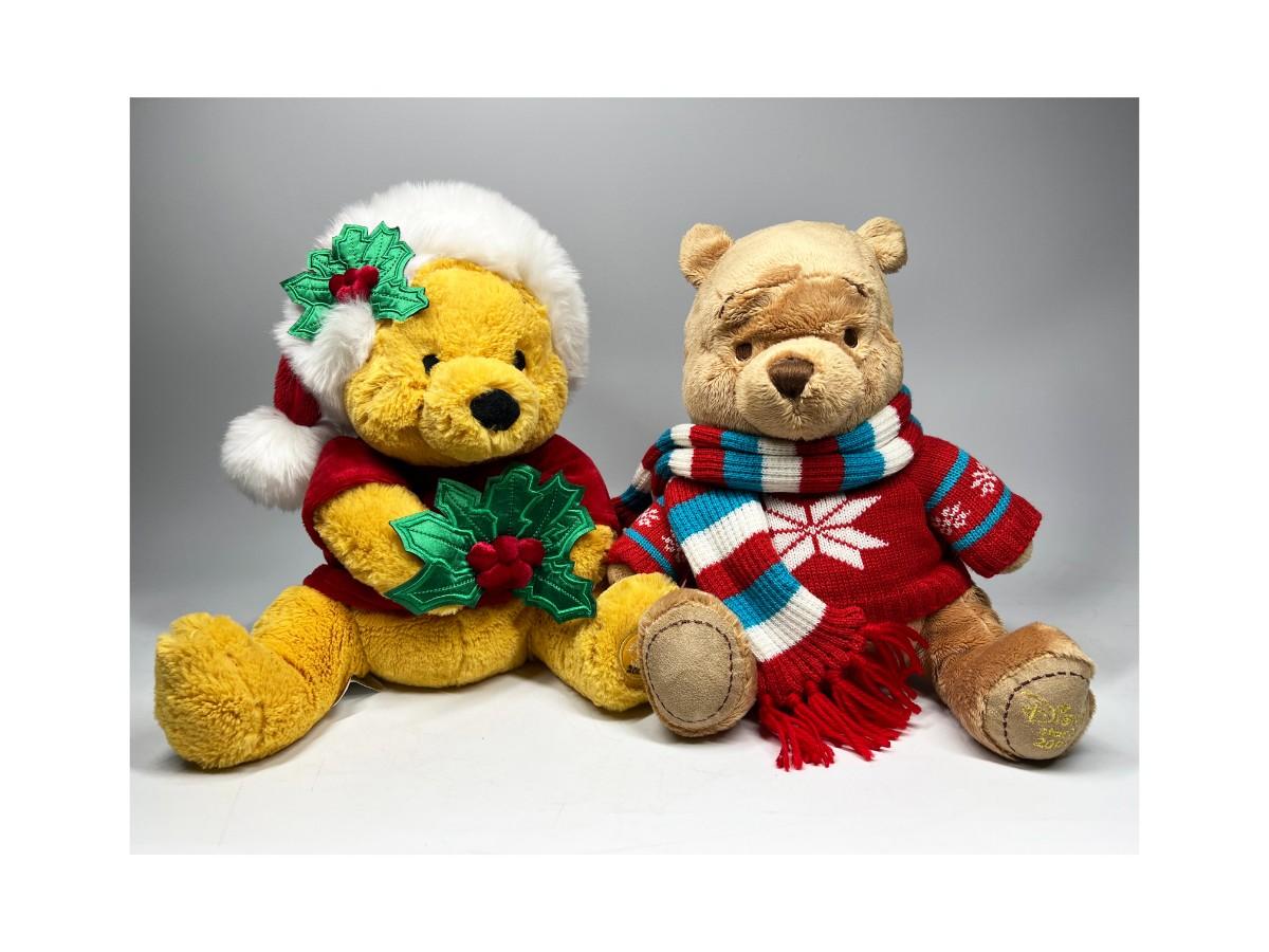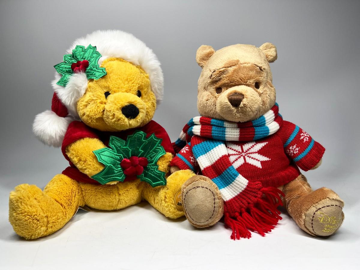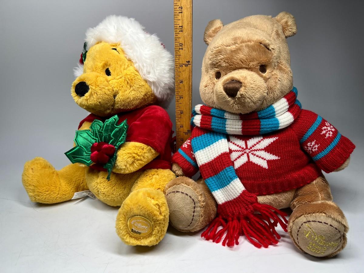 Pair of Collectible Disney Store Exclusives Winnie the Pooh Holiday Christmas Plushies