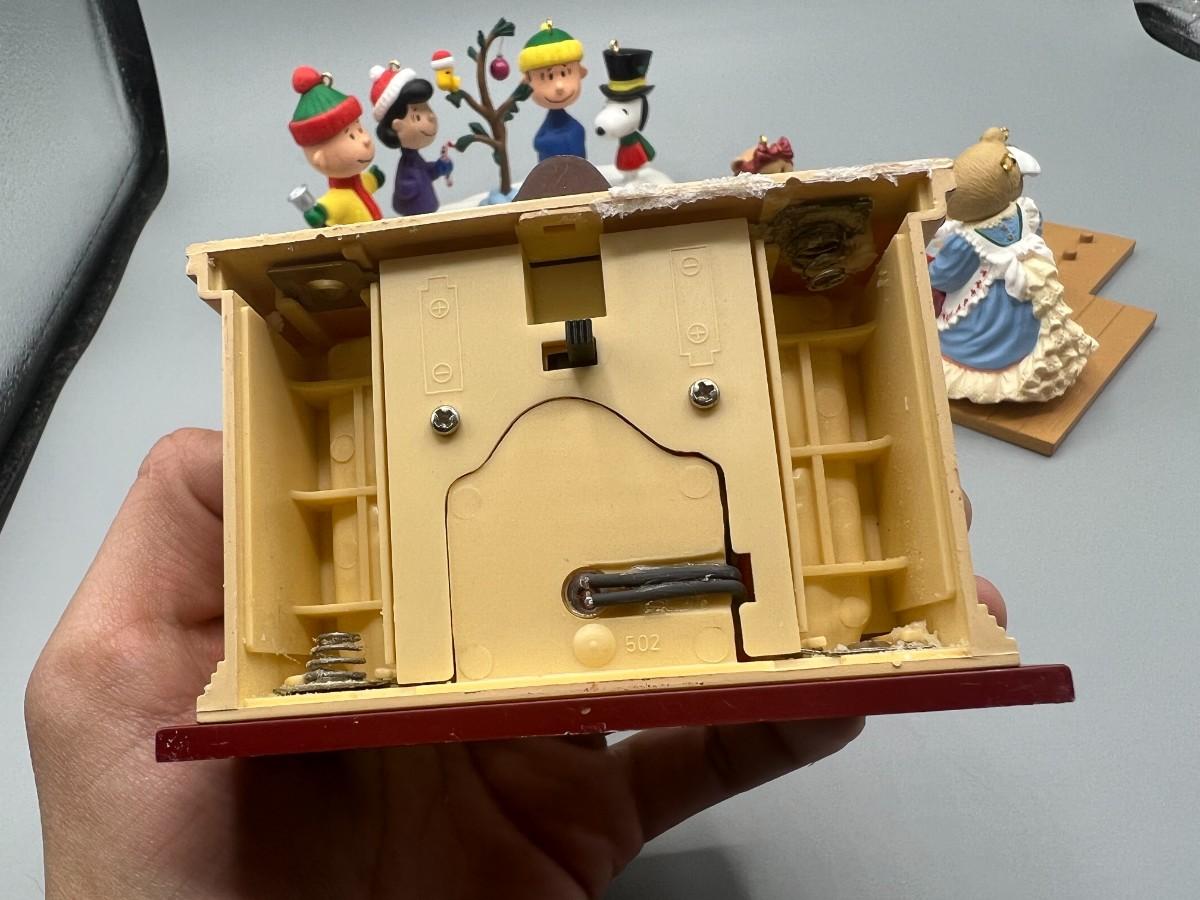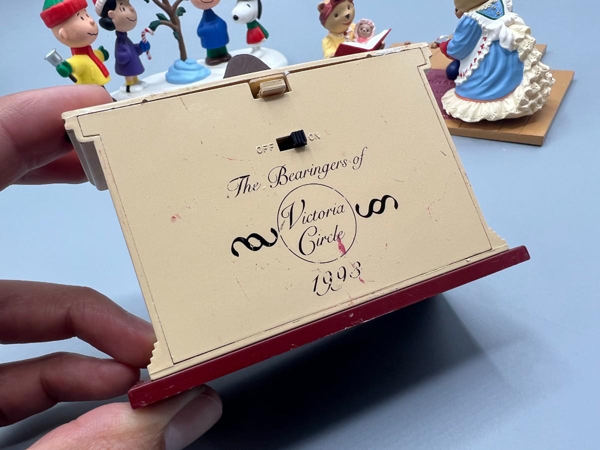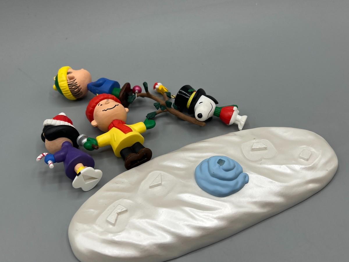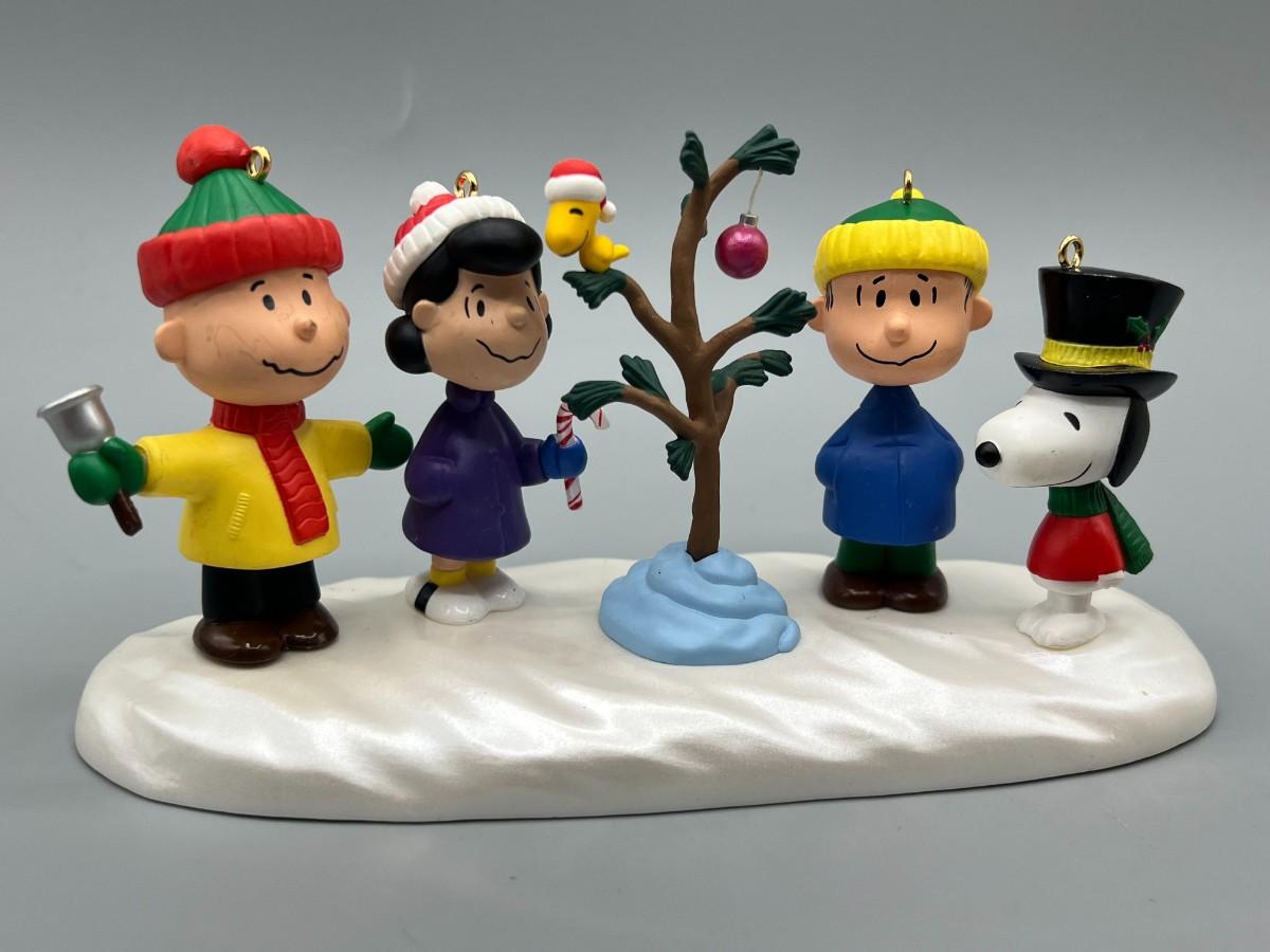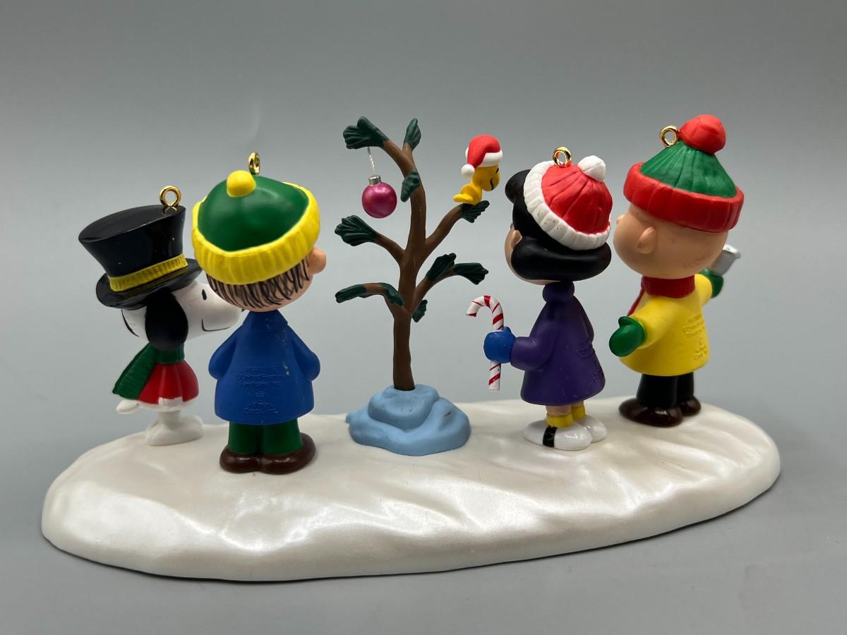Pair of Collectible Hallmark Ornament Display Sets Peanuts 30th Anniversary Television Special & The Bearingers of Victoria Circle, there is some light wear, but there is no significant damage and is in good collectible condition. Check pictures for more details and for sizing.